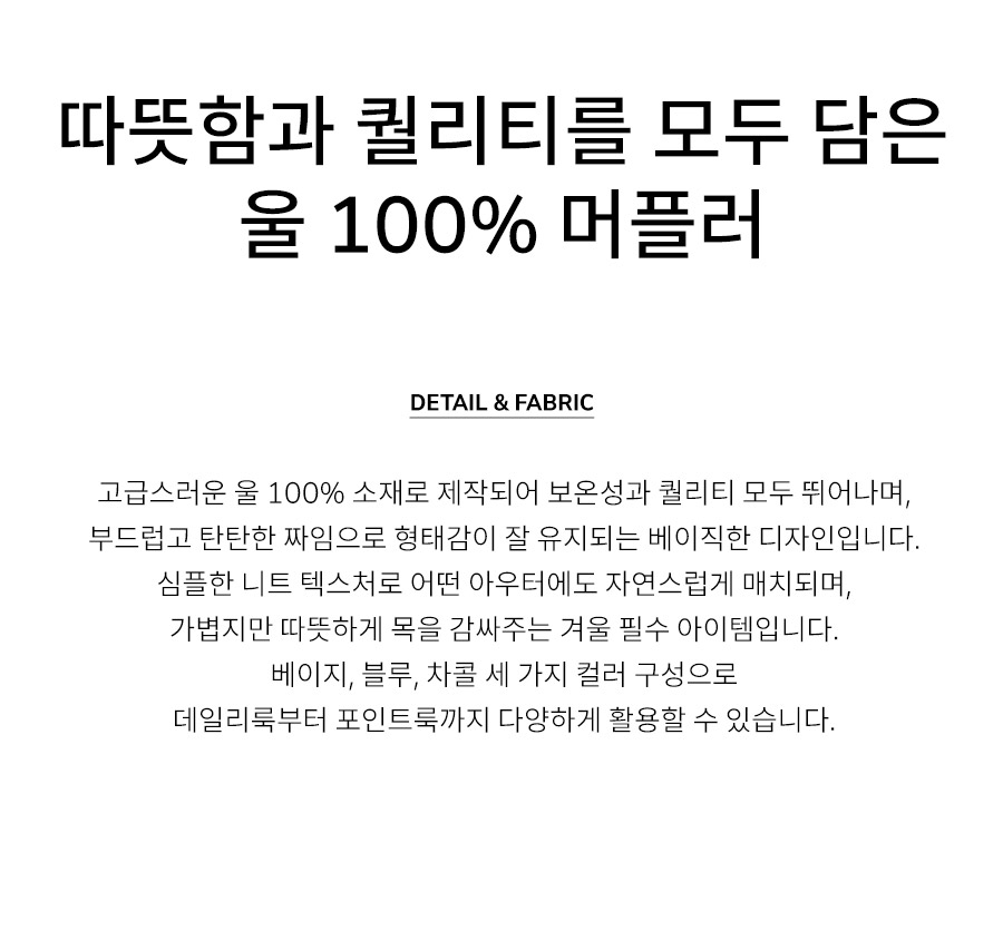"따뜻함과 퀄리티를 모두 담은 울 100% 머플러"