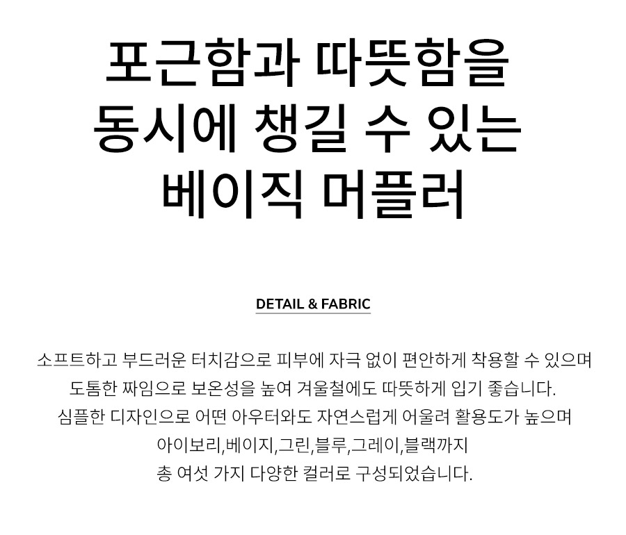 "포근함과 따뜻함을 동시에 챙길 수 있는 베이직 머플러"