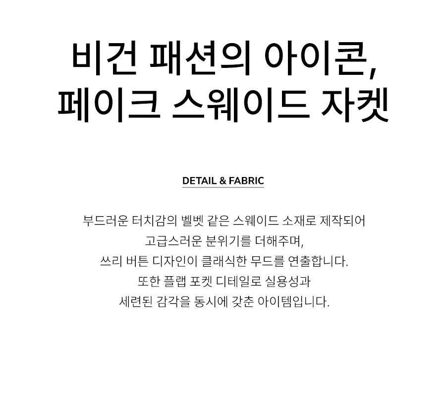 - 비건 패션의 아이콘, 페이크 스웨이드 자켓