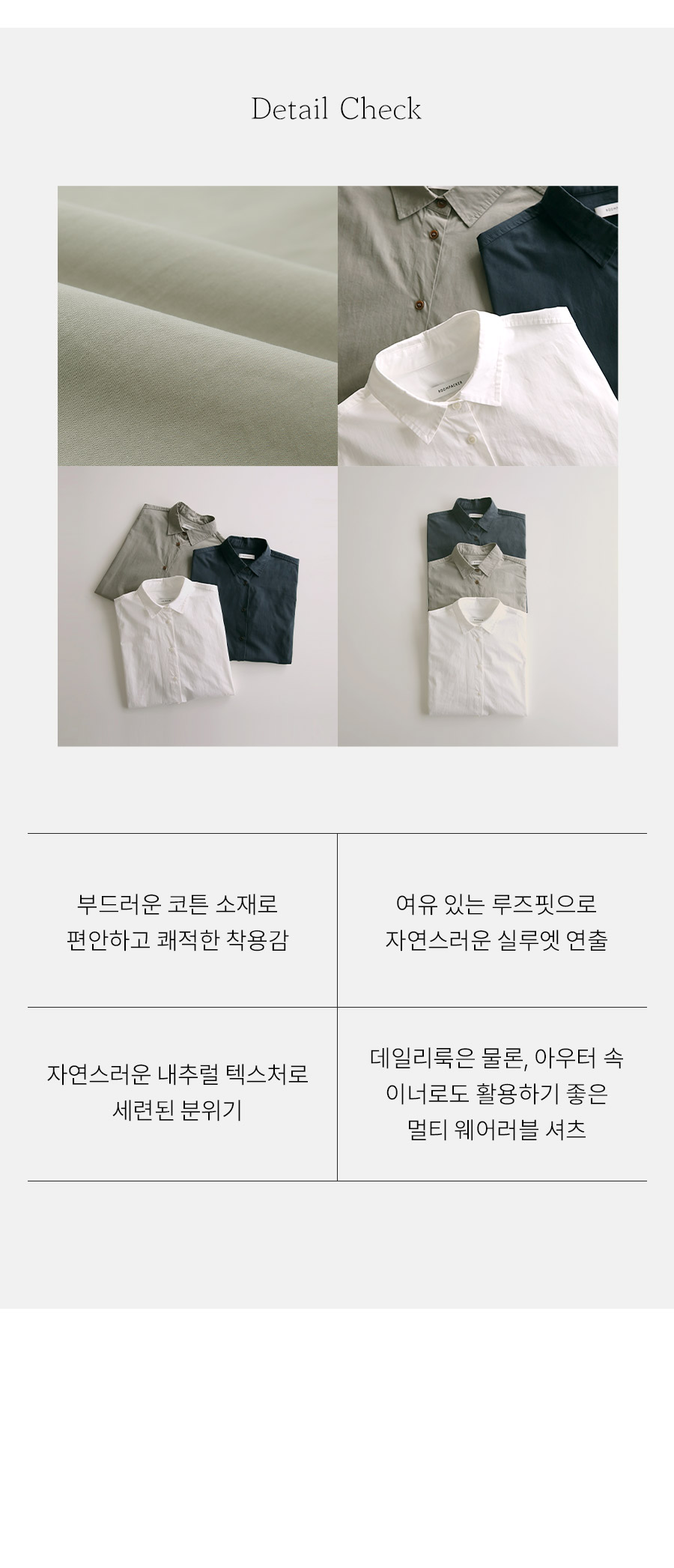 - 데일리룩은 물론, 아우터 속 이너로도 활용하기 좋은 멀티 웨어러블 셔츠