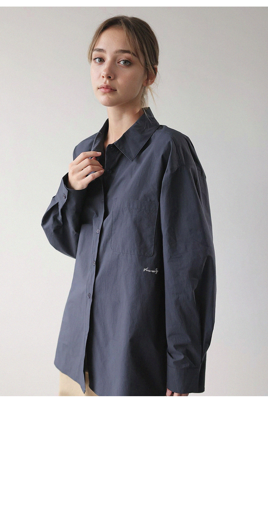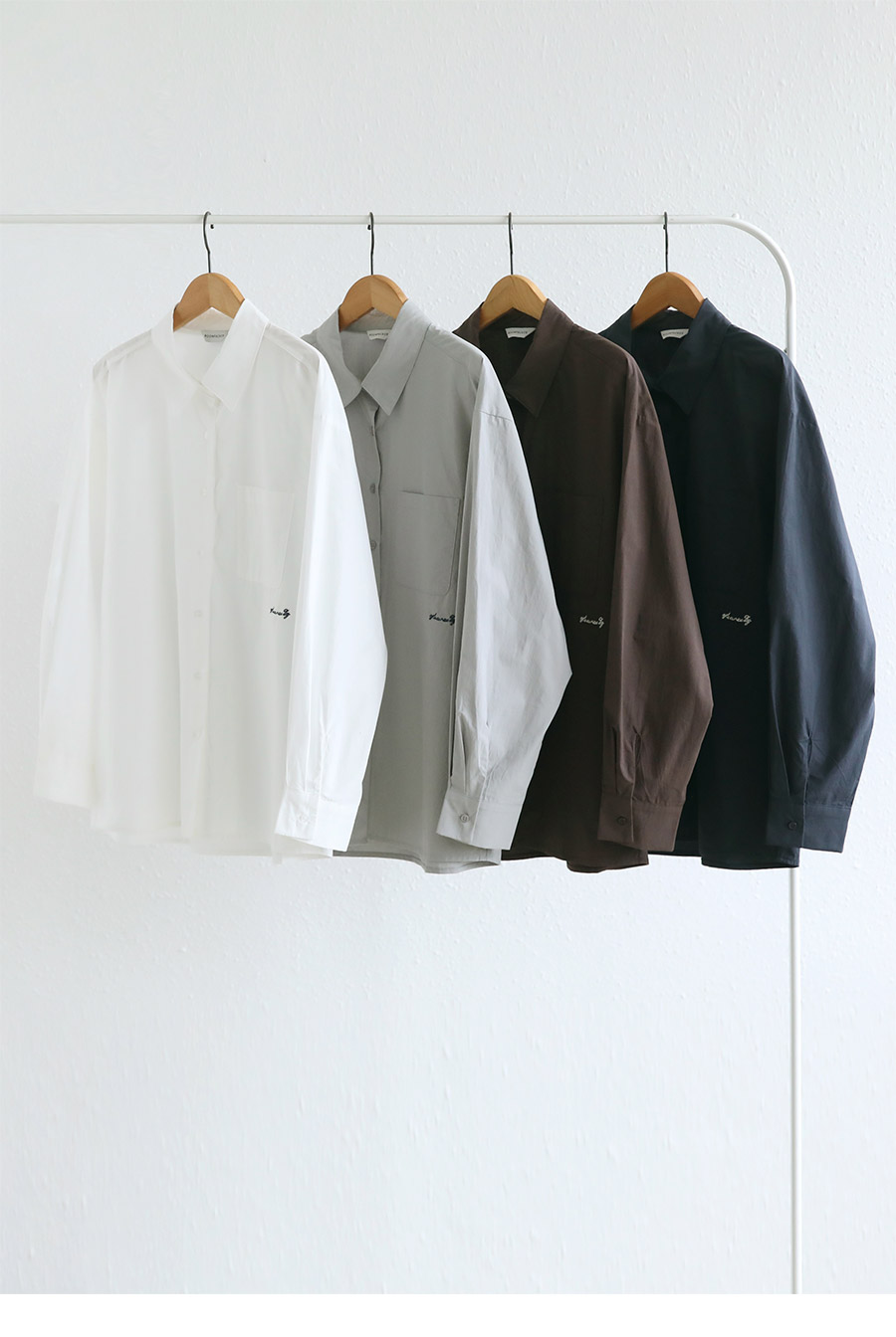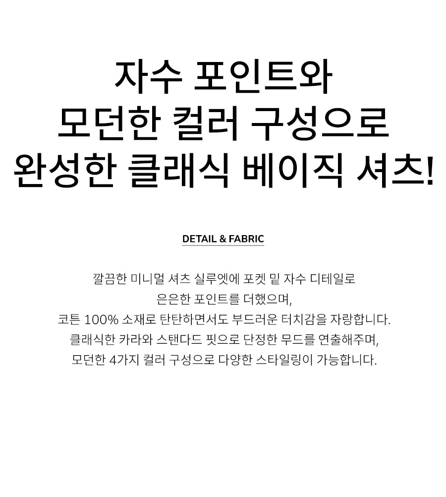 "자수 포인트와 모던한 컬러 구성으로 완성한 클래식 베이직 셔츠!"