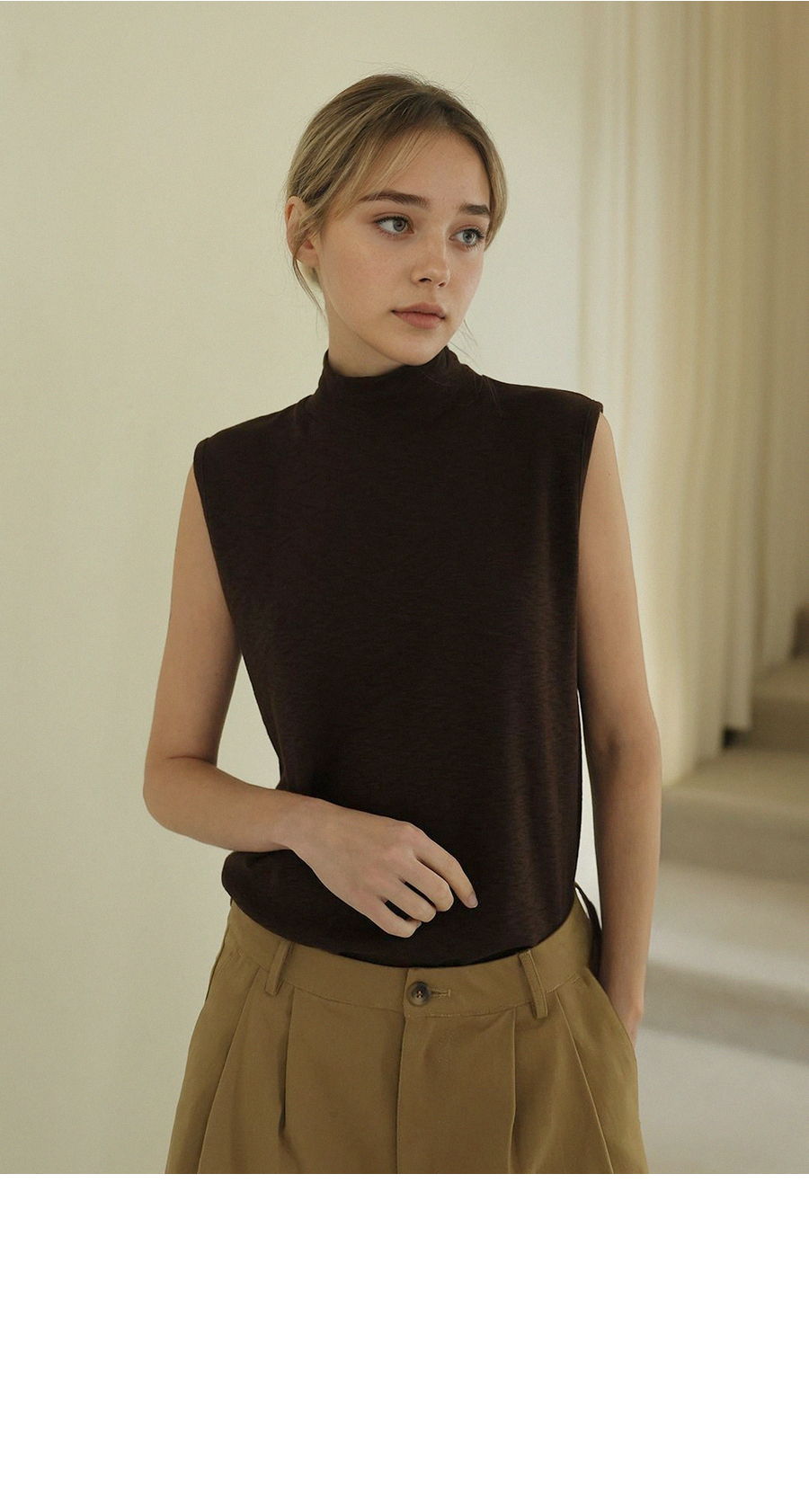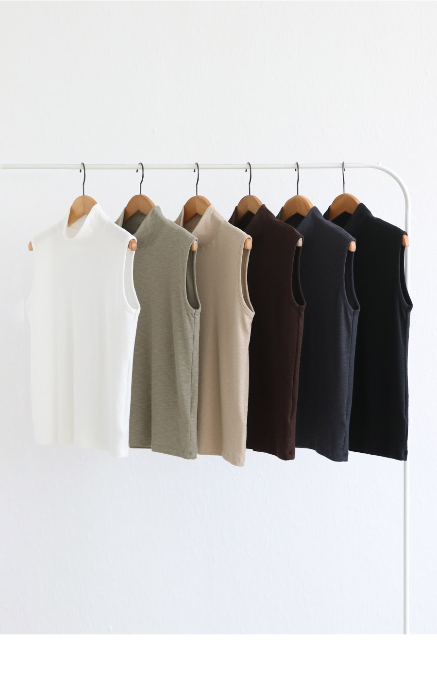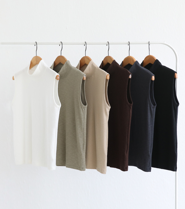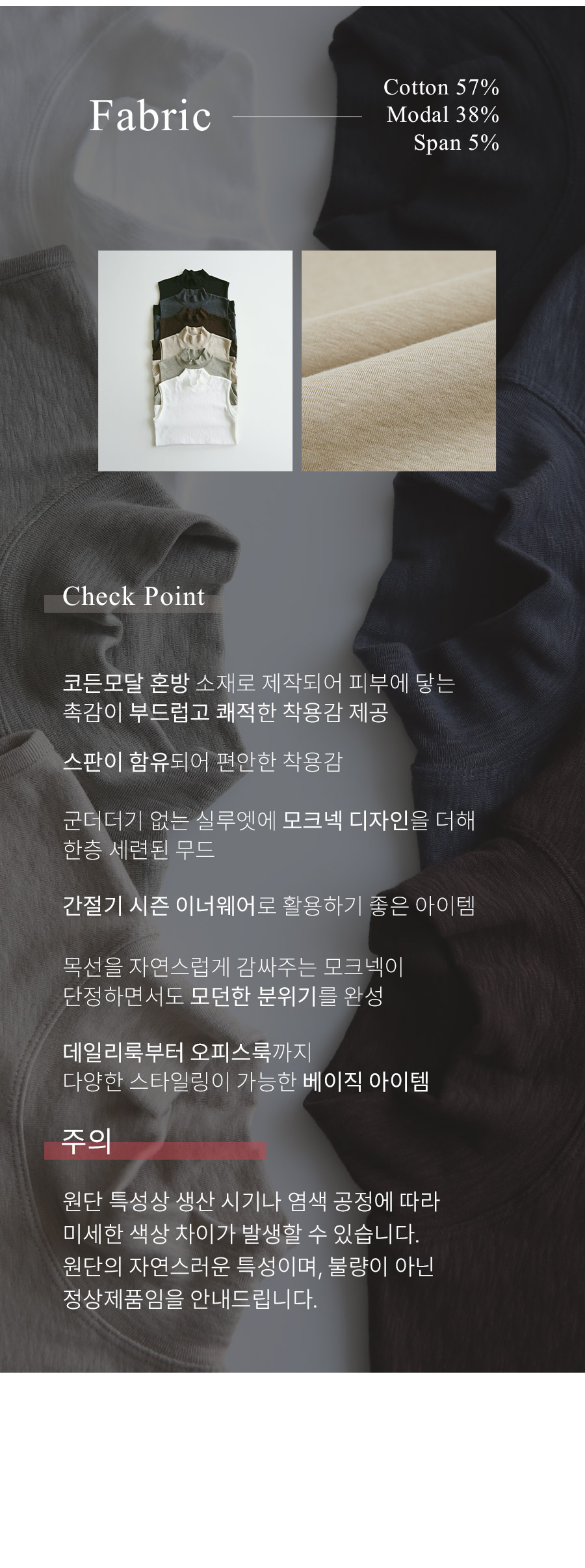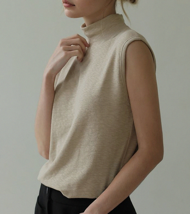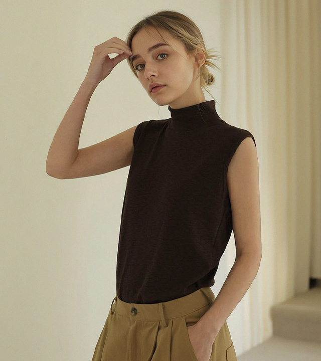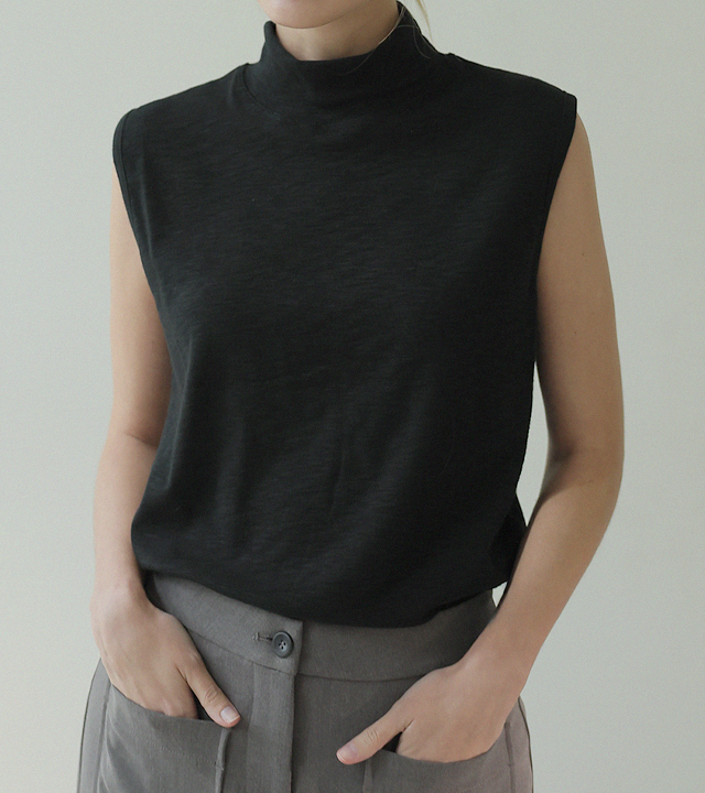 "신축성과 부드러움을 겸비한 모달 모크넥 민소매 탑"