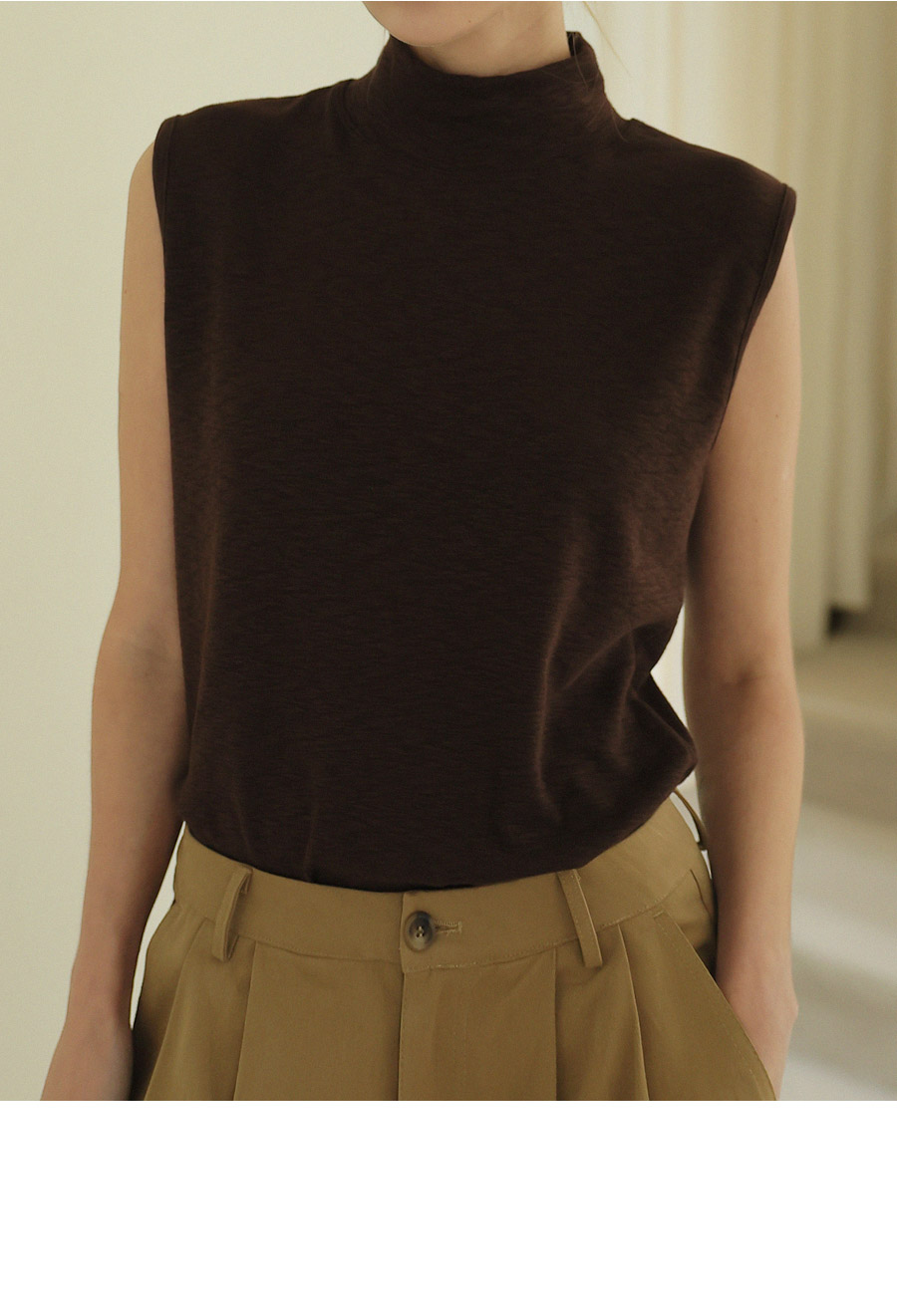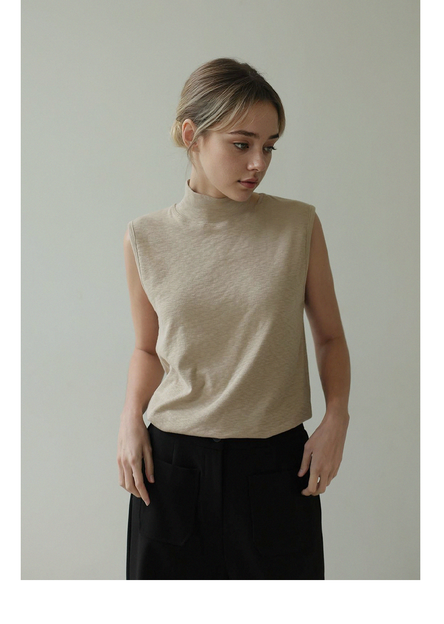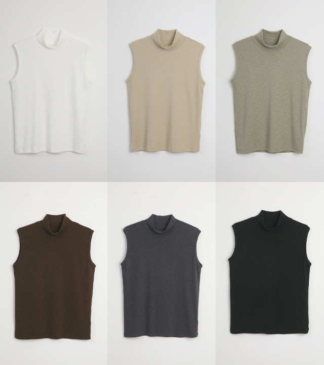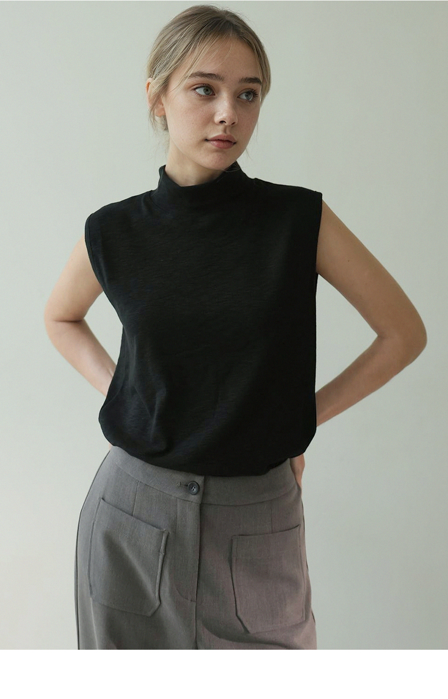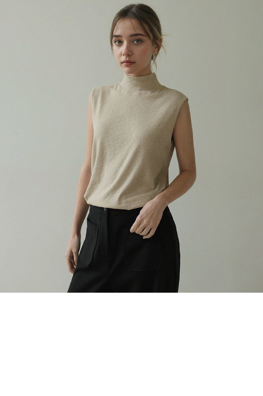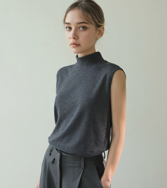 "신축성과 부드러움을 겸비한 모달 모크넥 민소매 탑"