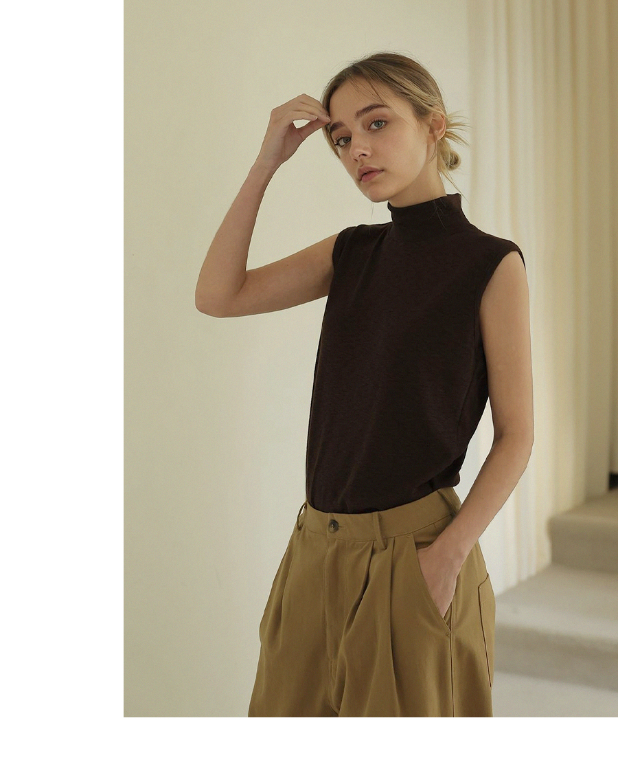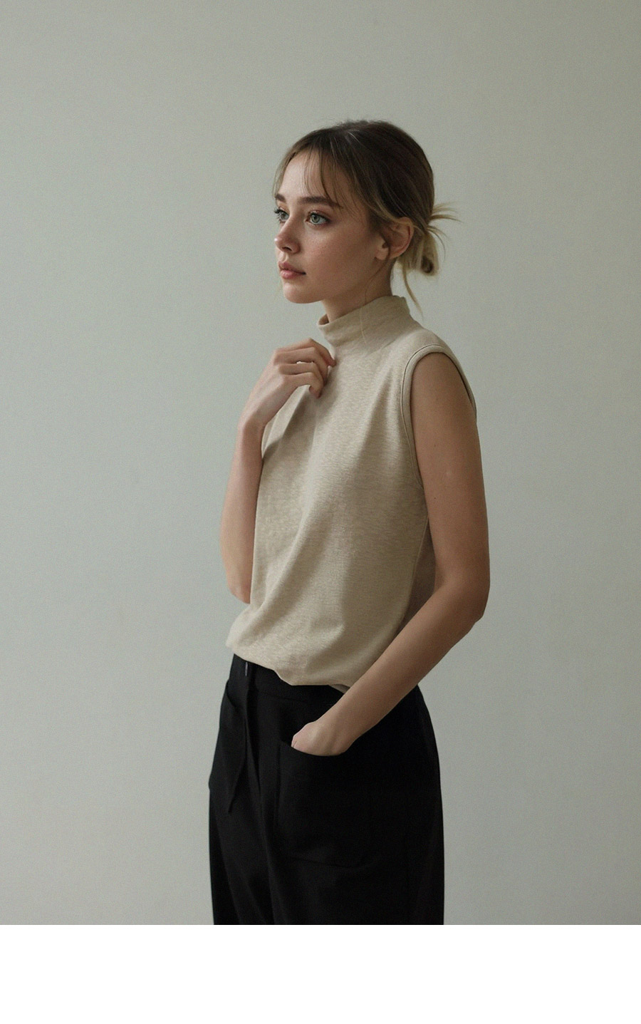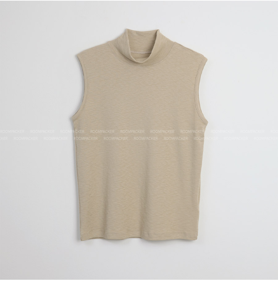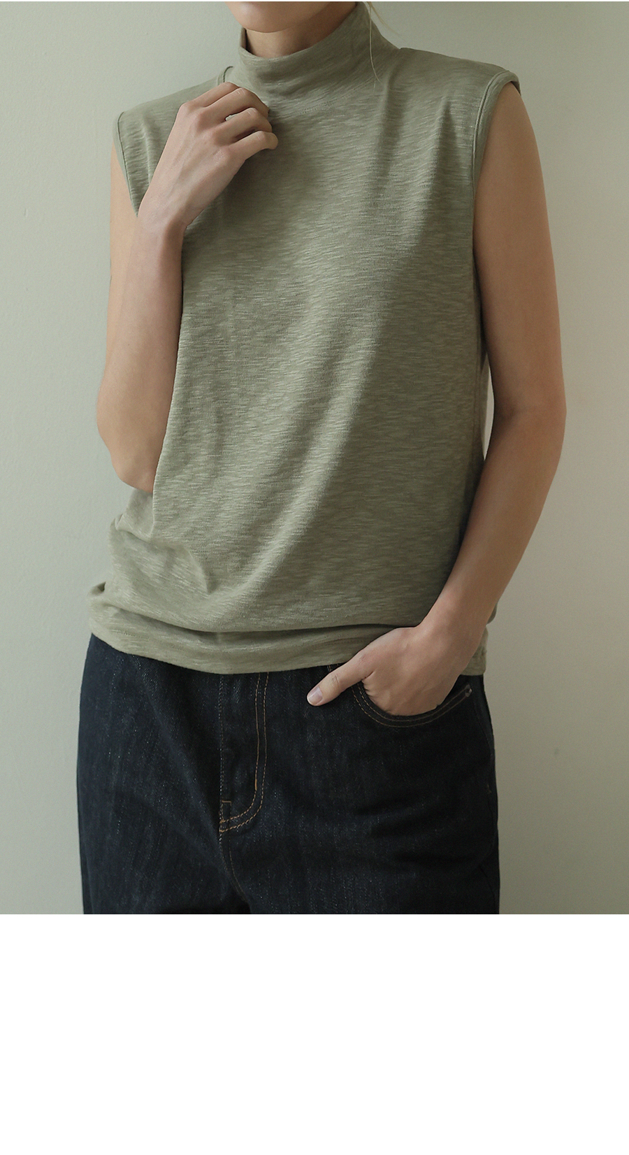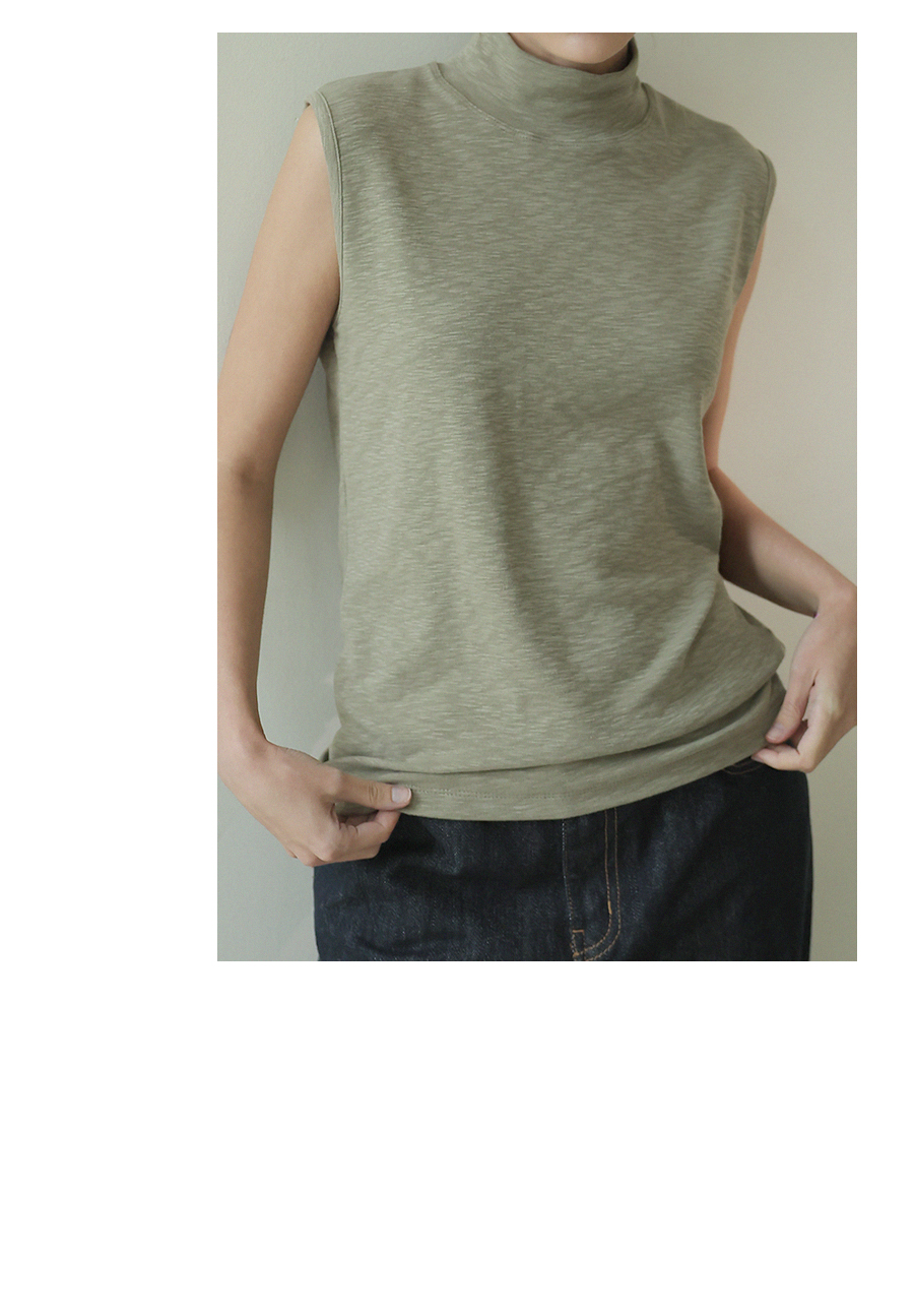 "신축성과 부드러움을 겸비한 모달 모크넥 민소매 탑"