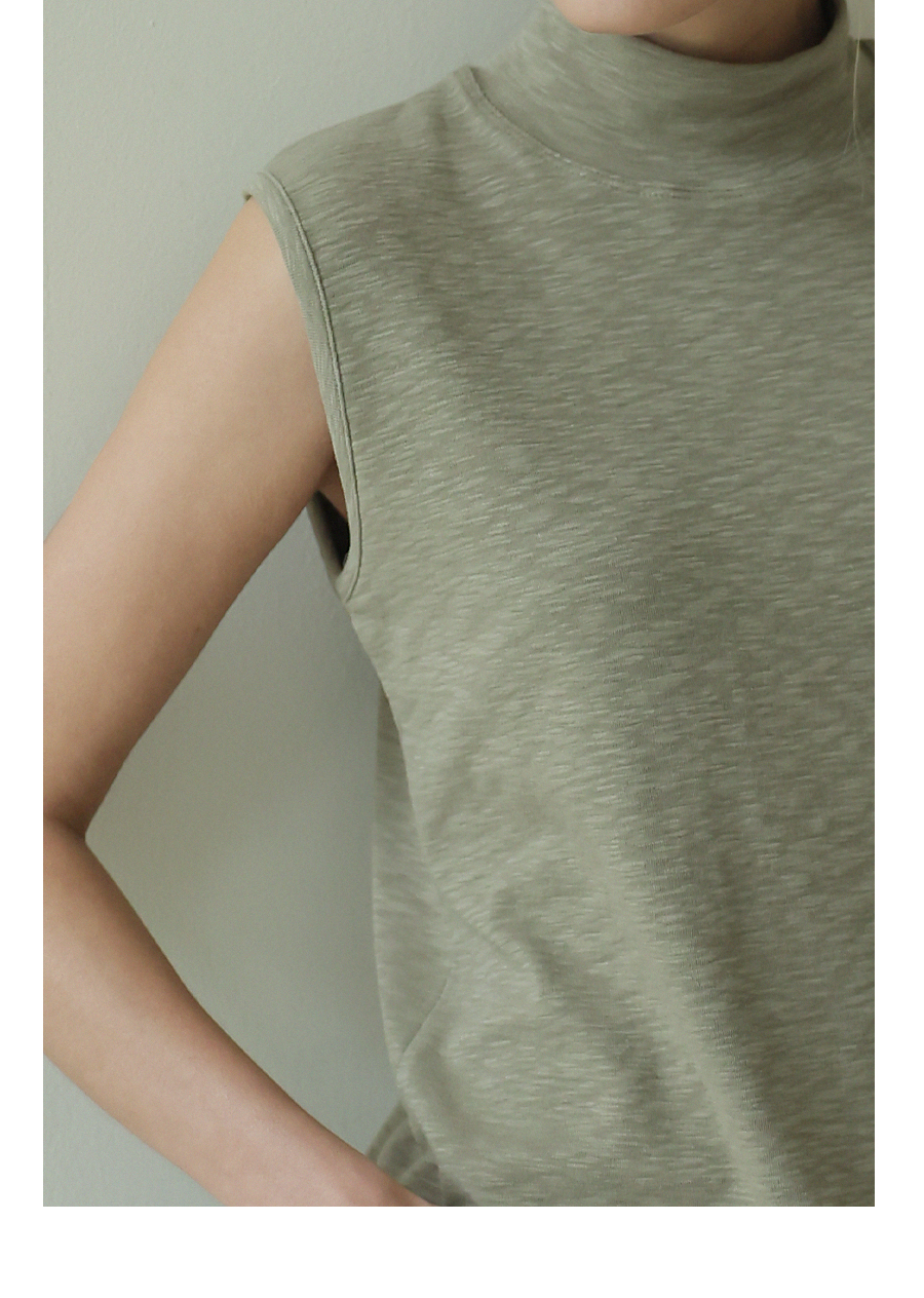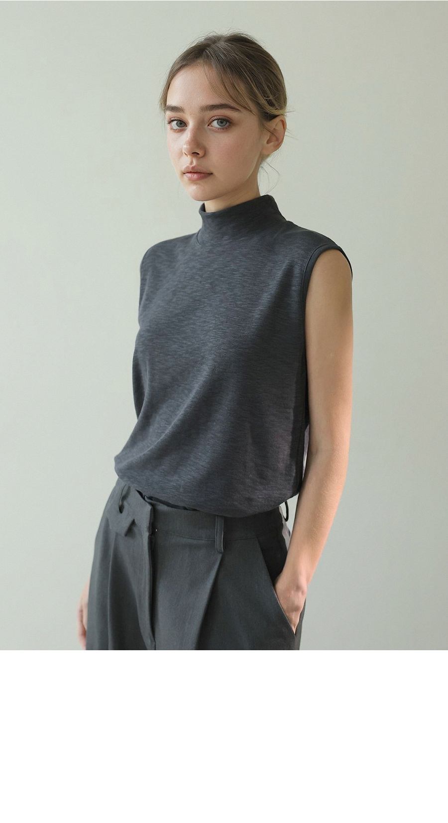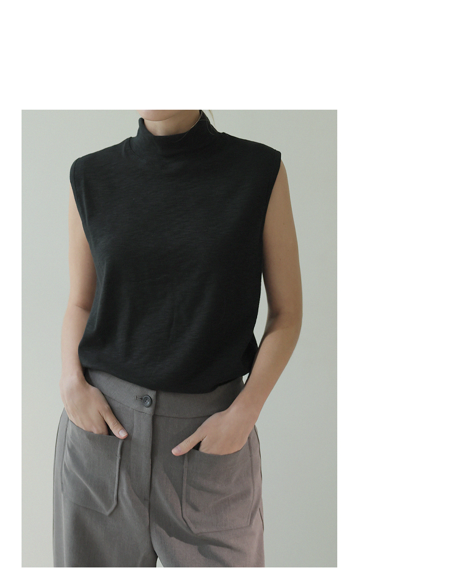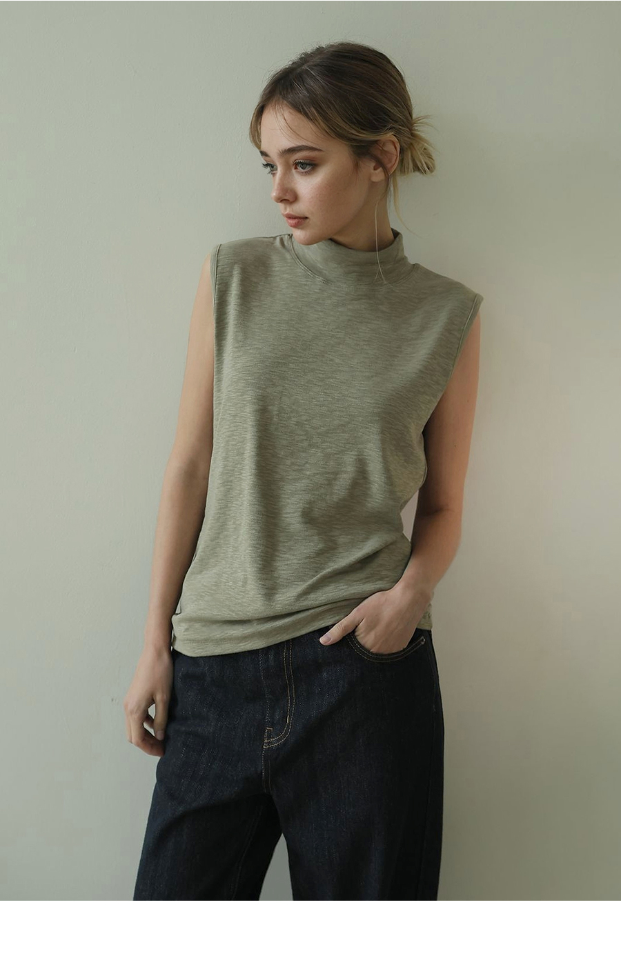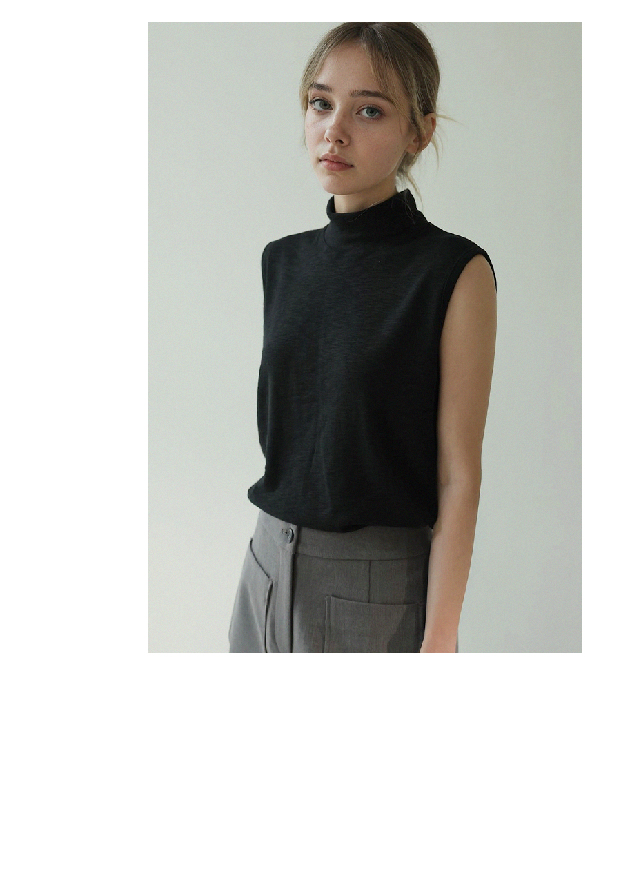 "신축성과 부드러움을 겸비한 모달 모크넥 민소매 탑"