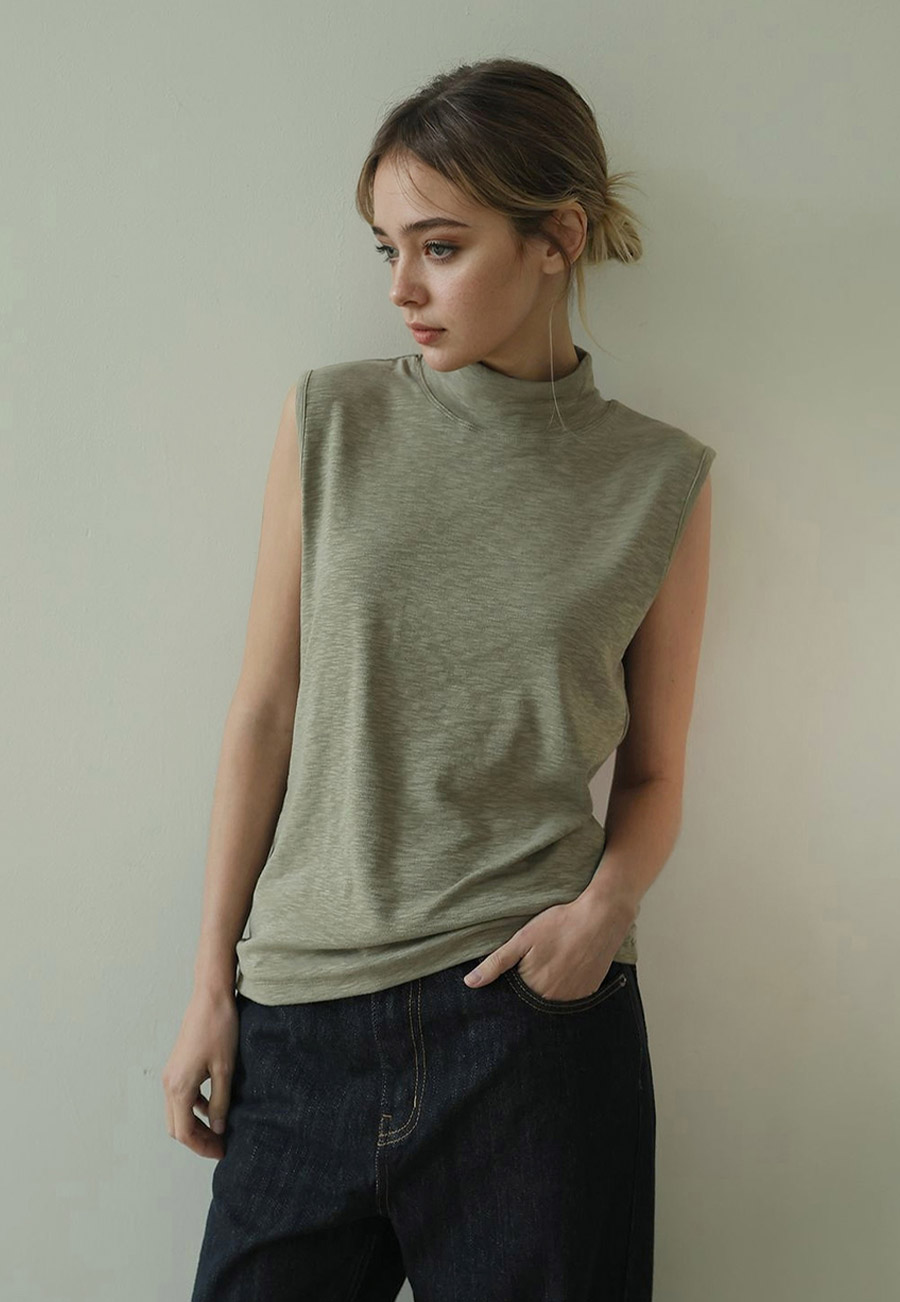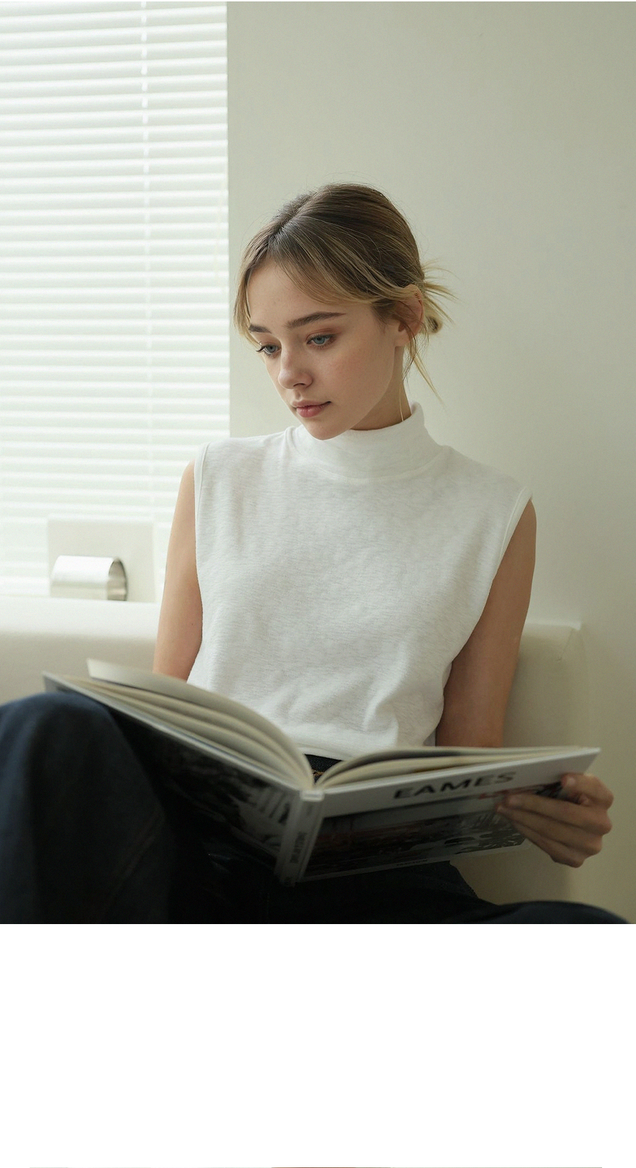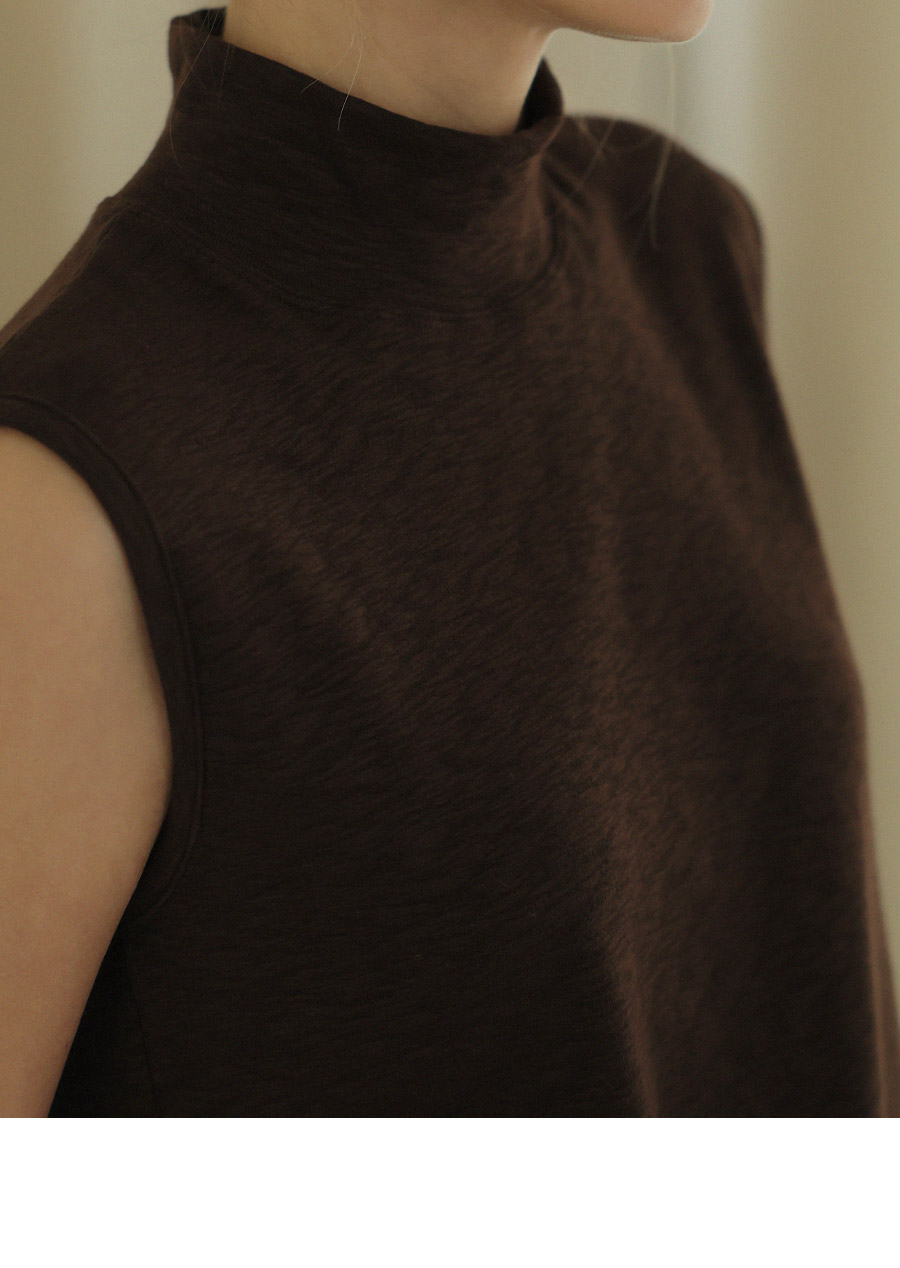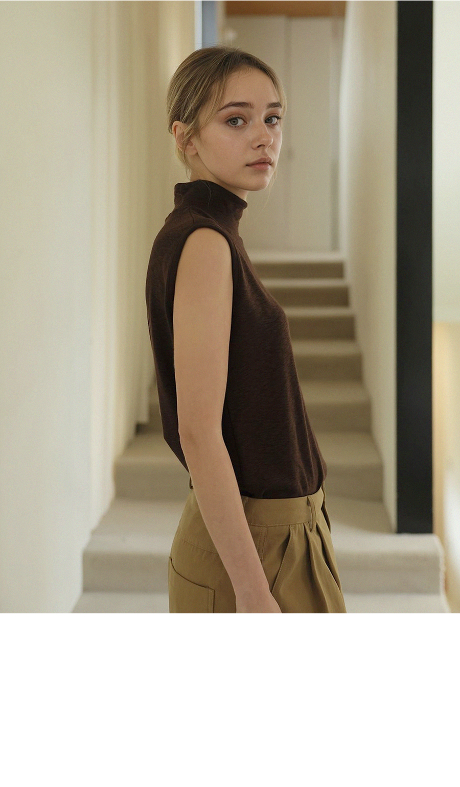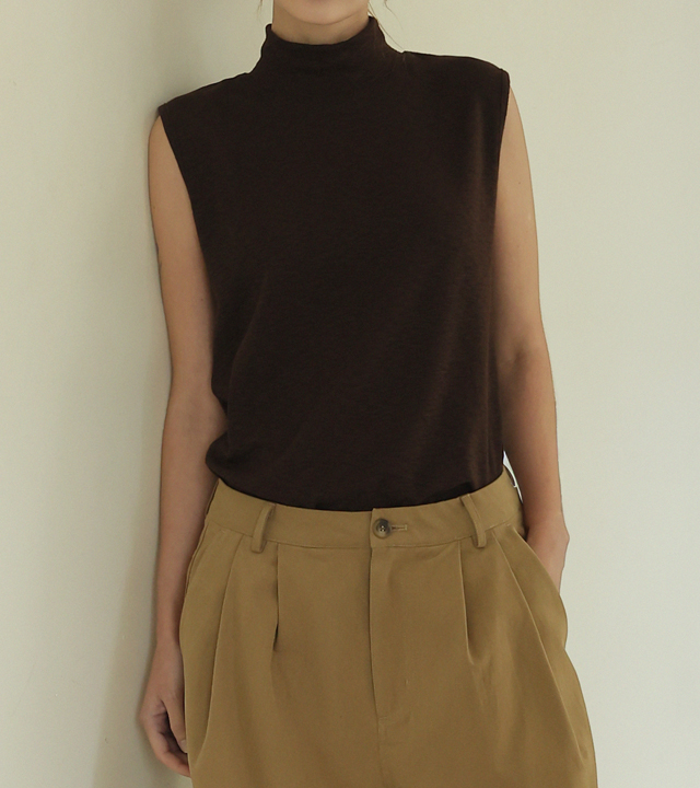 "신축성과 부드러움을 겸비한 모달 모크넥 민소매 탑"