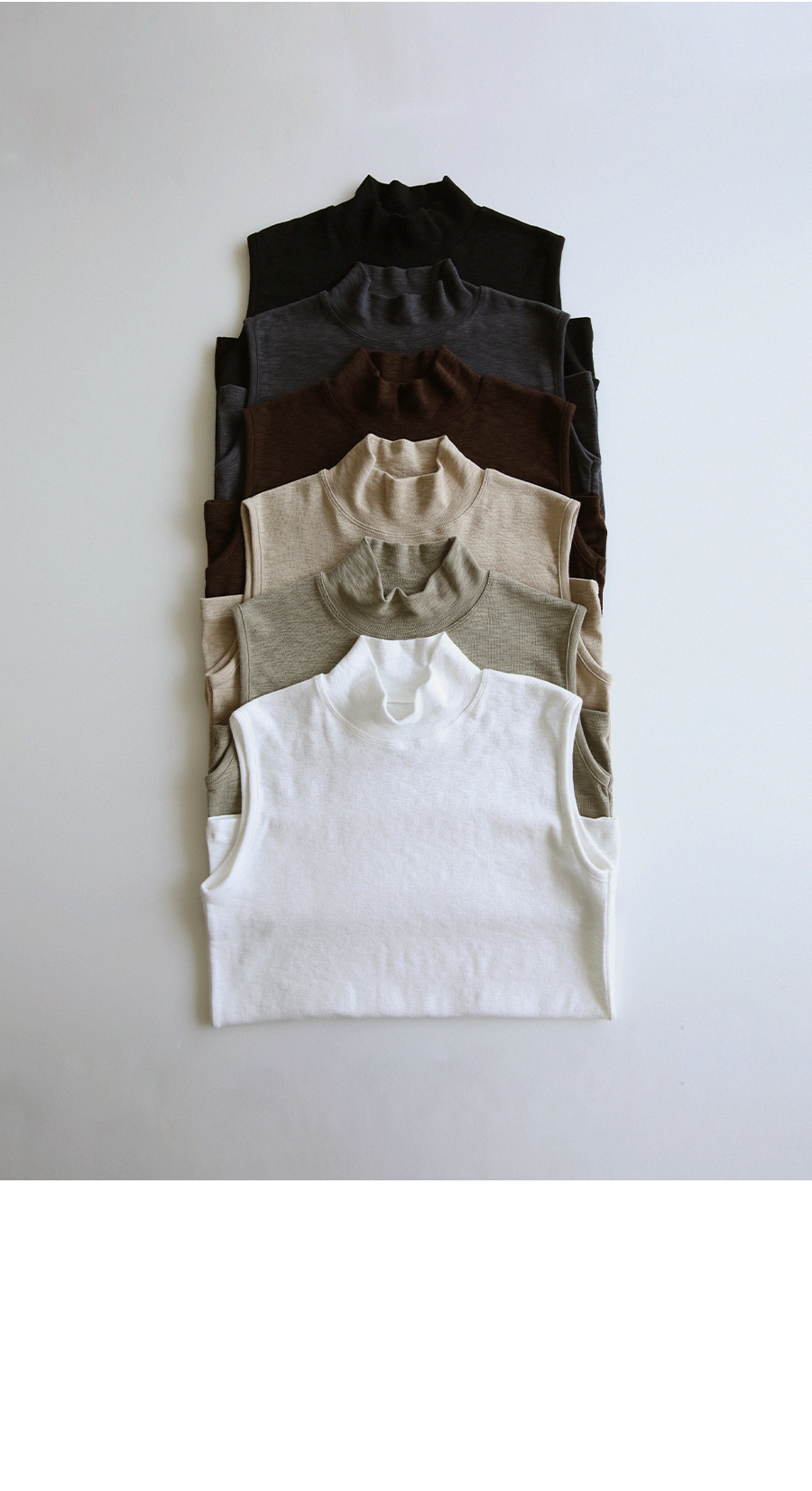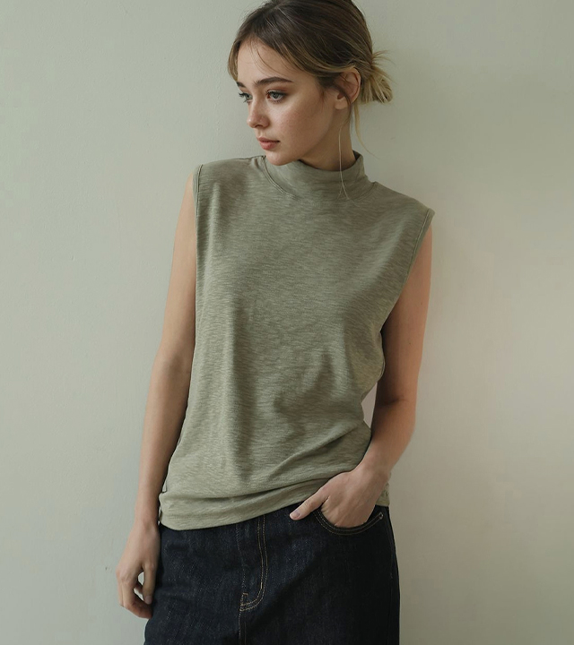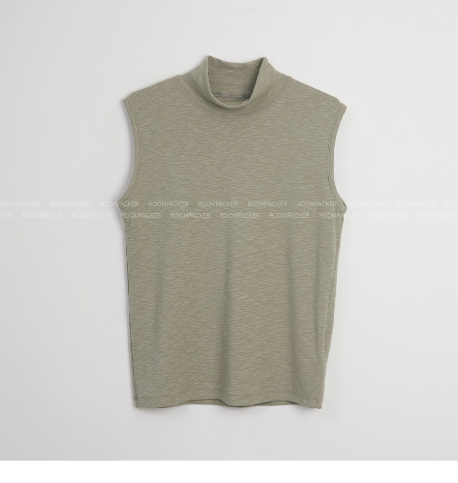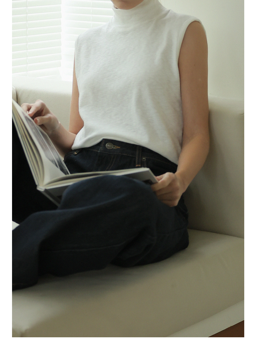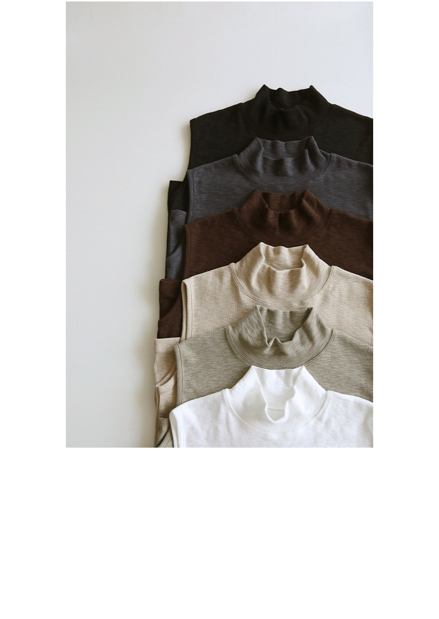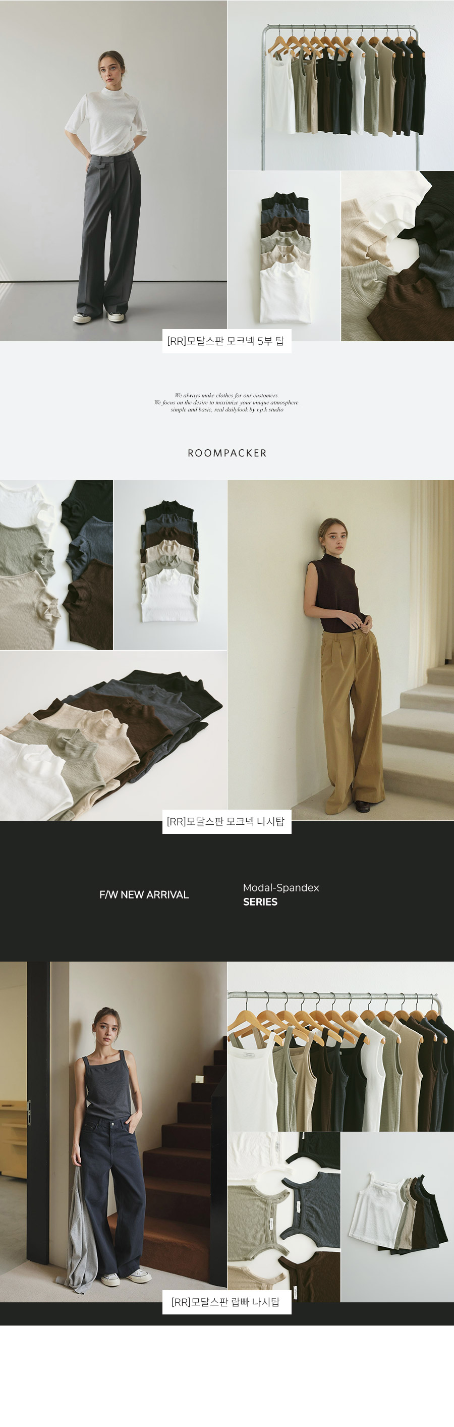 "신축성과 부드러움을 겸비한 모달 모크넥 민소매 탑"