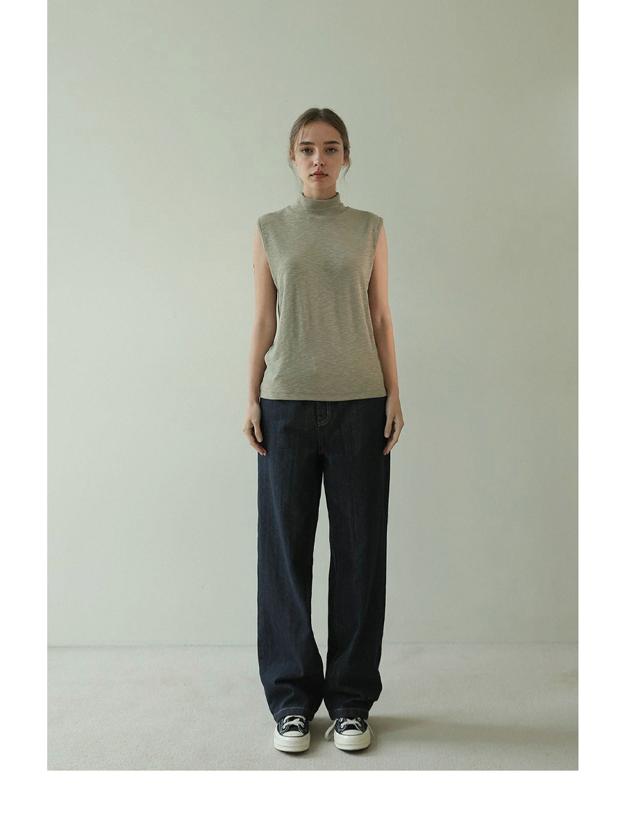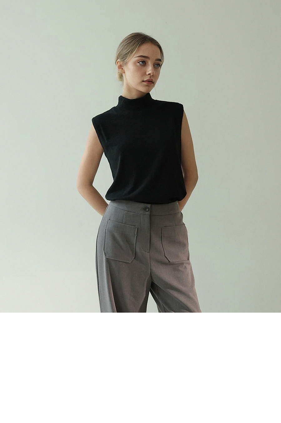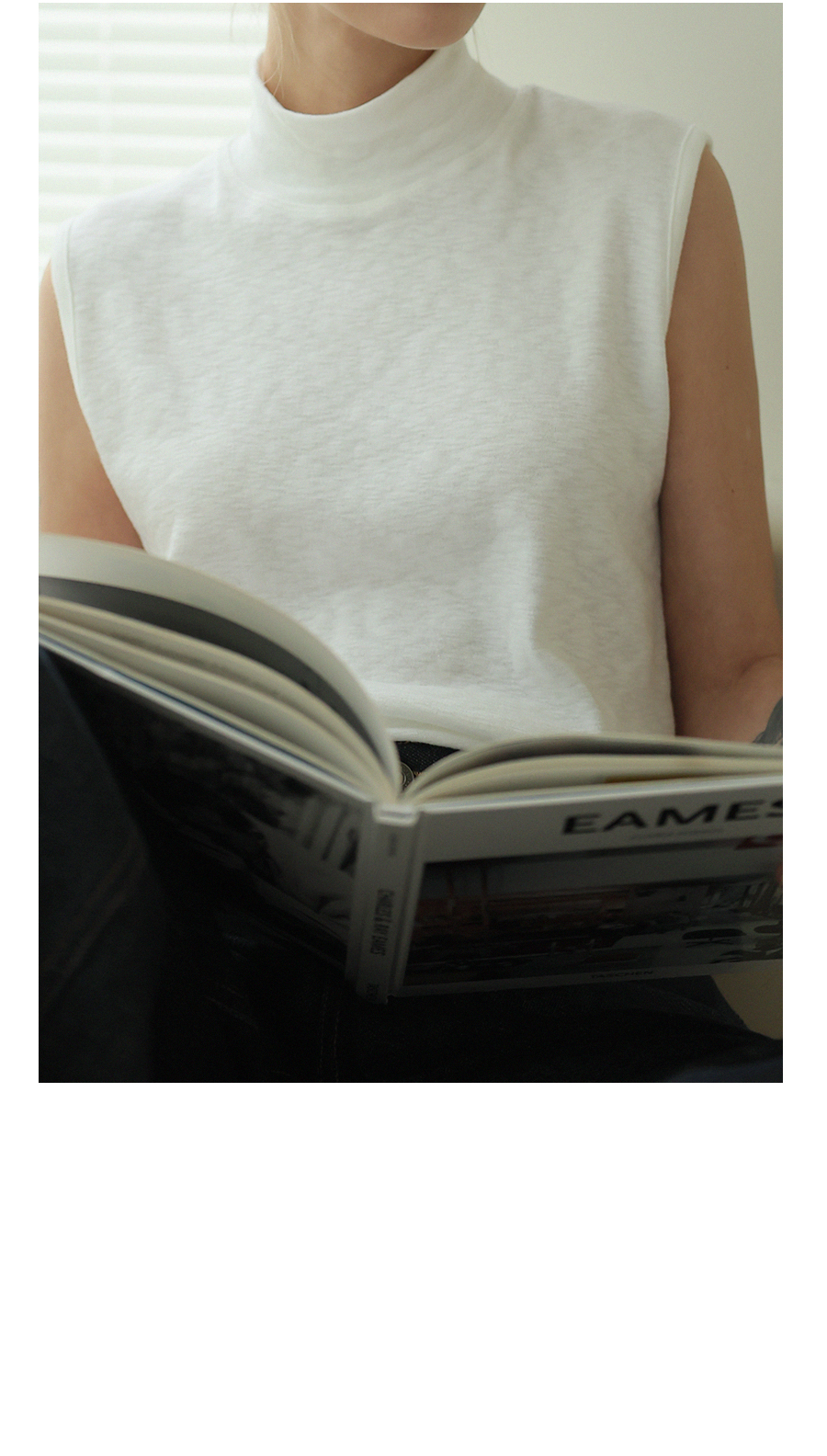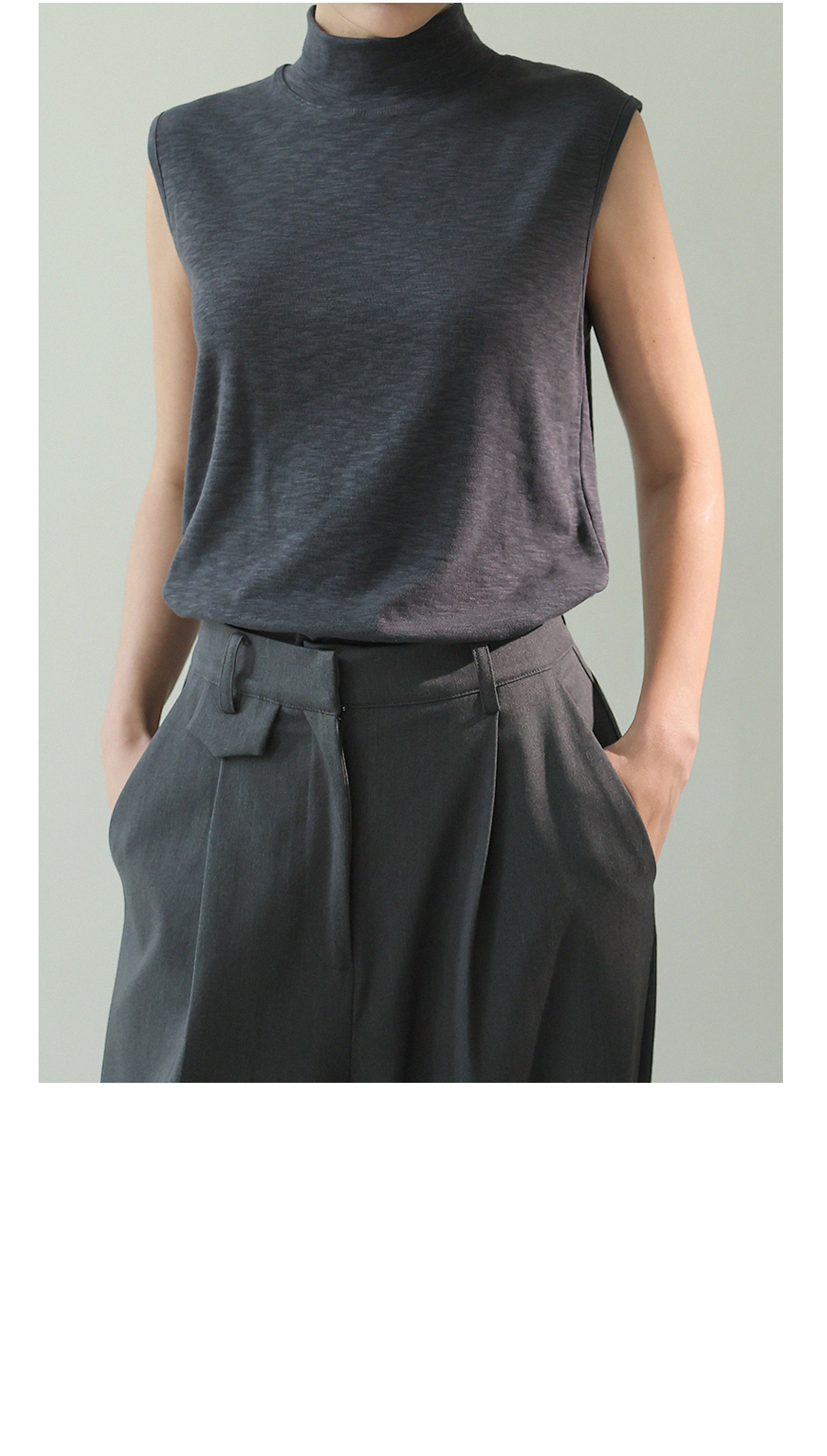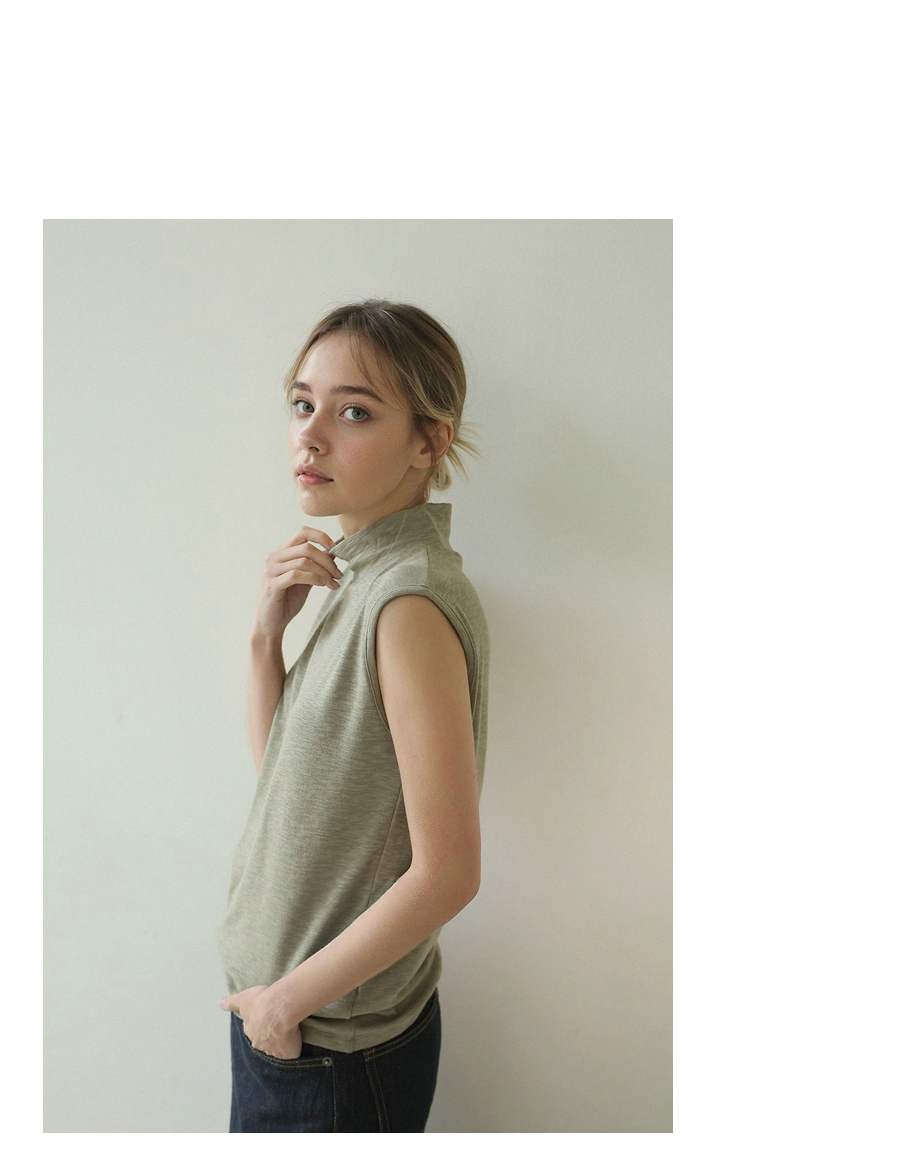 "신축성과 부드러움을 겸비한 모달 모크넥 민소매 탑"