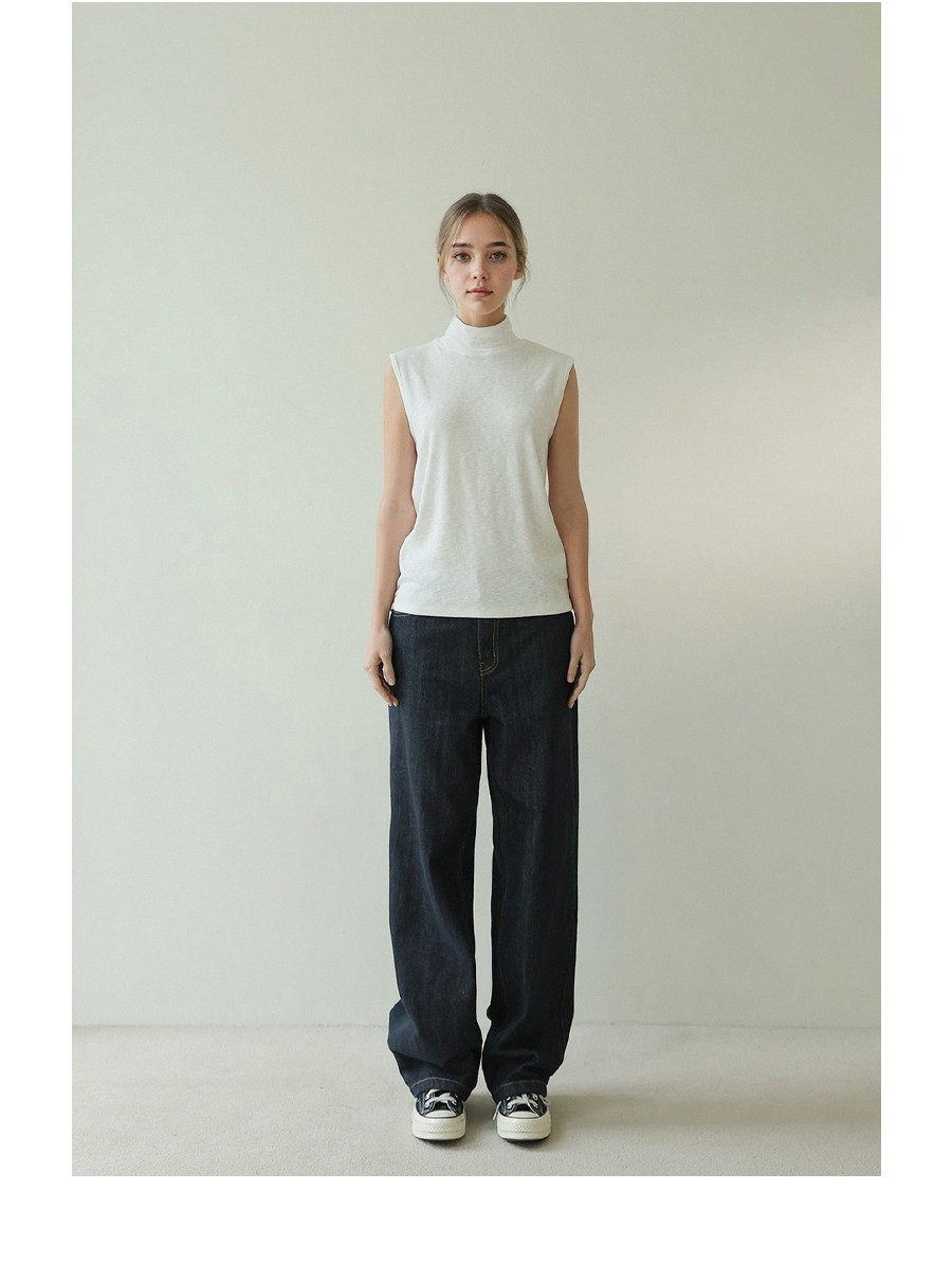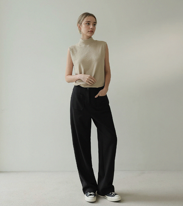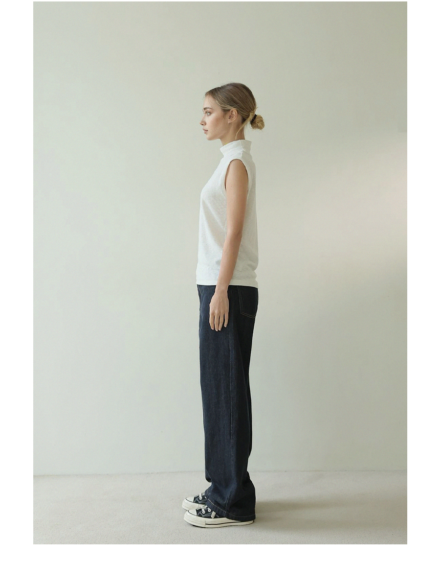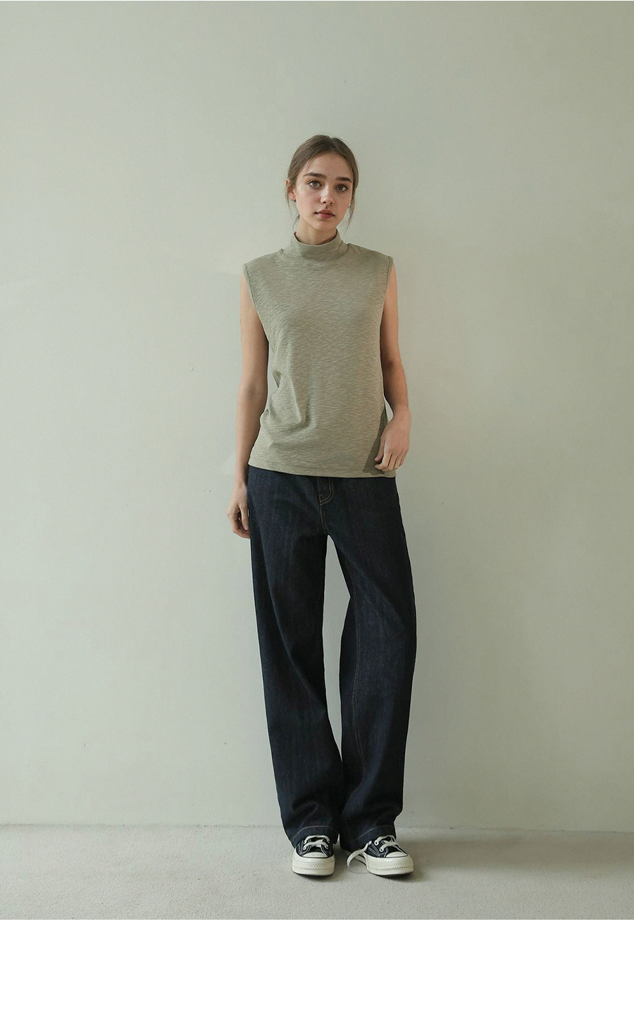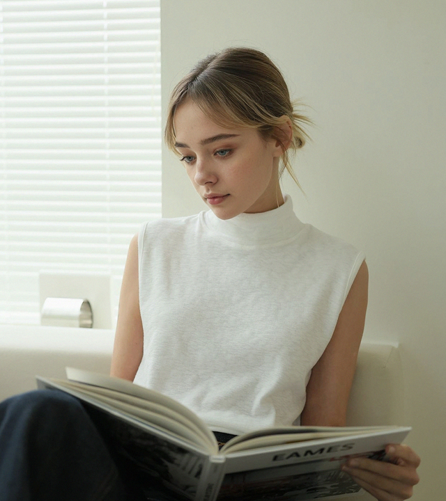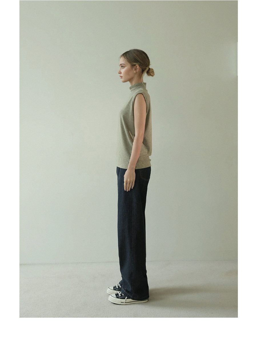 "신축성과 부드러움을 겸비한 모달 모크넥 민소매 탑"