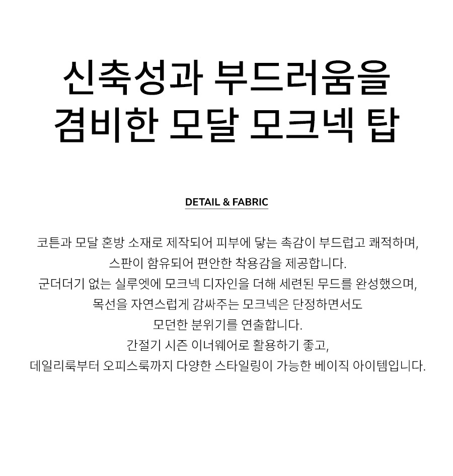 - 목선을 자연스럽게 감싸주는 모크넥이 단정하면서도 모던한 분위기를 완성