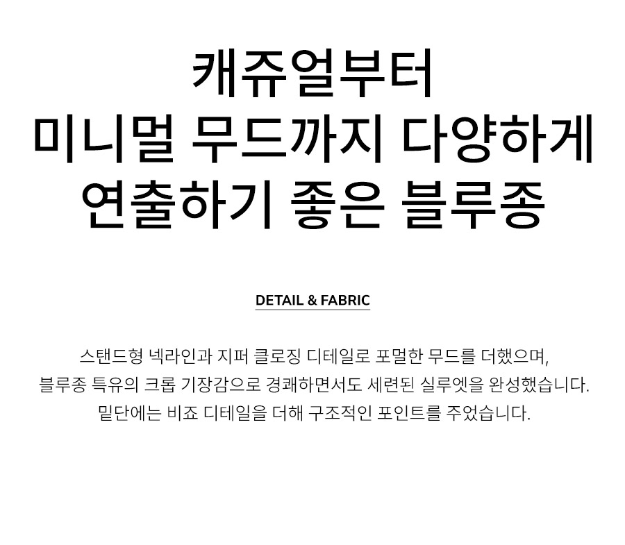 "캐쥬얼부터 미니멀 무드까지 다양하게 연출하기 좋은 블루종"