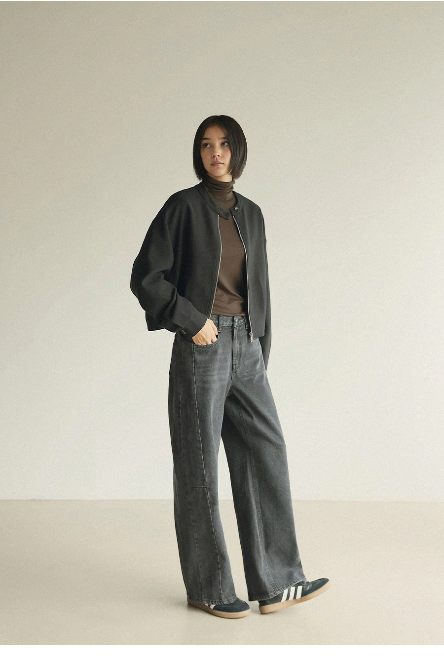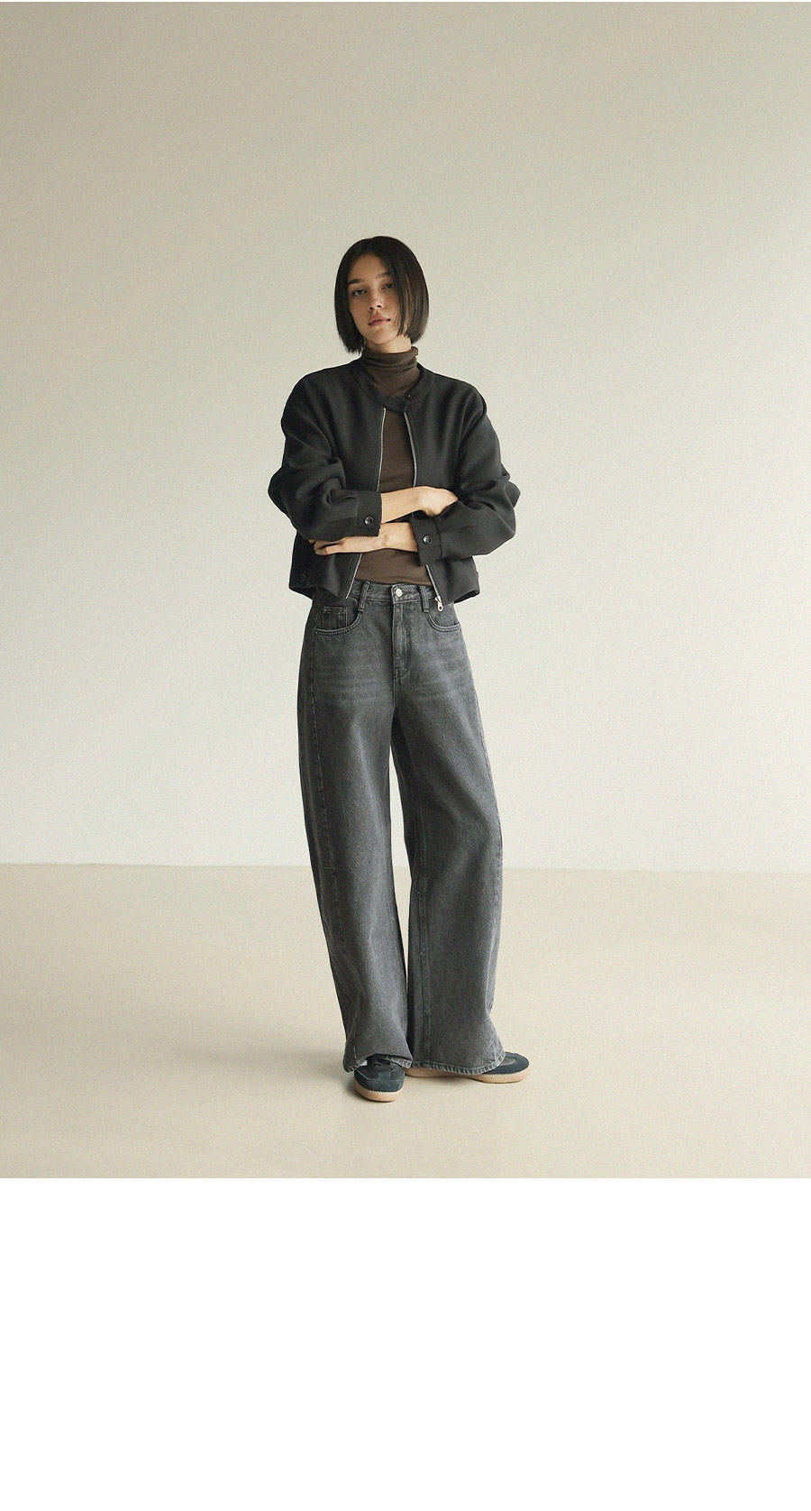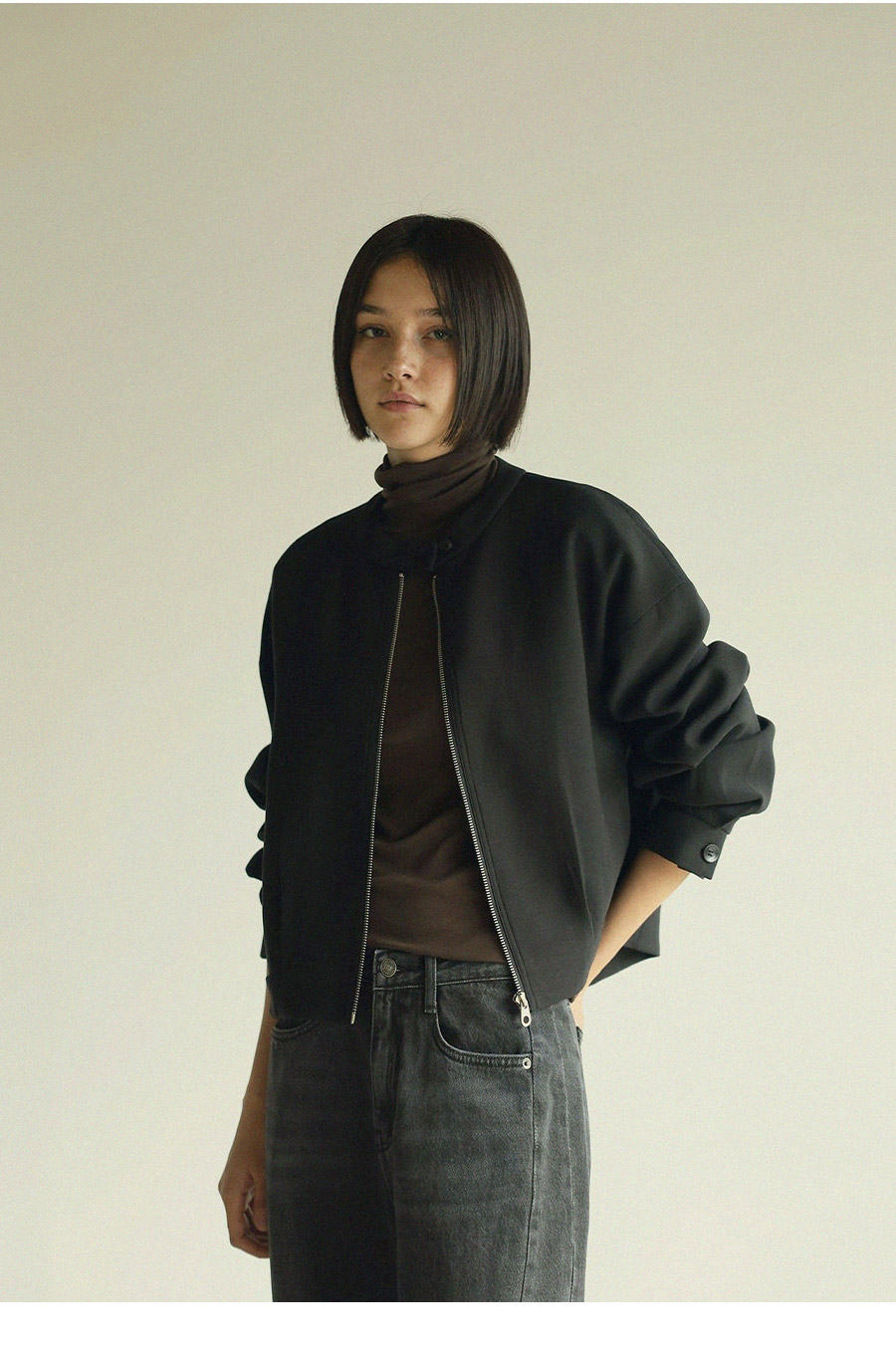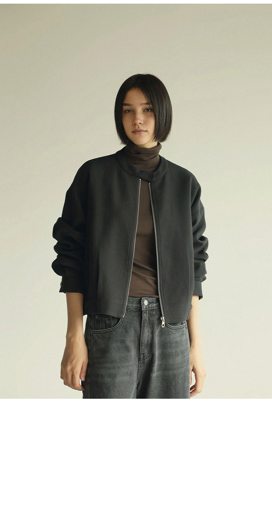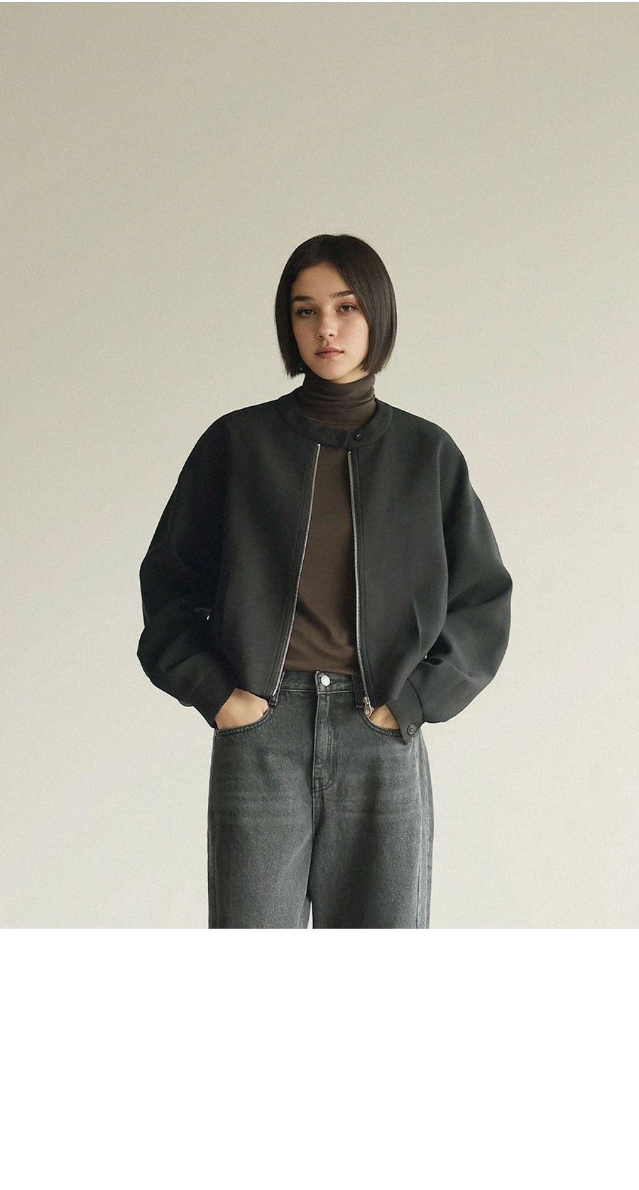 - 블루종 특유의 크롭 기장감으로 경쾌하면서도 세련된 실루엣