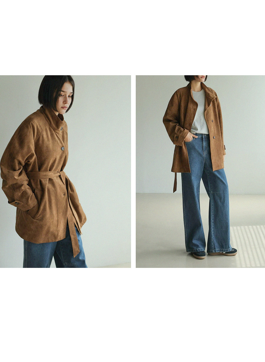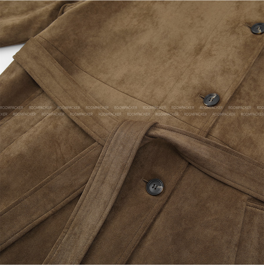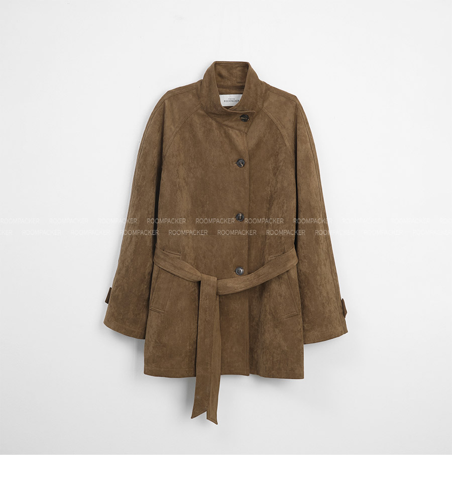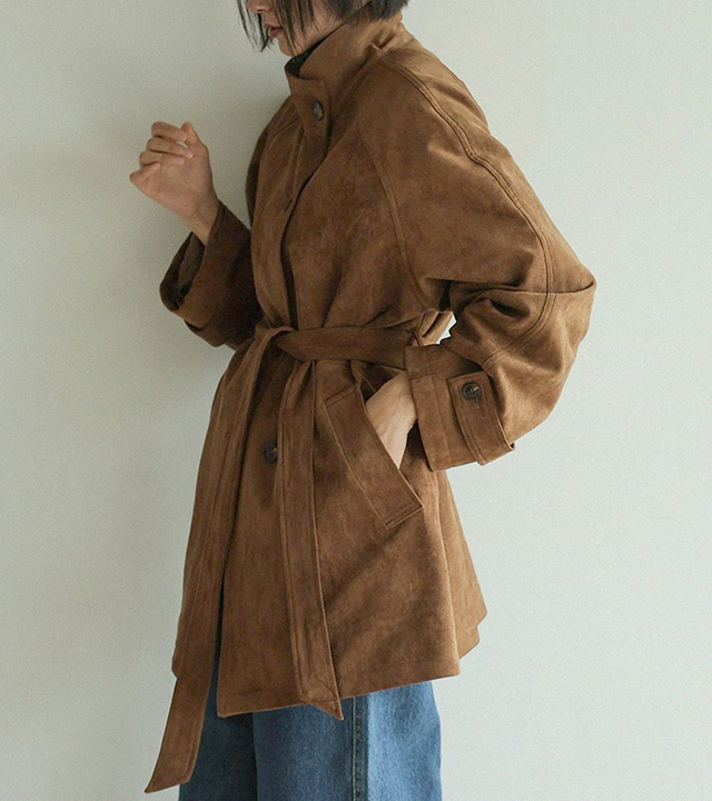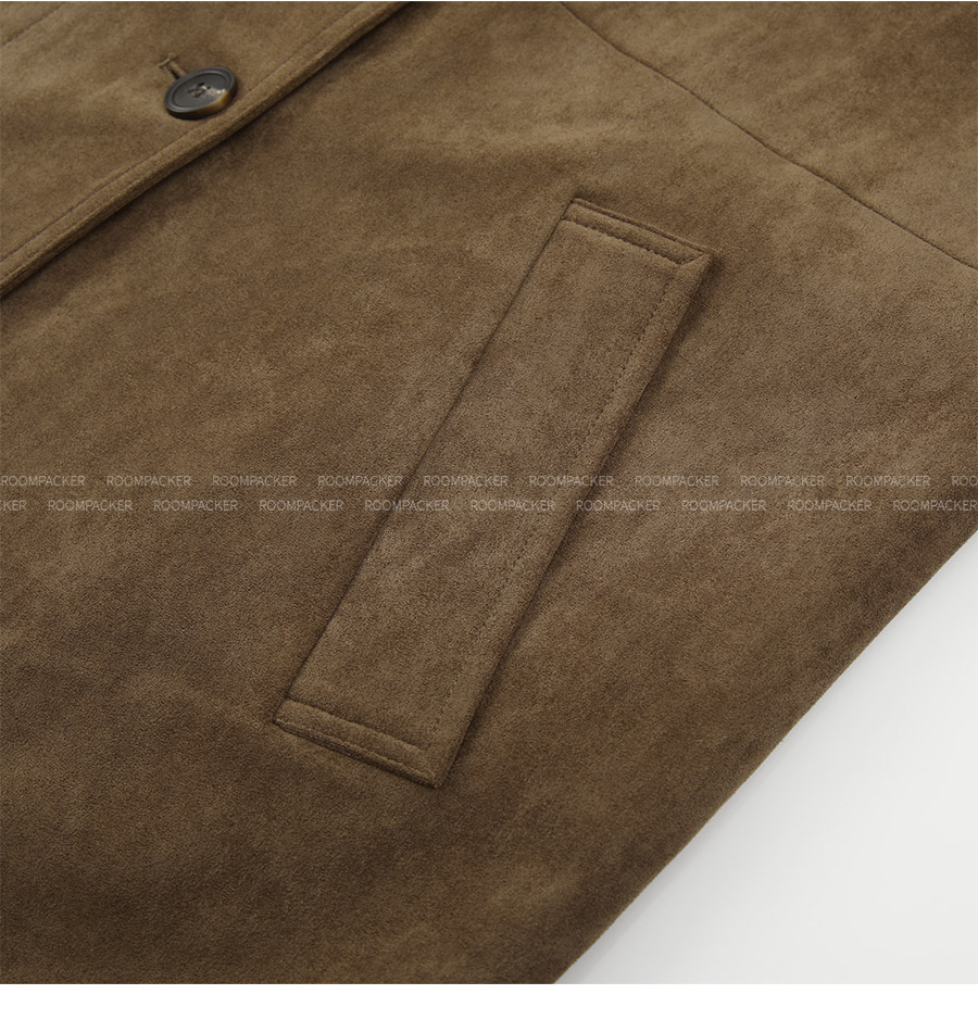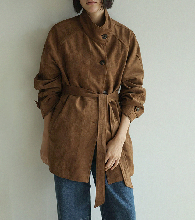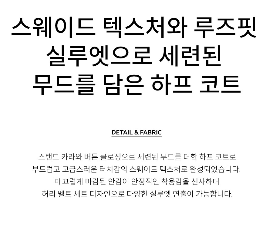 - 부드럽고 고급스러운 터치감의 스웨이드 텍스처로 완성된 하프 코트