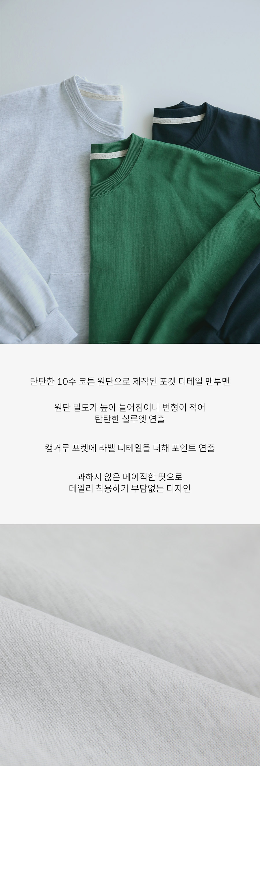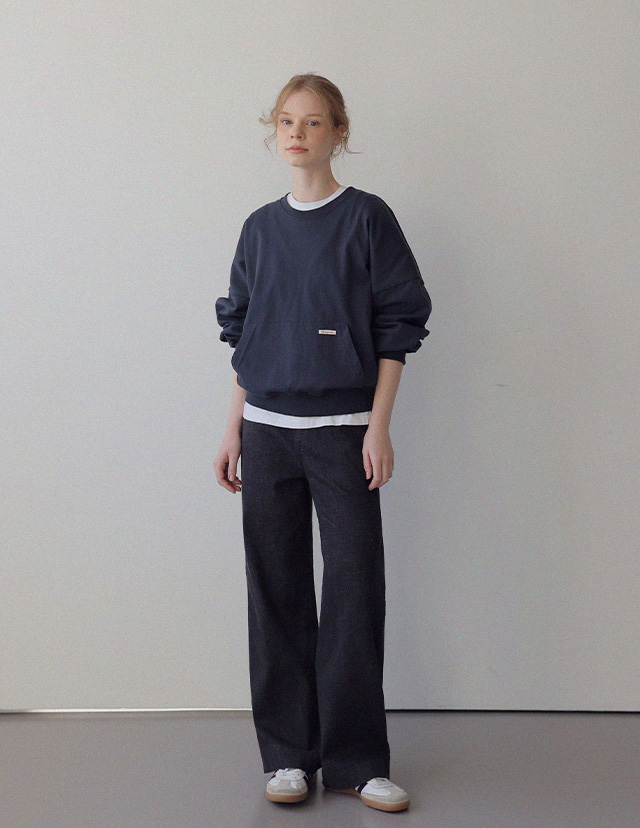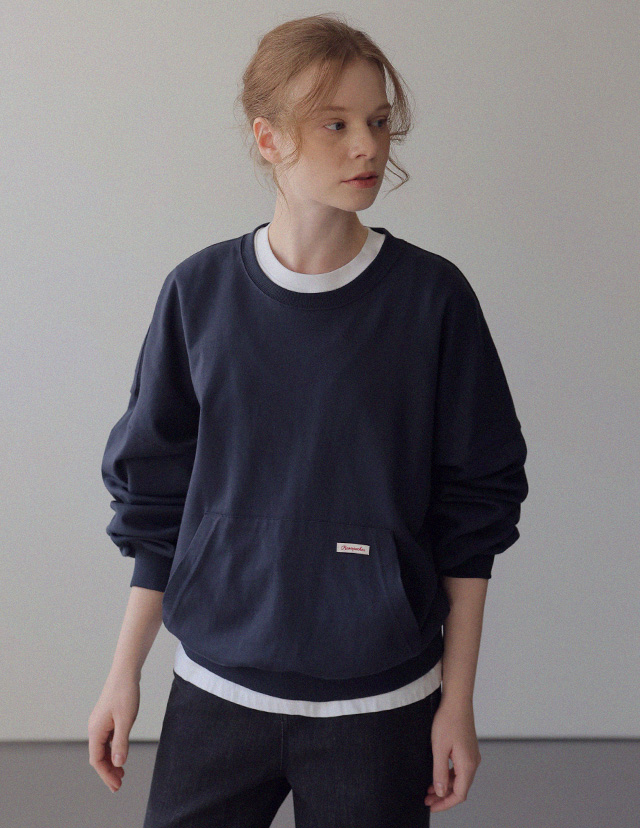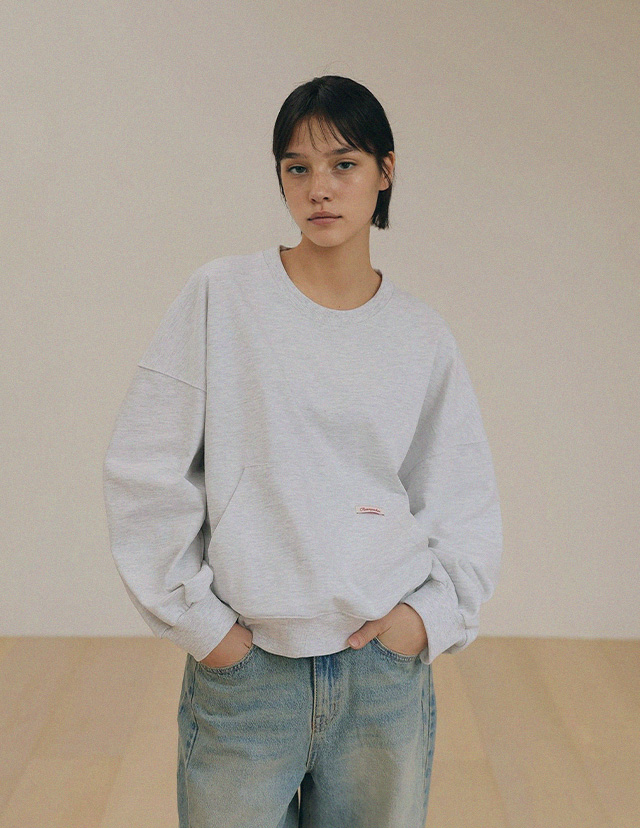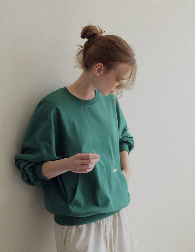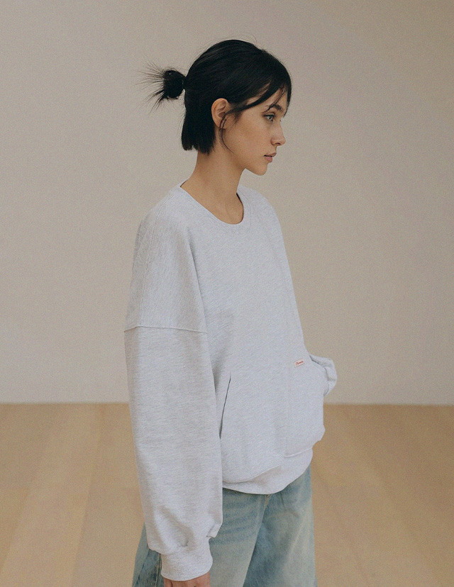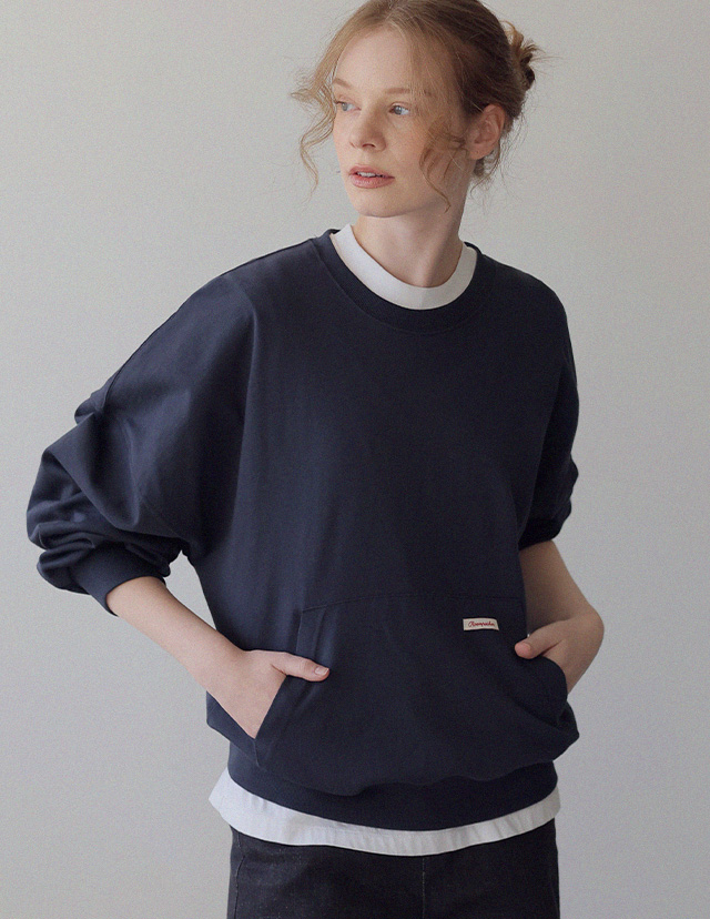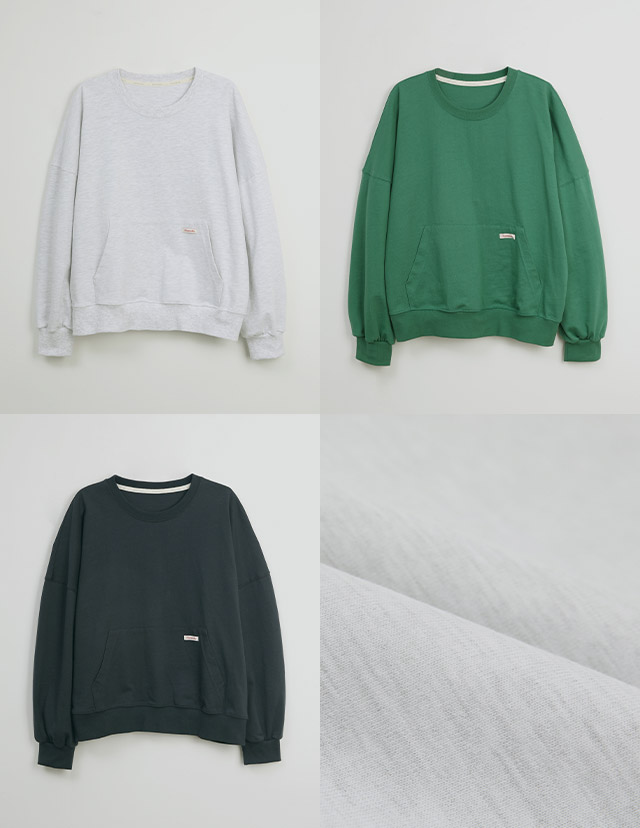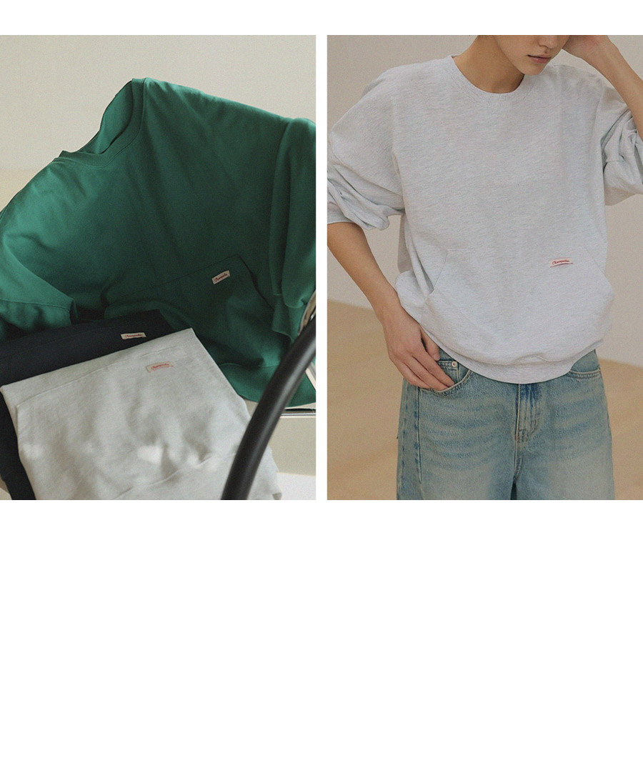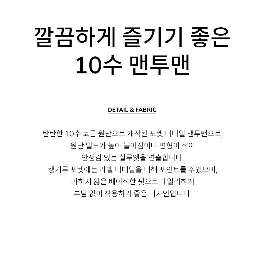 - 탄탄한 10수 코튼 원단으로 제작된 포켓 디테일 맨투맨