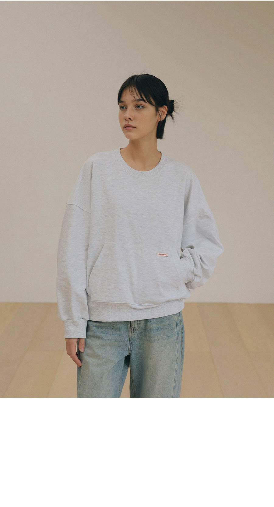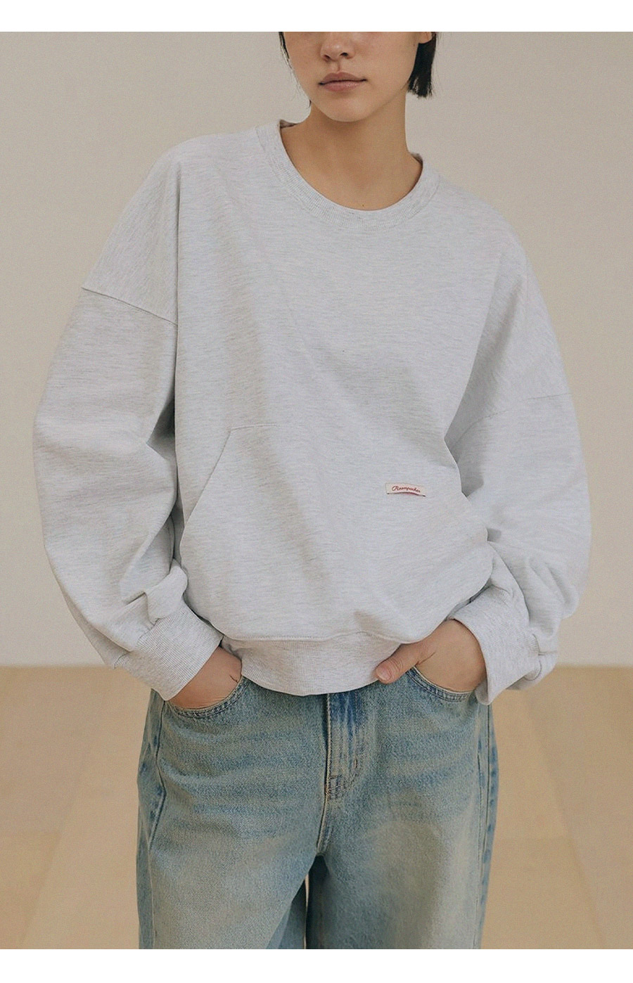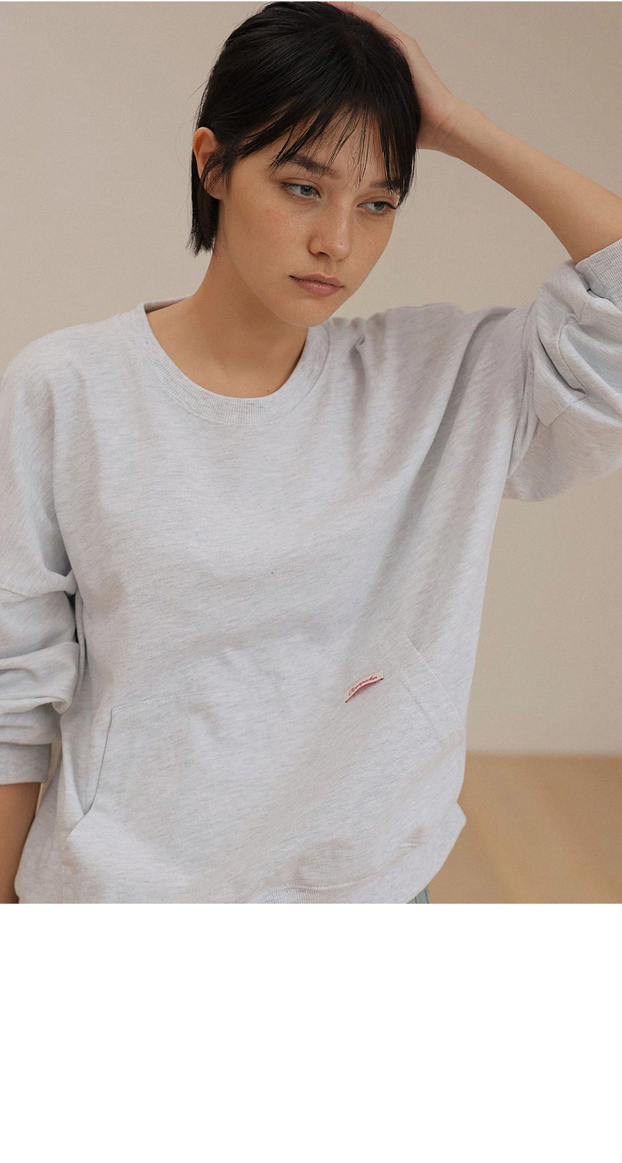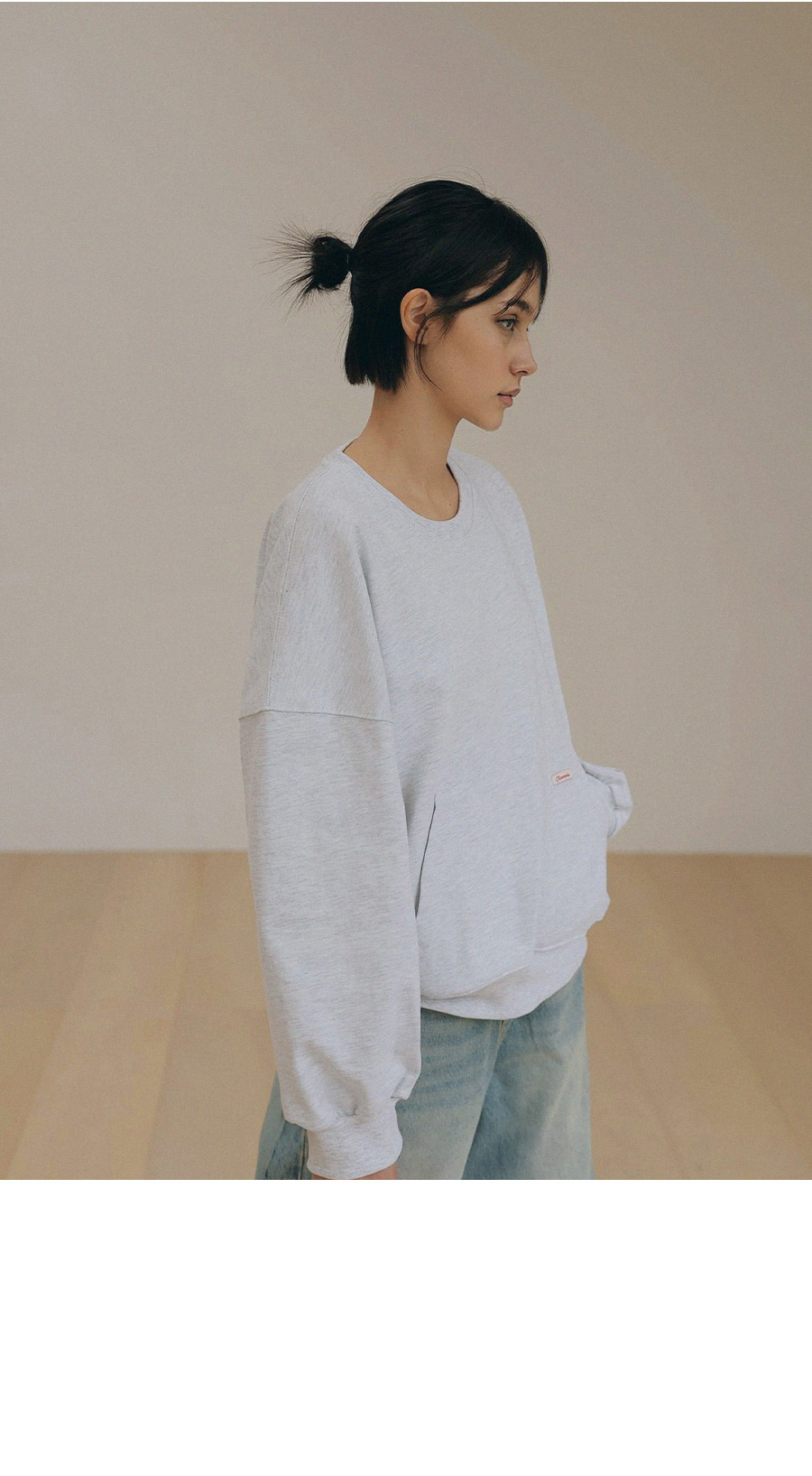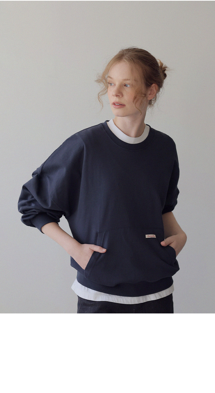 - 탄탄한 10수 코튼 원단으로 제작된 포켓 디테일 맨투맨