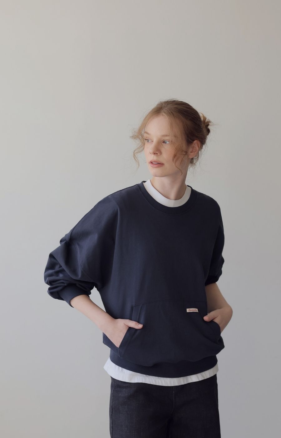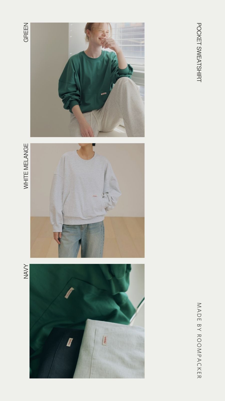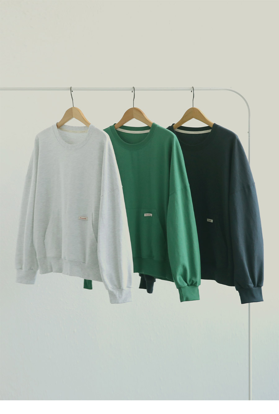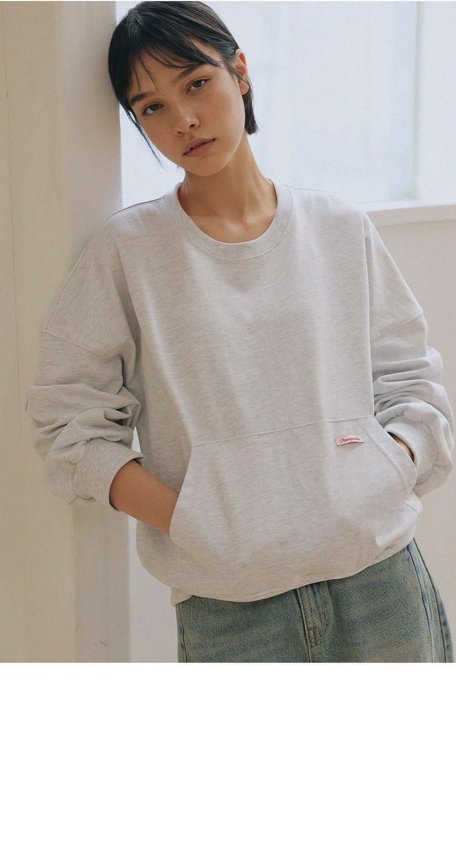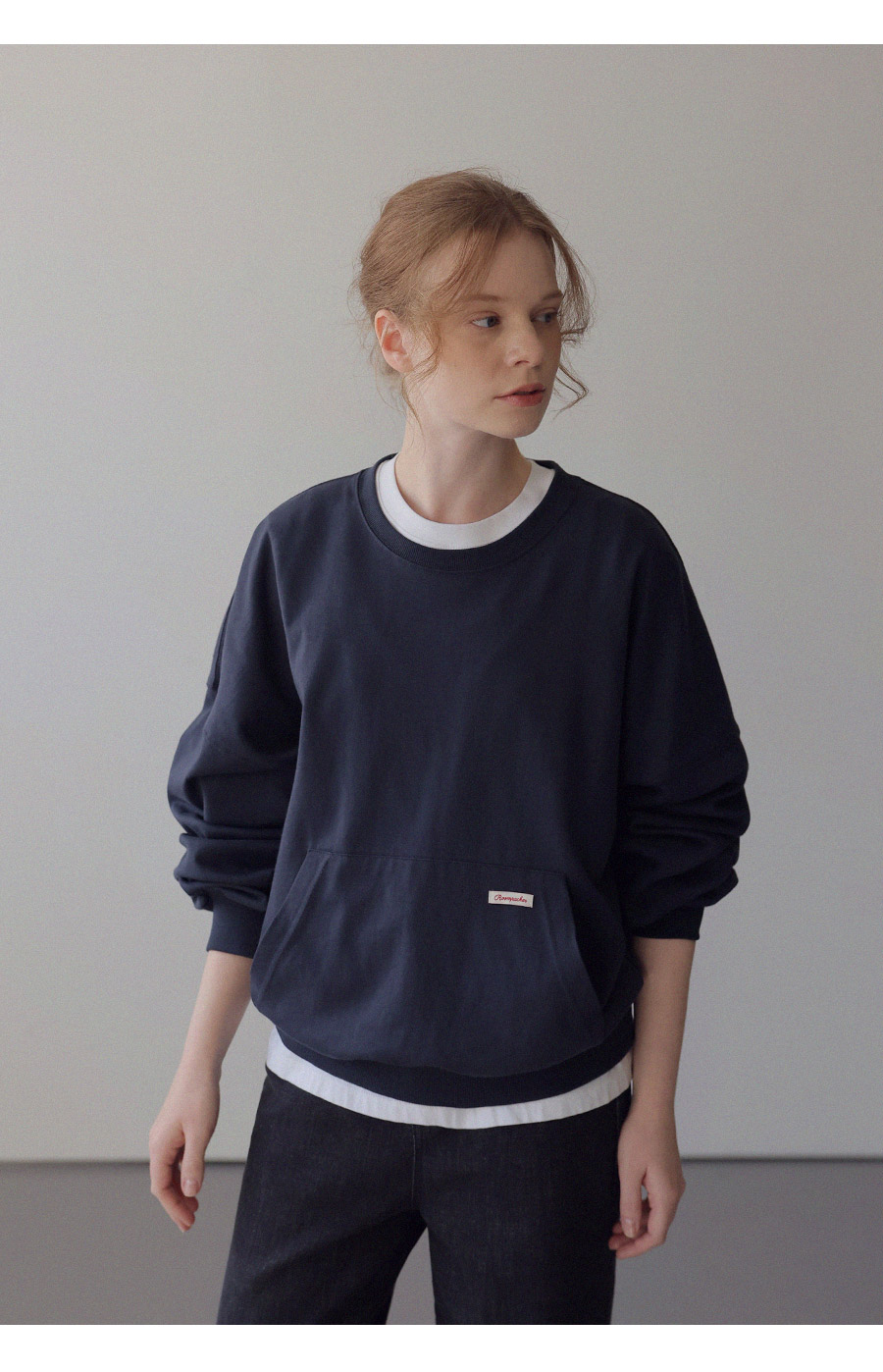 - 탄탄한 10수 코튼 원단으로 제작된 포켓 디테일 맨투맨