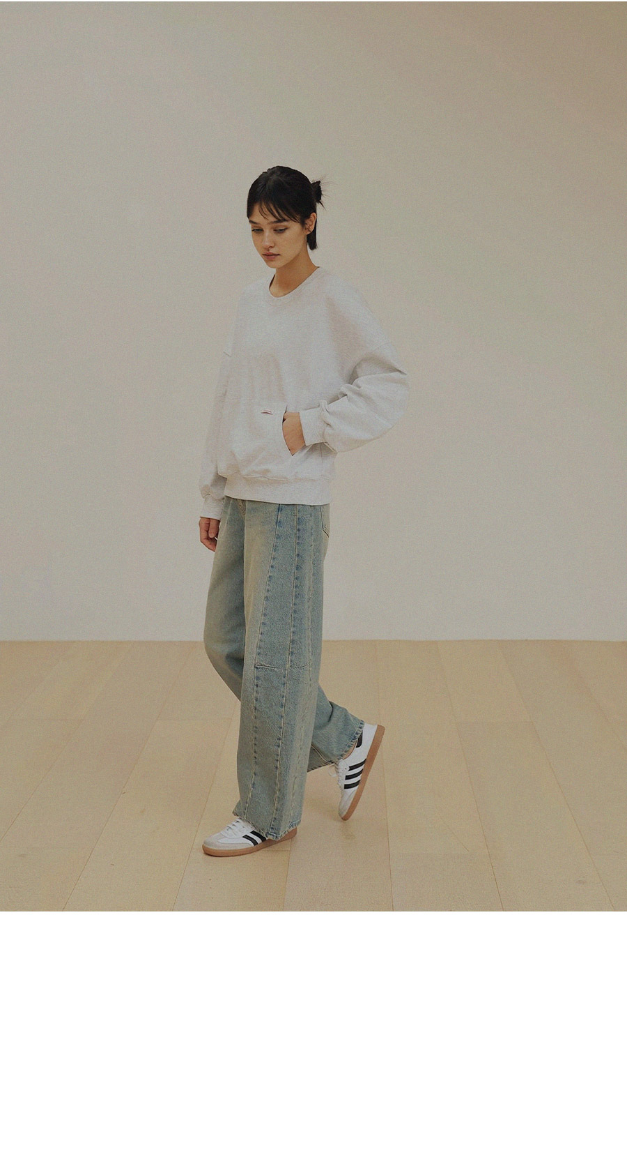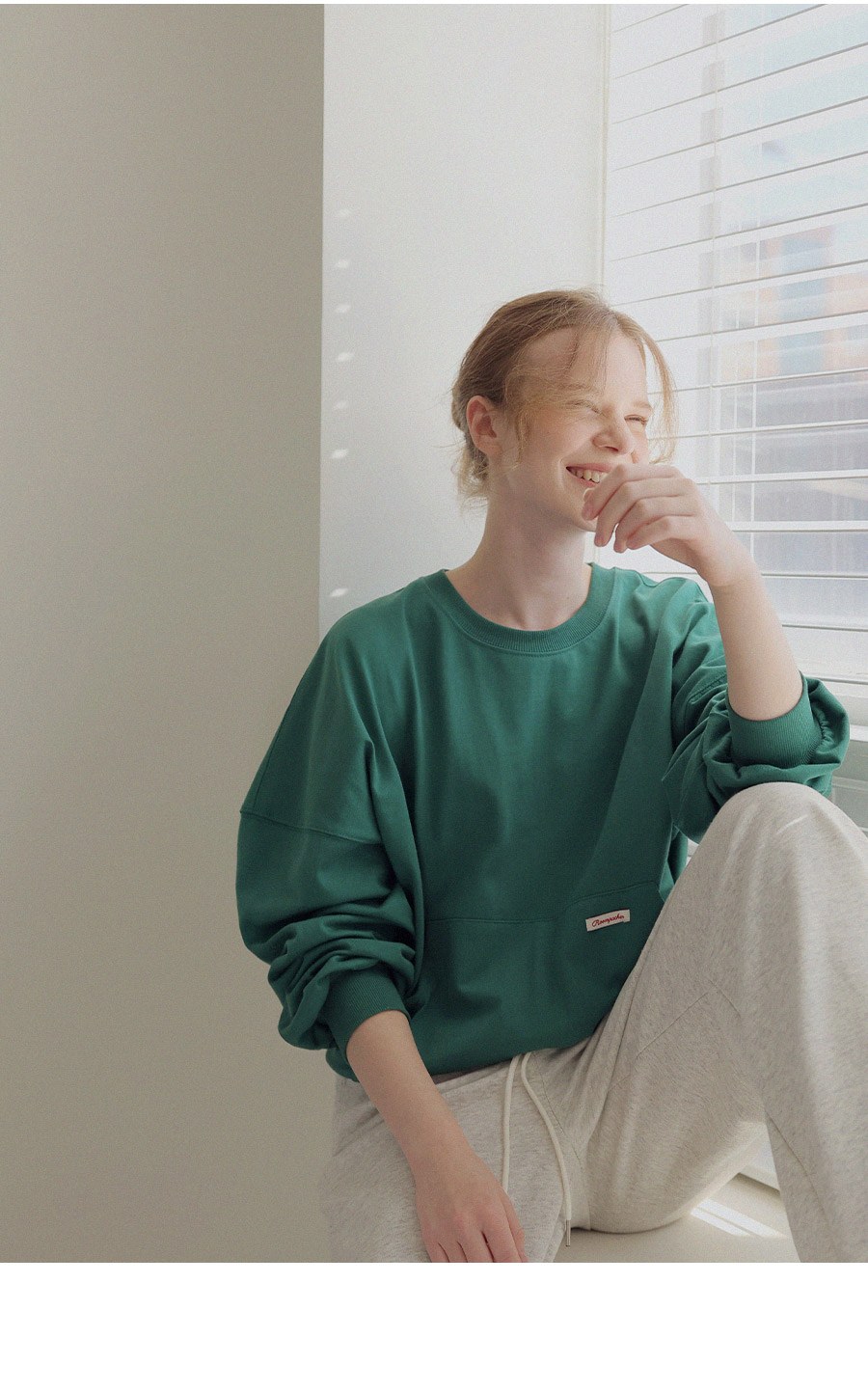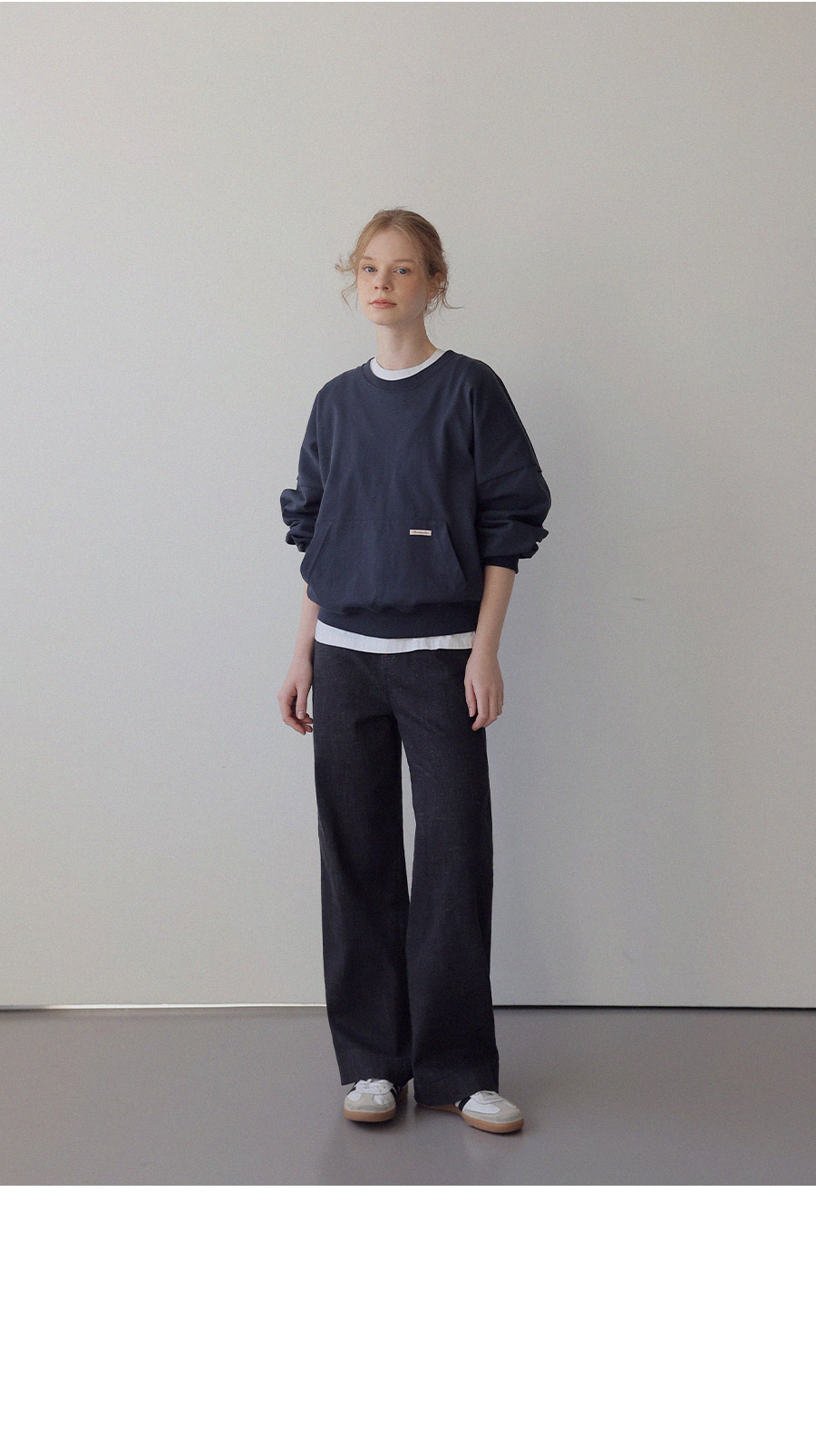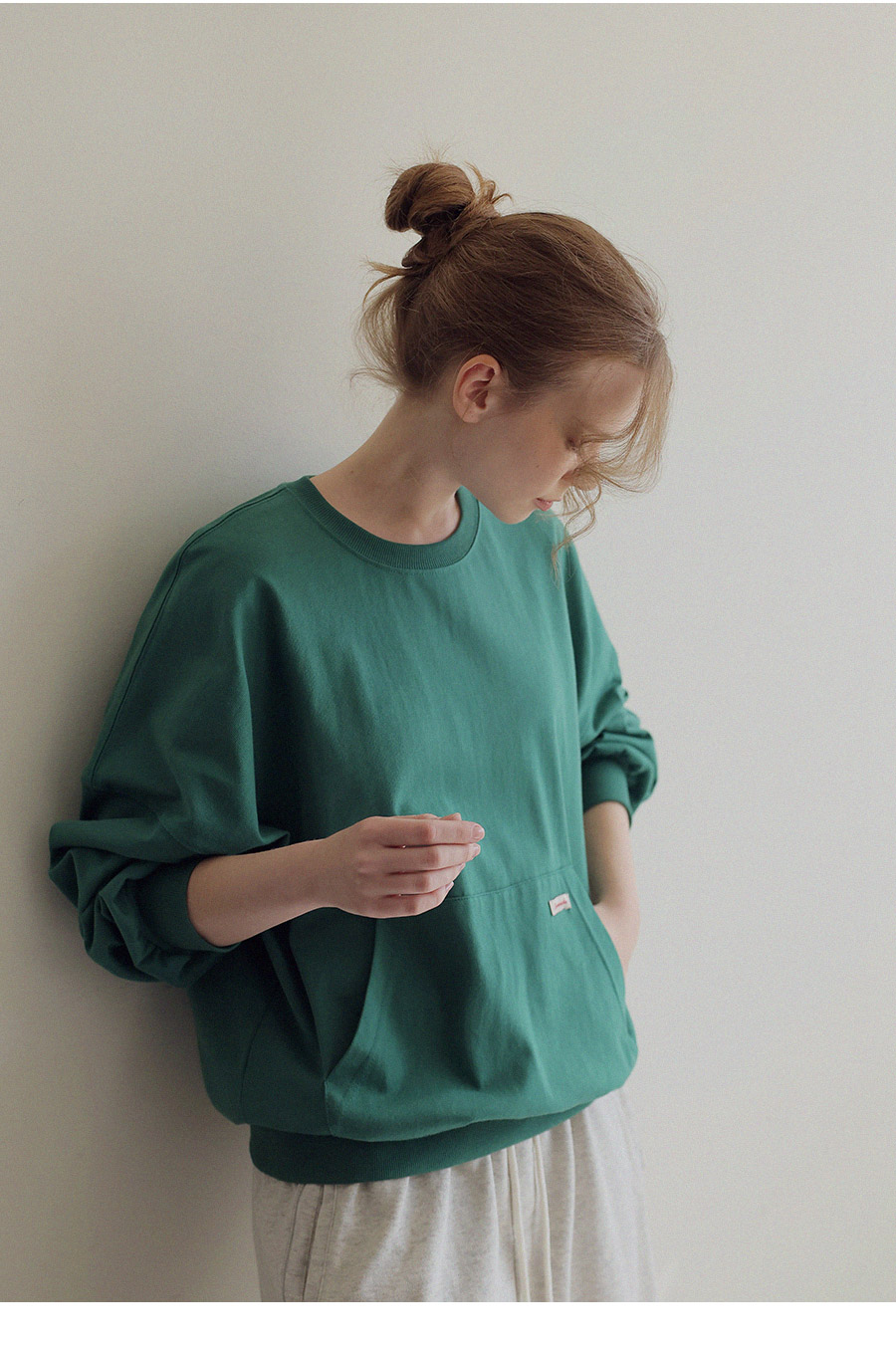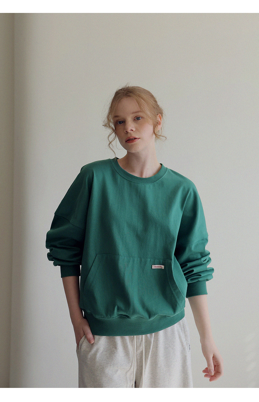 - 탄탄한 10수 코튼 원단으로 제작된 포켓 디테일 맨투맨