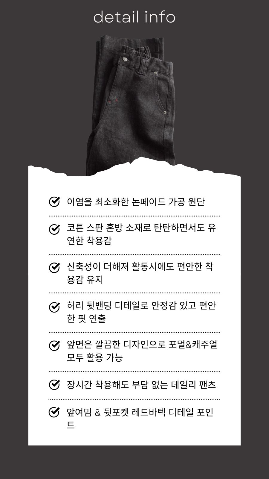 - 장시간 착용해도 부담 없는 데일리 팬츠