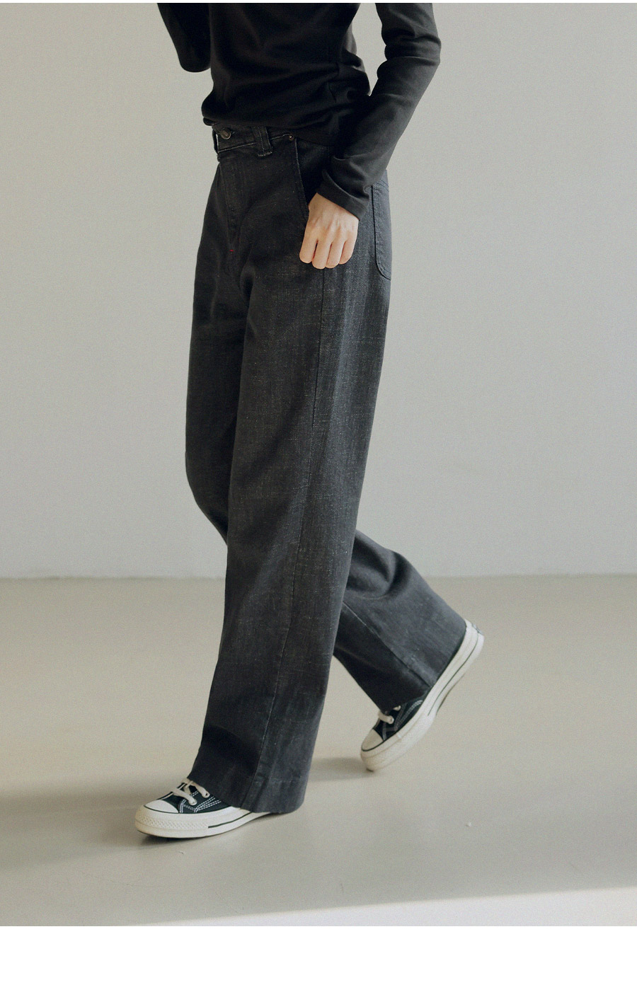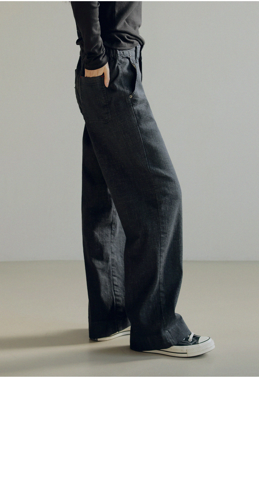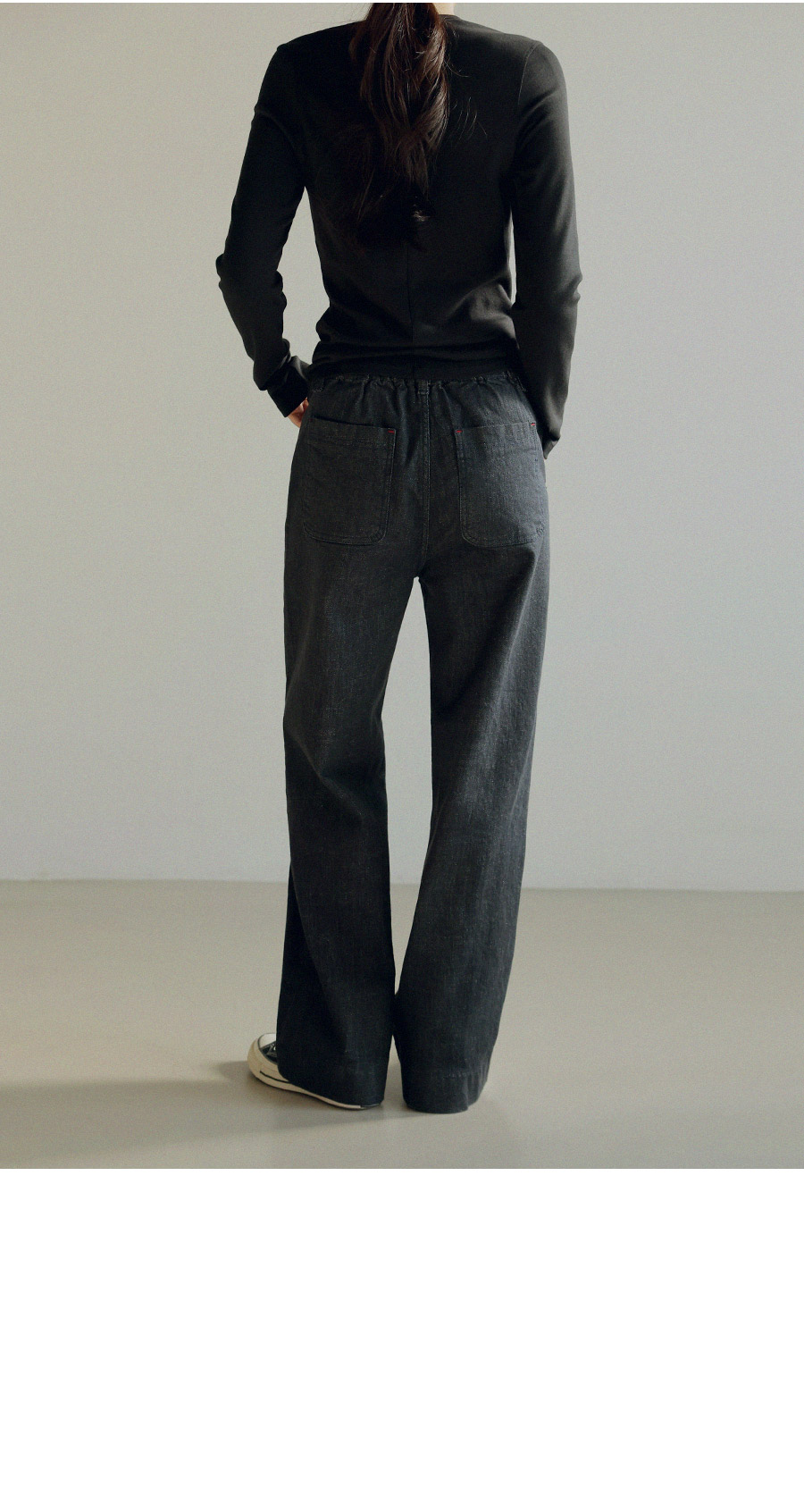 - 허리 뒷밴딩 디테일로 안정감 있고 편안한 핏 연출