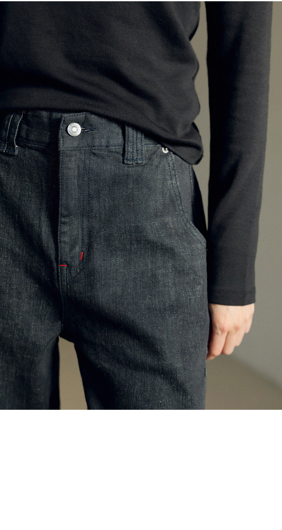 - 앞여밈 & 뒷포켓 레드바텍 디테일 포인트
