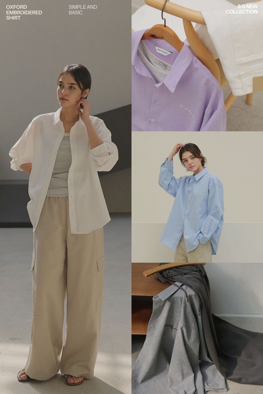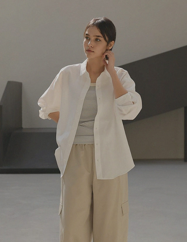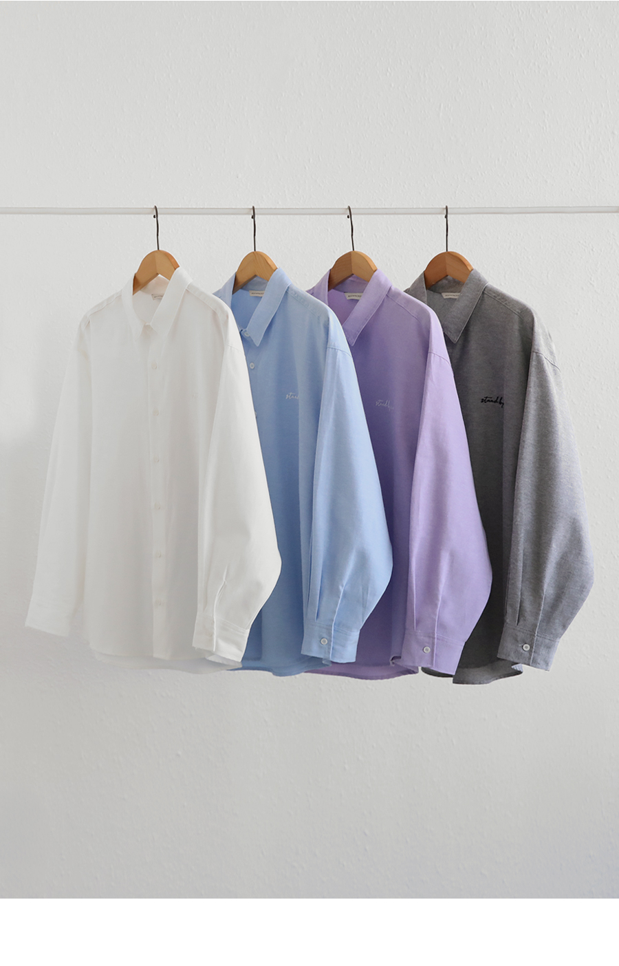 - 탄탄한 조직감의 옥스퍼드 소재로 깔끔한 실루엣을 연출하는 셔츠