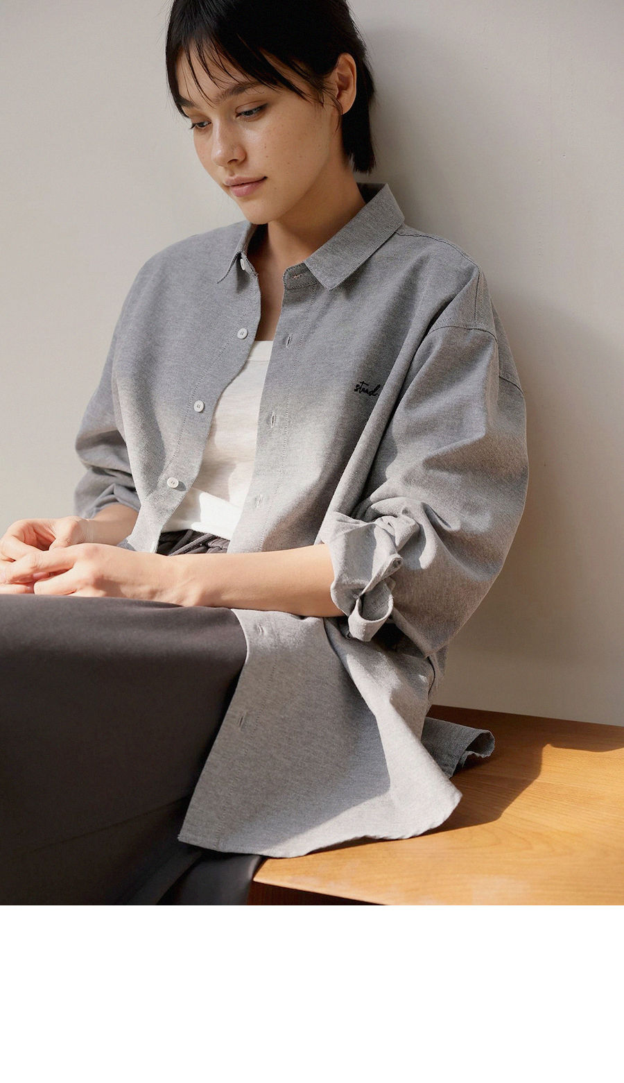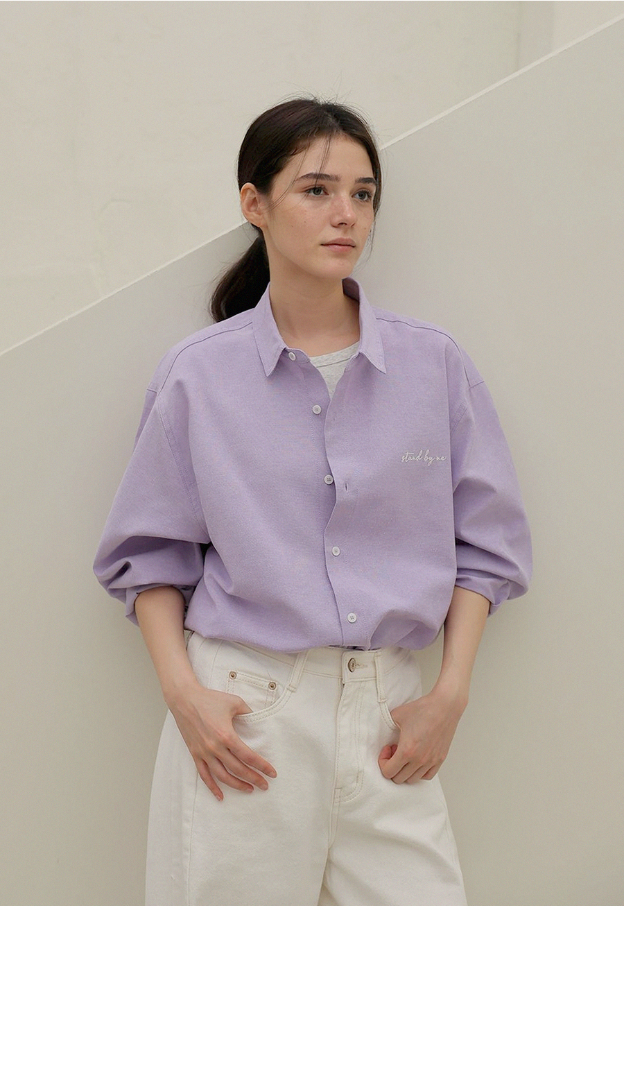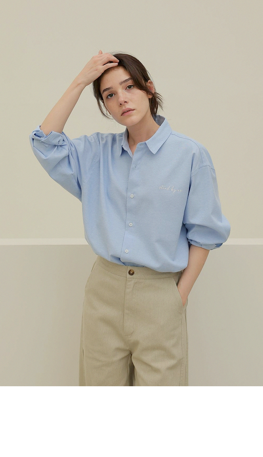 - 탄탄한 조직감의 옥스퍼드 소재로 깔끔한 실루엣을 연출하는 셔츠