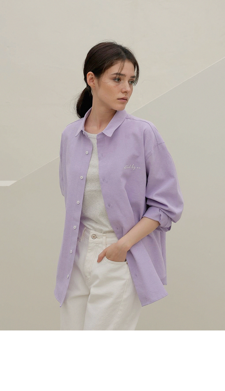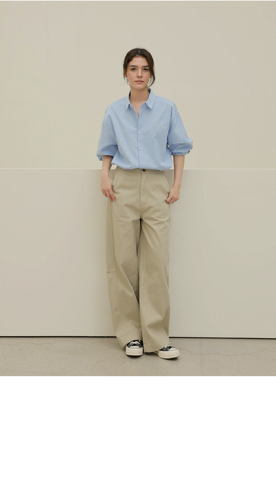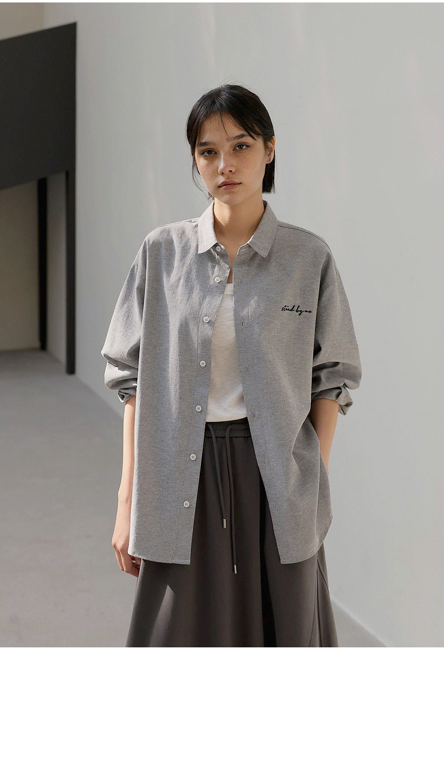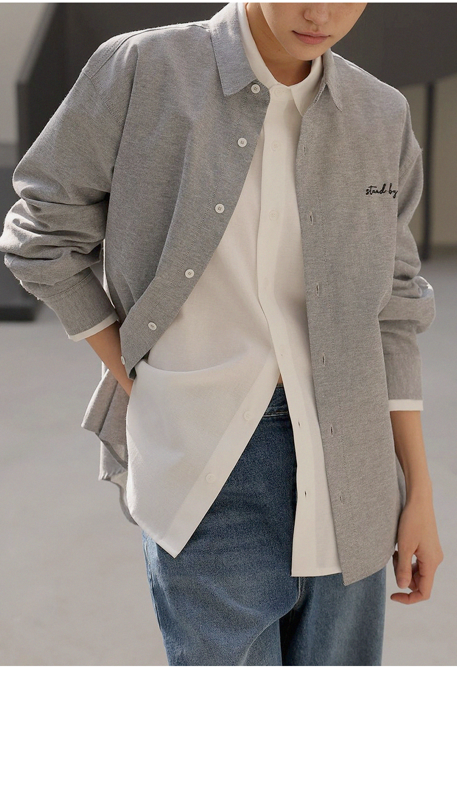 - 은은한 가슴 자수 디테일로 과하지 않은 포인트를 더한 디자인