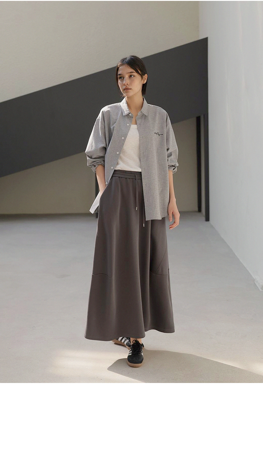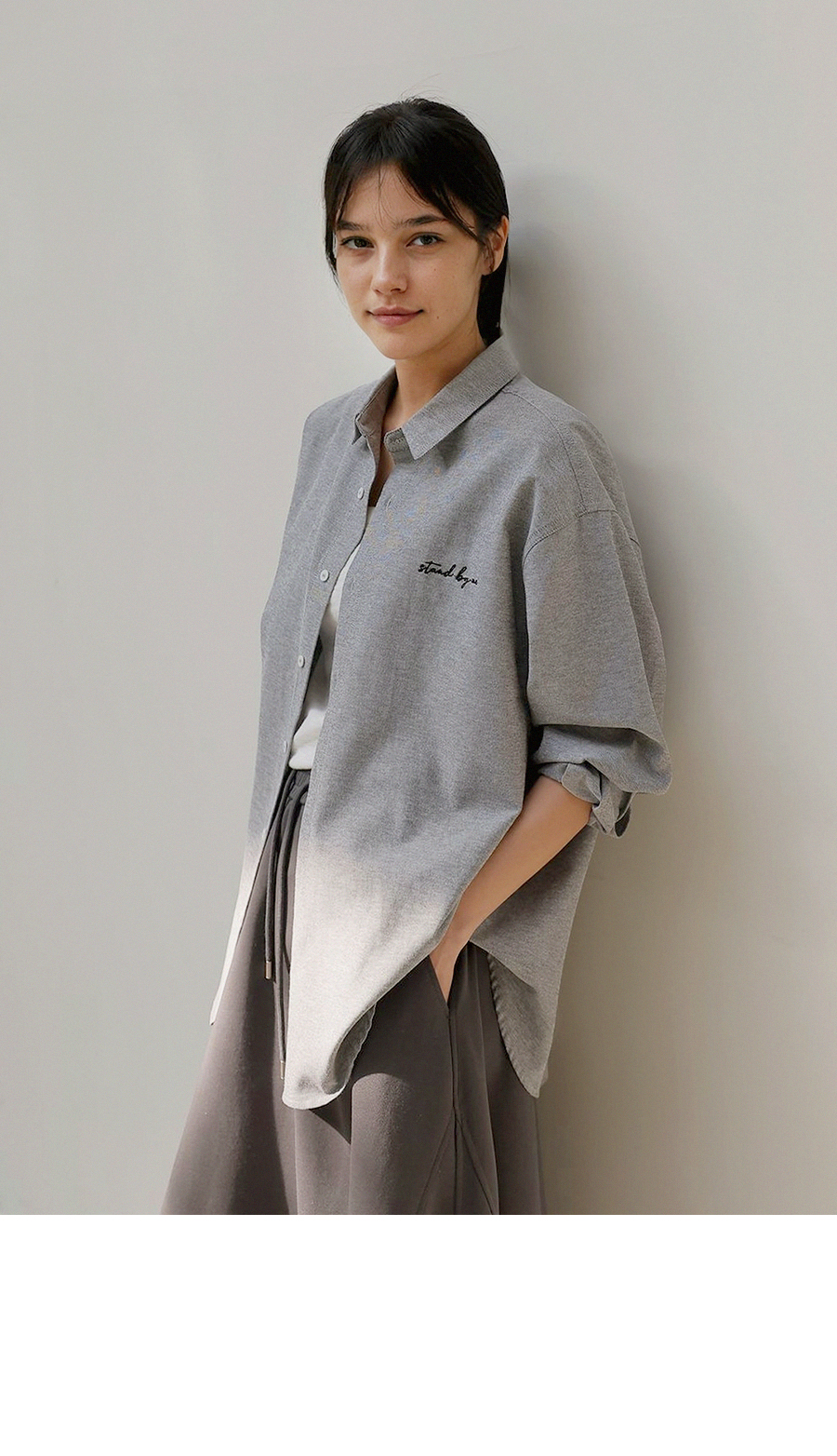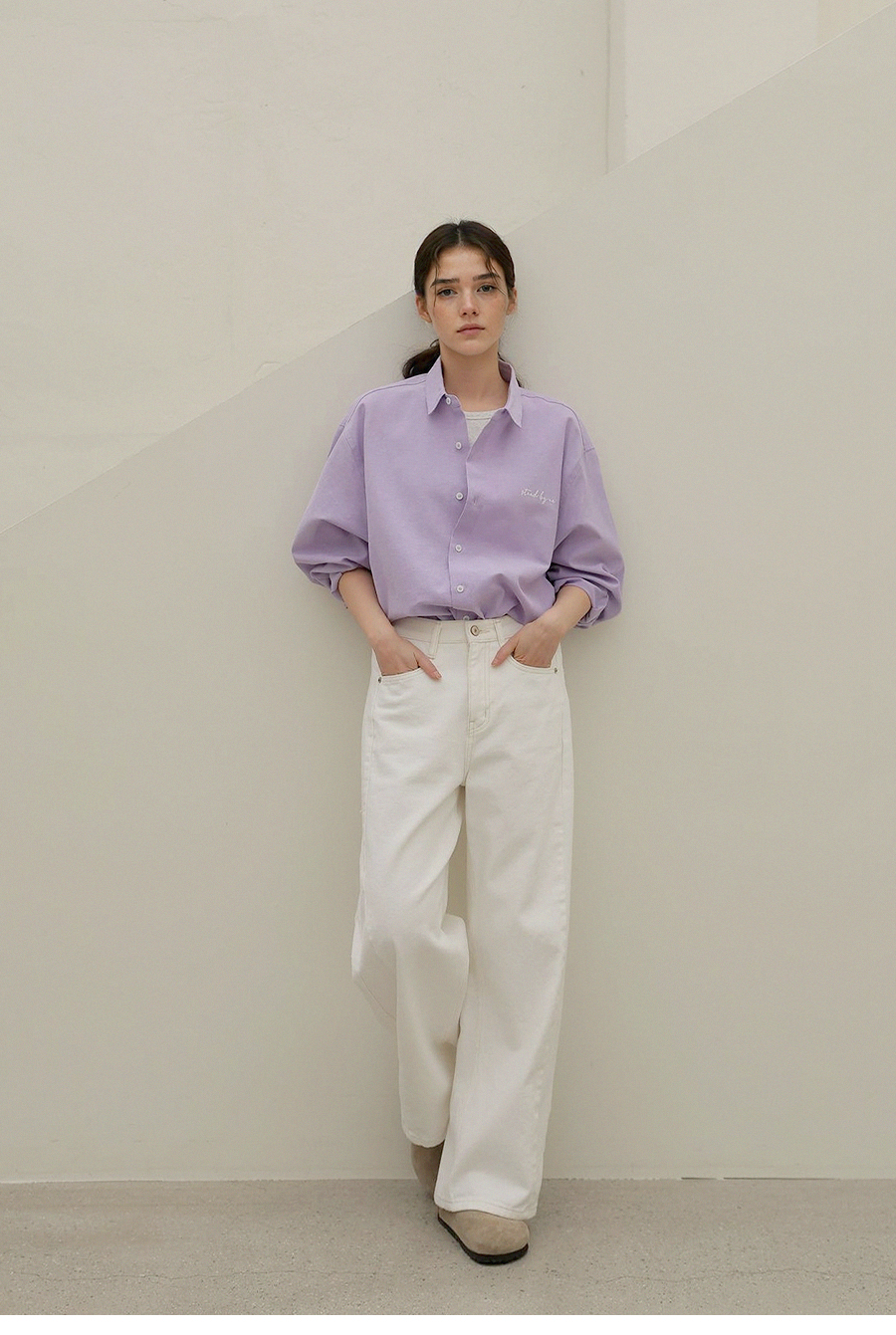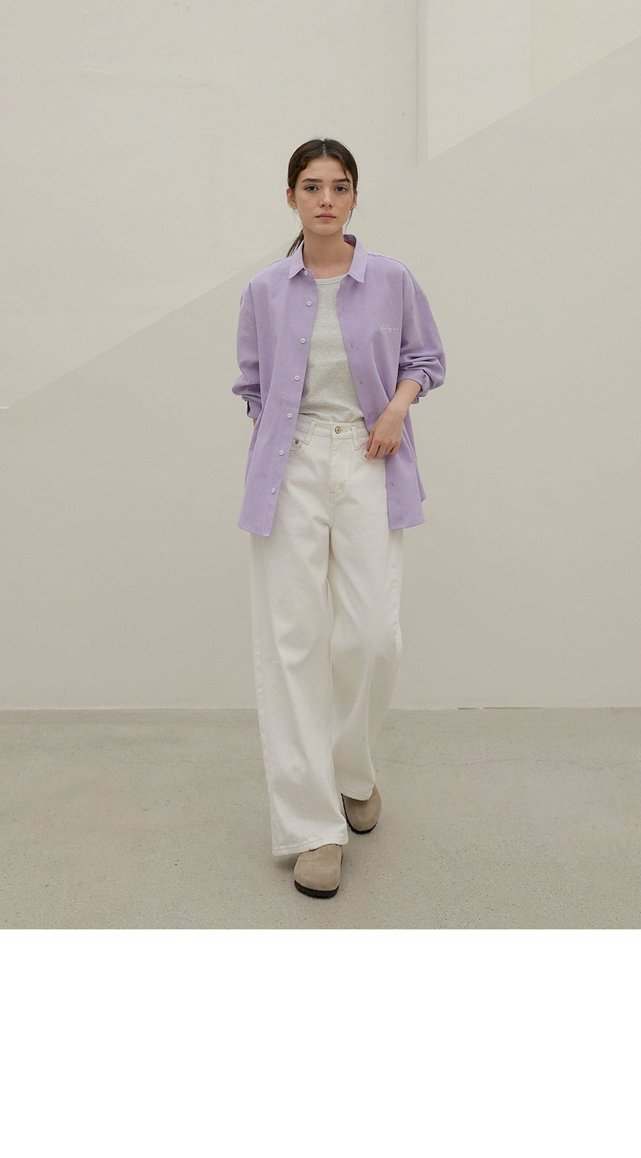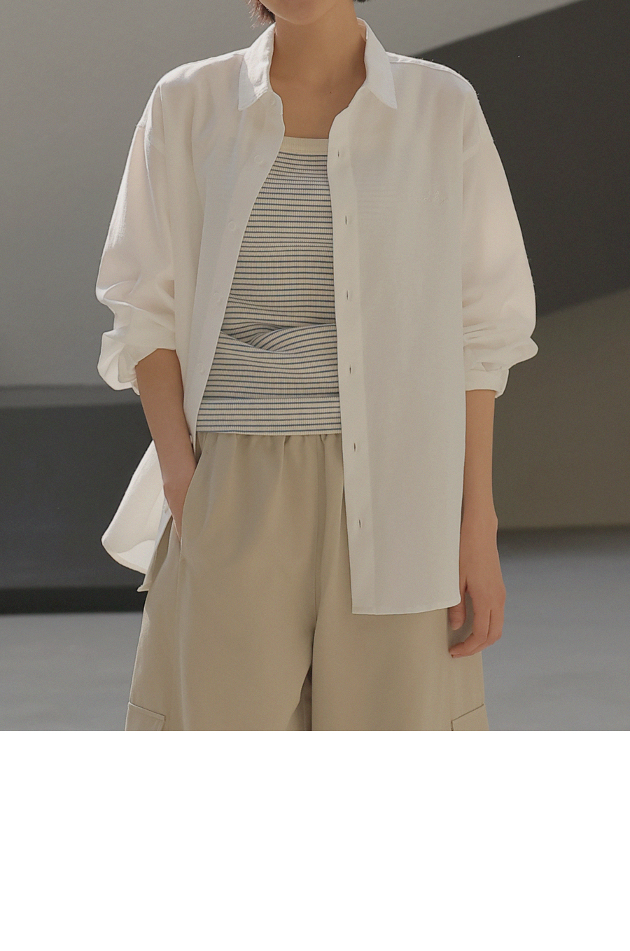 - 은은한 가슴 자수 디테일로 과하지 않은 포인트를 더한 디자인