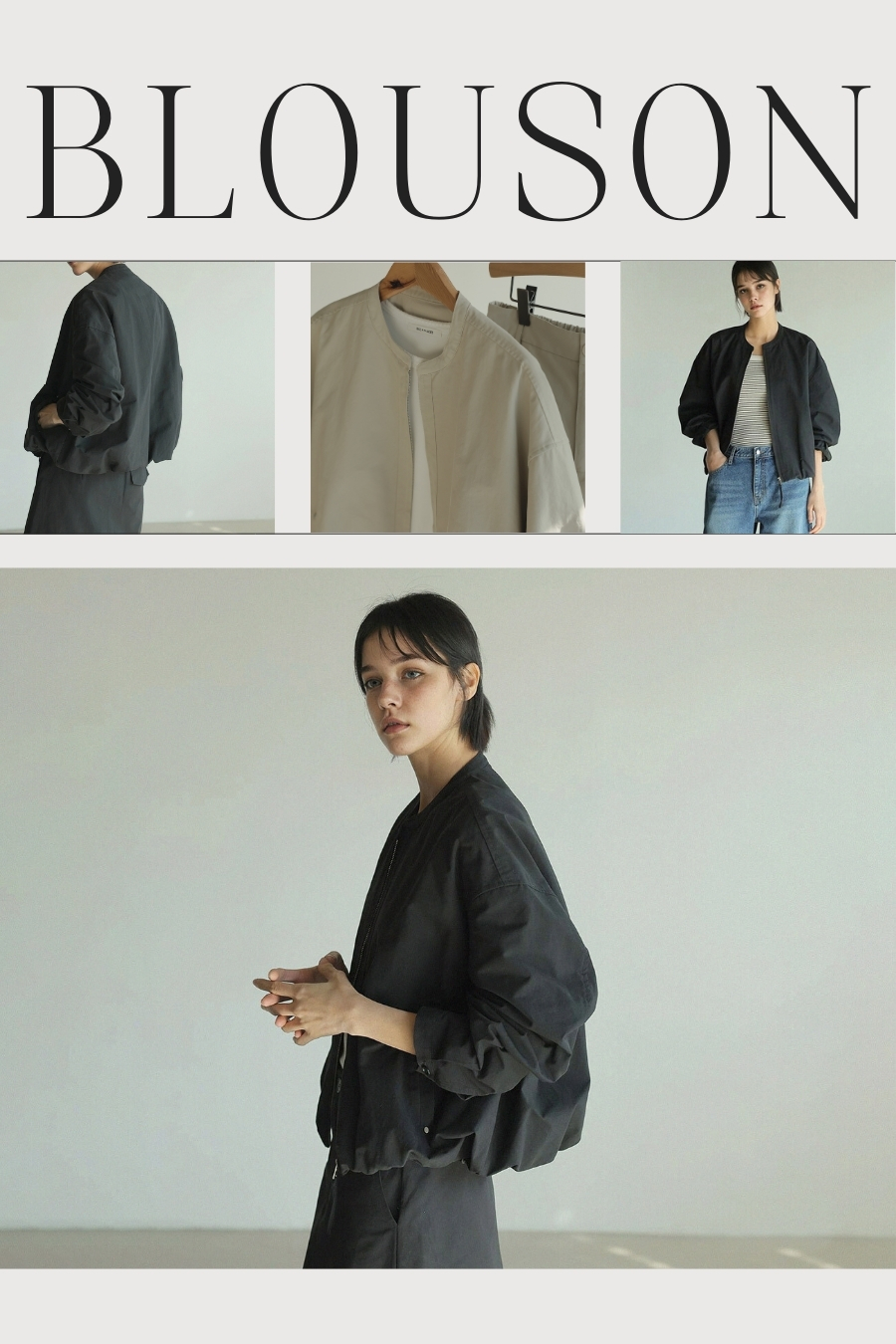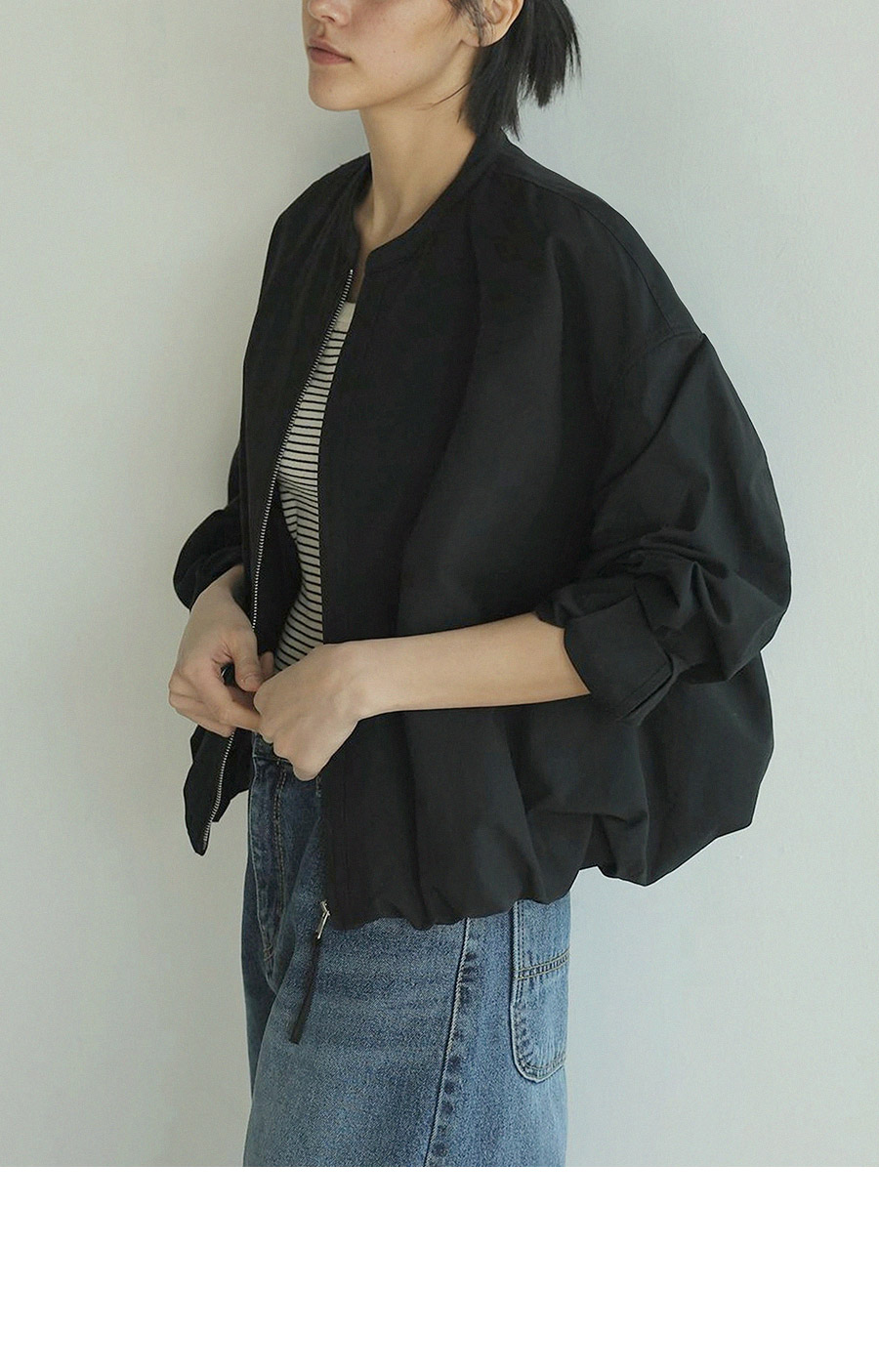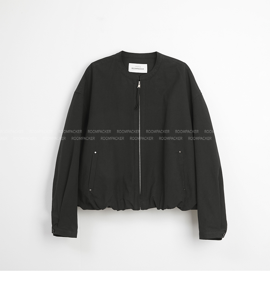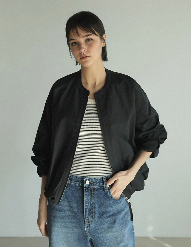 "라운드 넥 집업의 미니멀 밴딩 블루종"