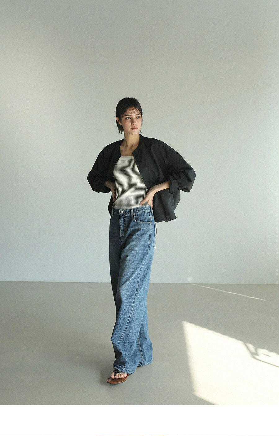 - 군더더기 없이 깔끔한 라운드 네크라인