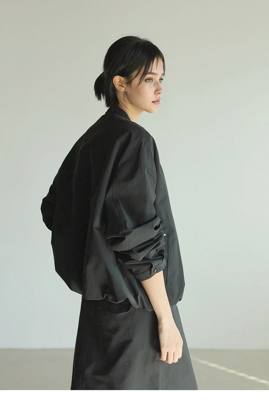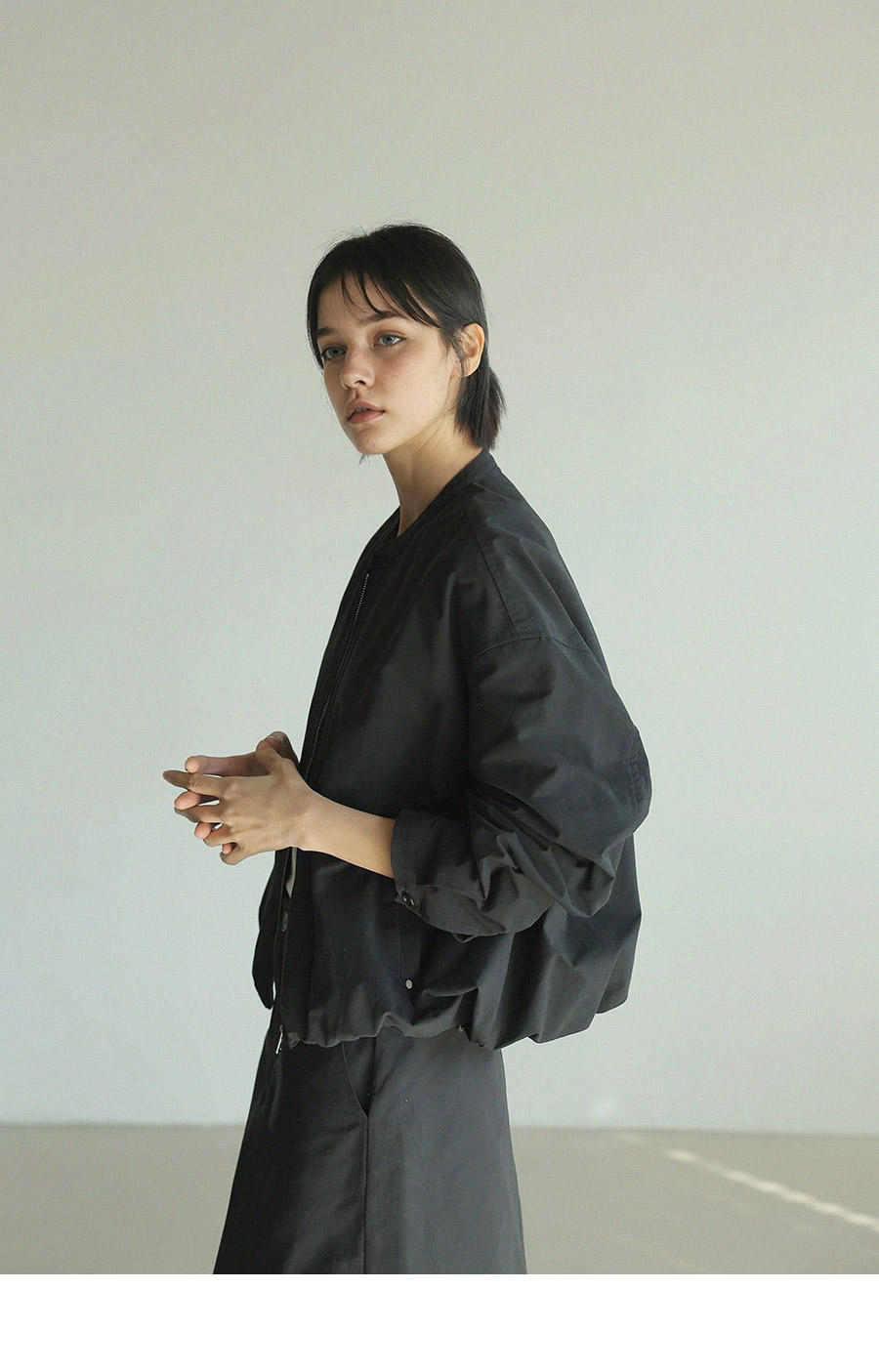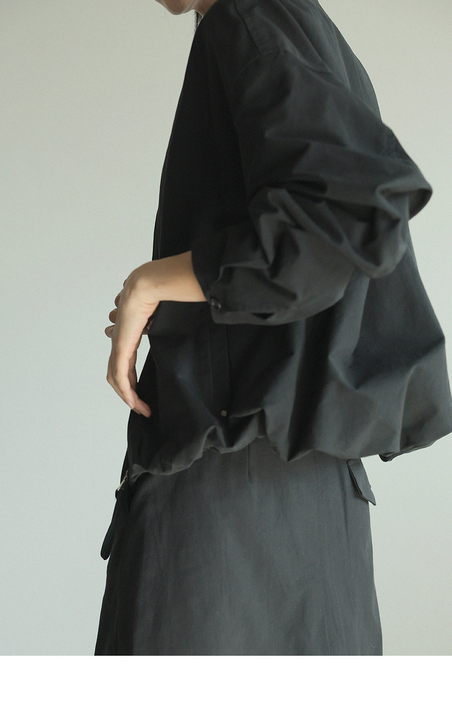 - 밑단 밴딩 디테일로 유니크한 실루엣 연출