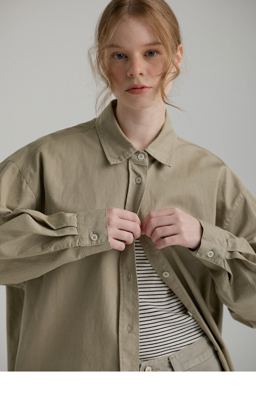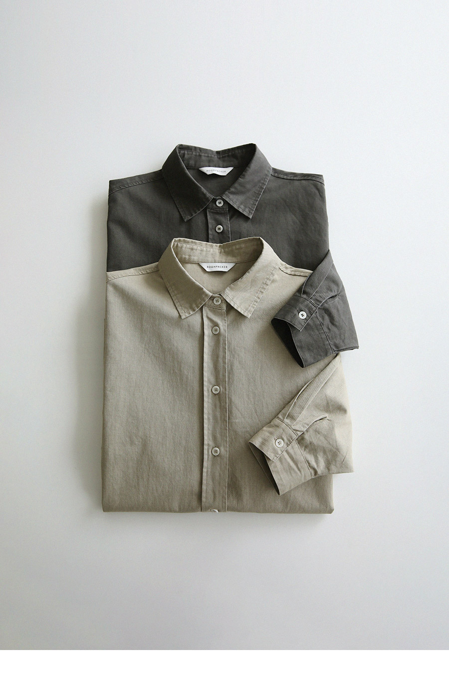 - 피그먼트 염색 가공으로 내추럴한 컬러감이 돋보이는 셔츠