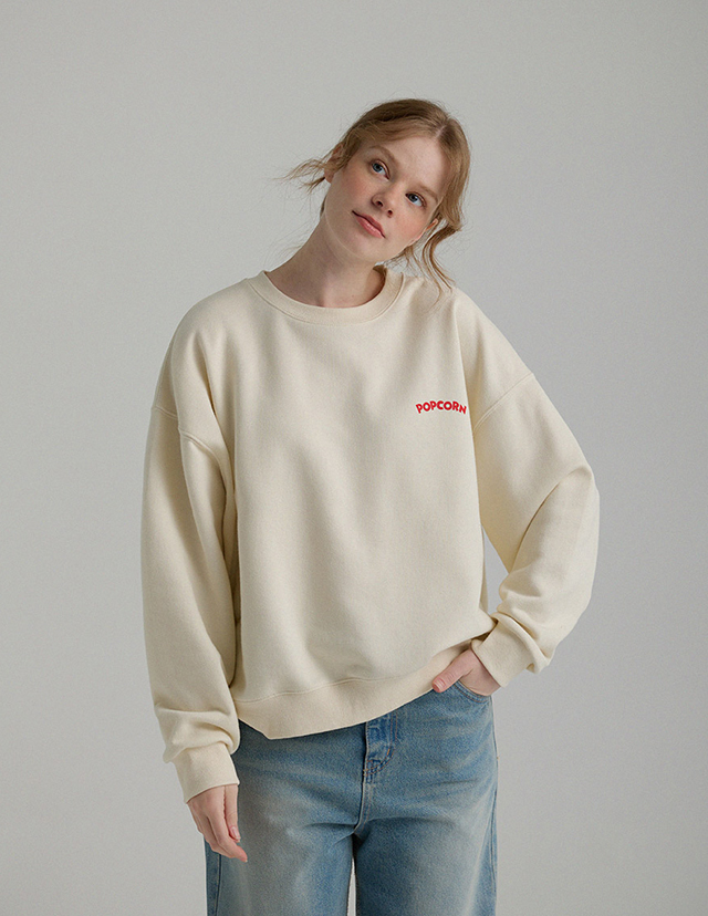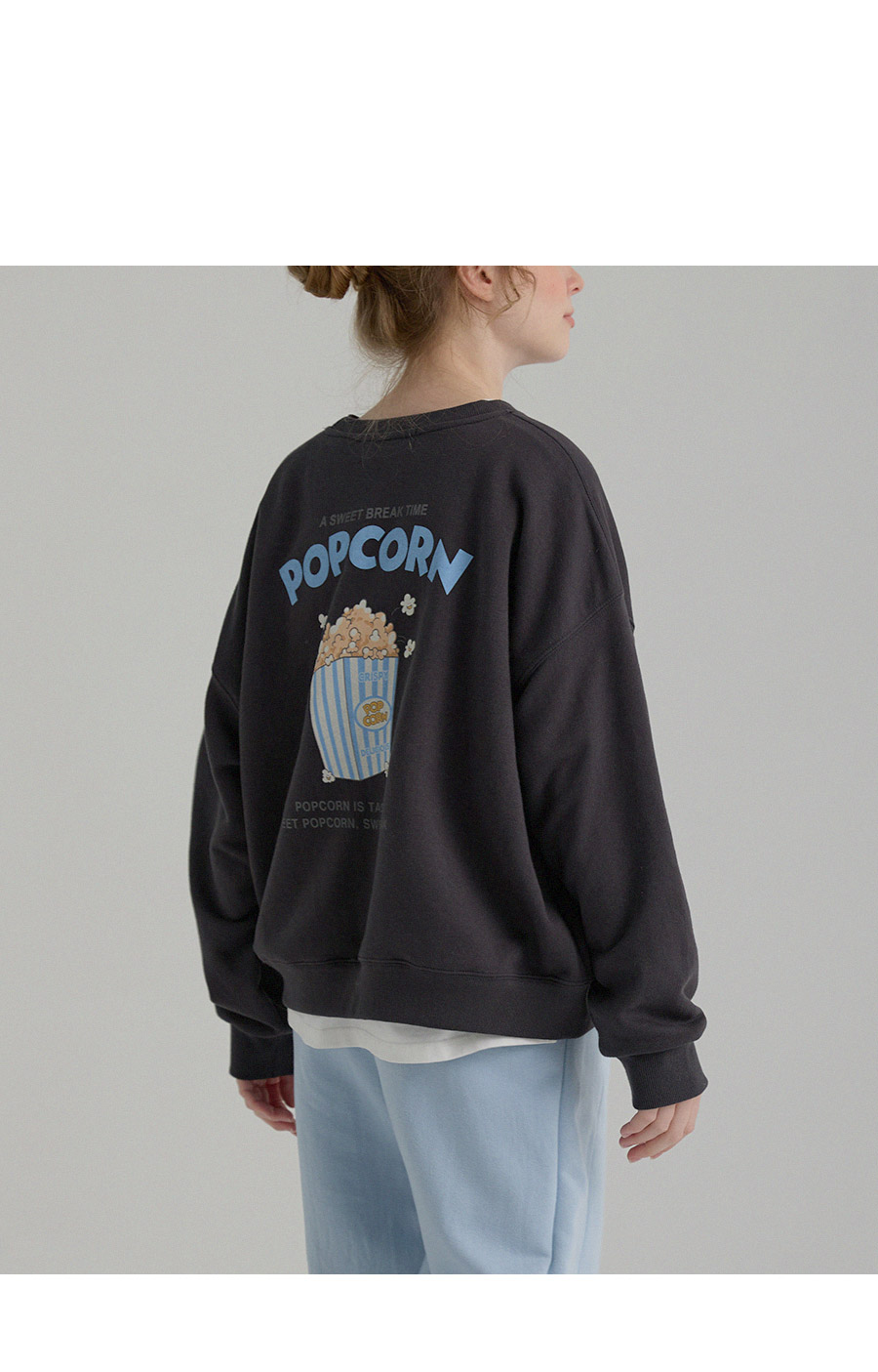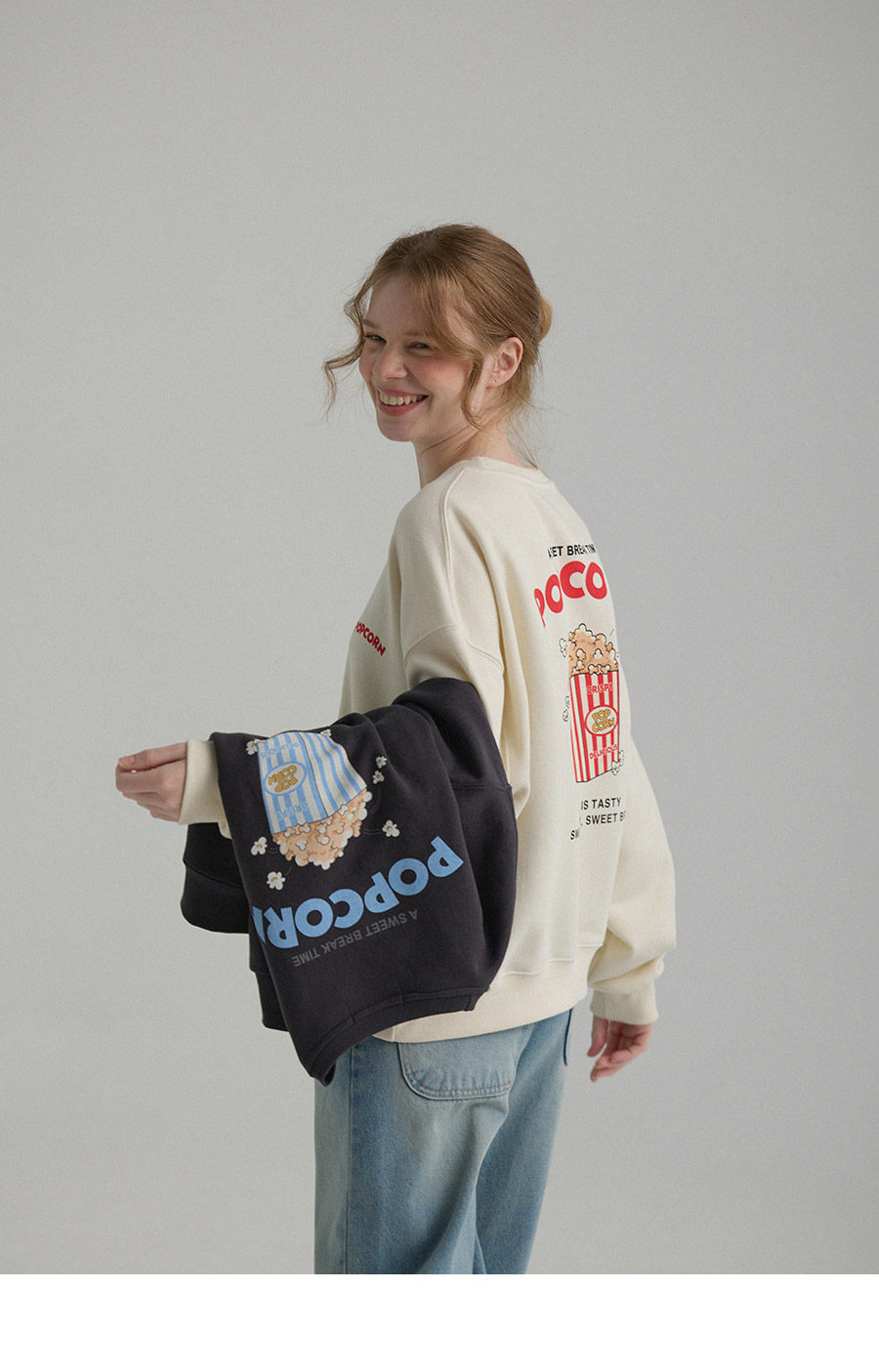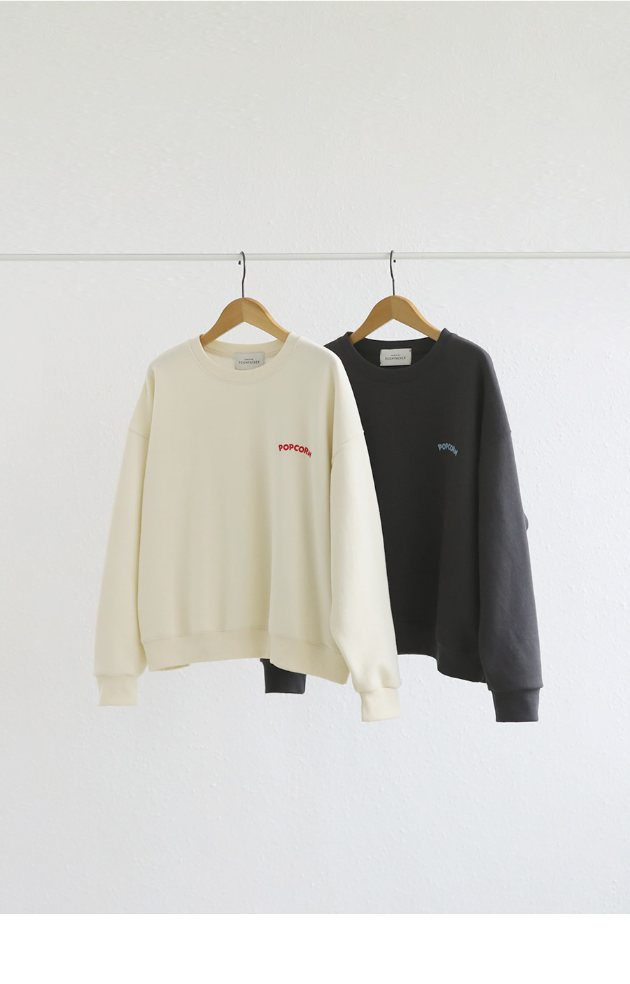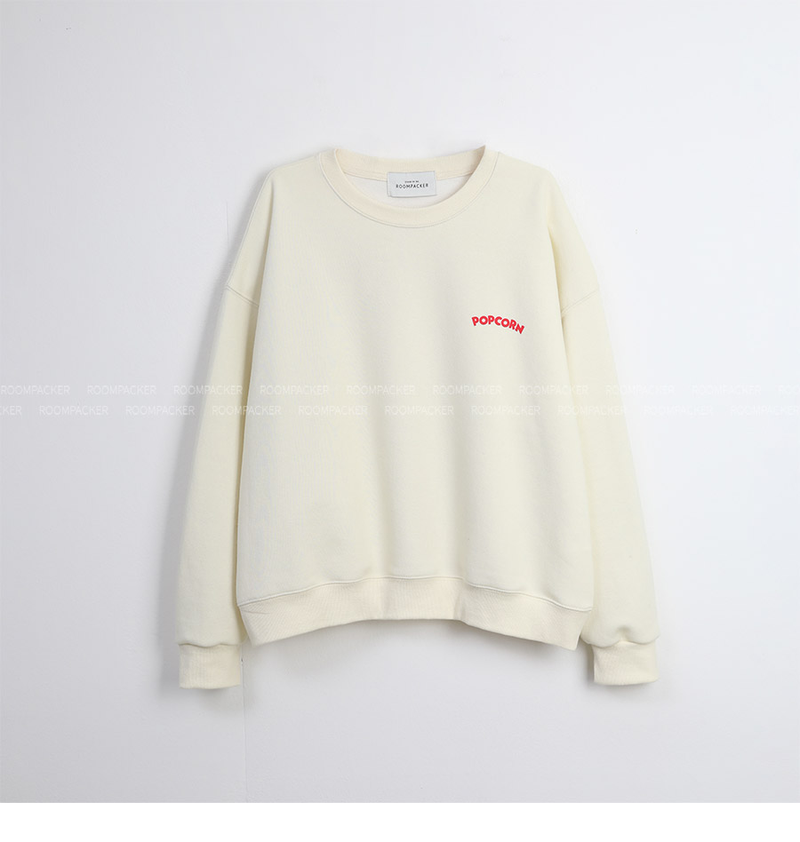 - 앞면은 미니멀하게 연출하고 뒷면에 팝콘그래픽으로 포인트를 준 맨투맨