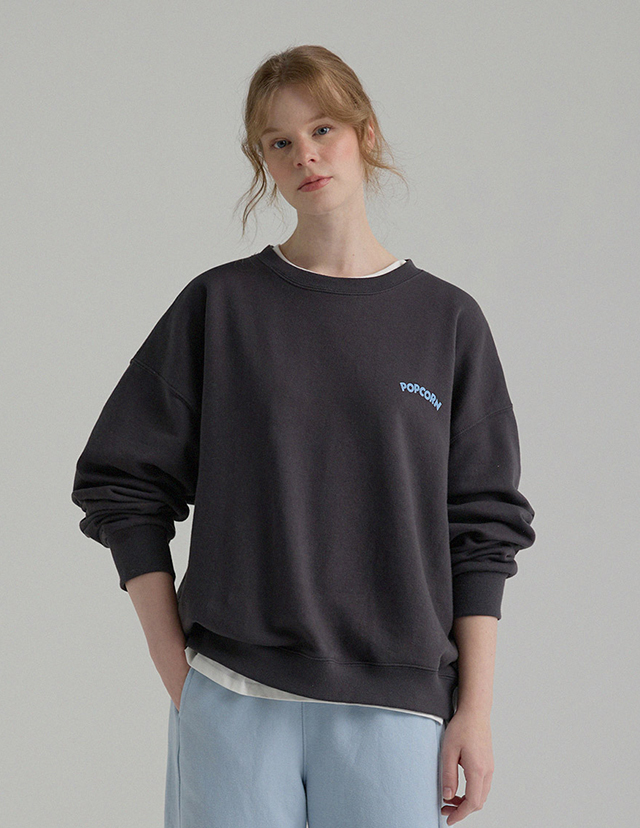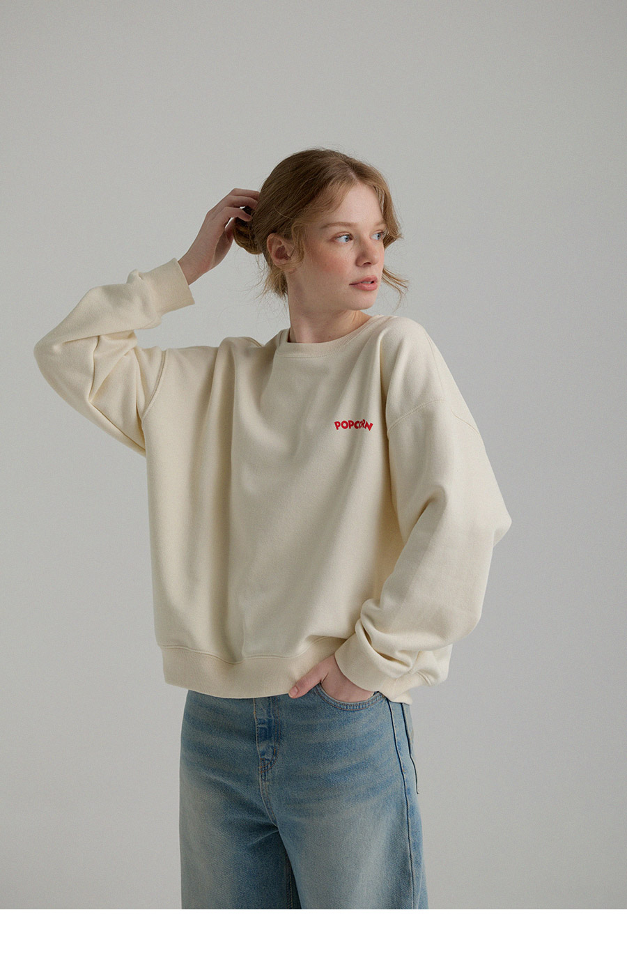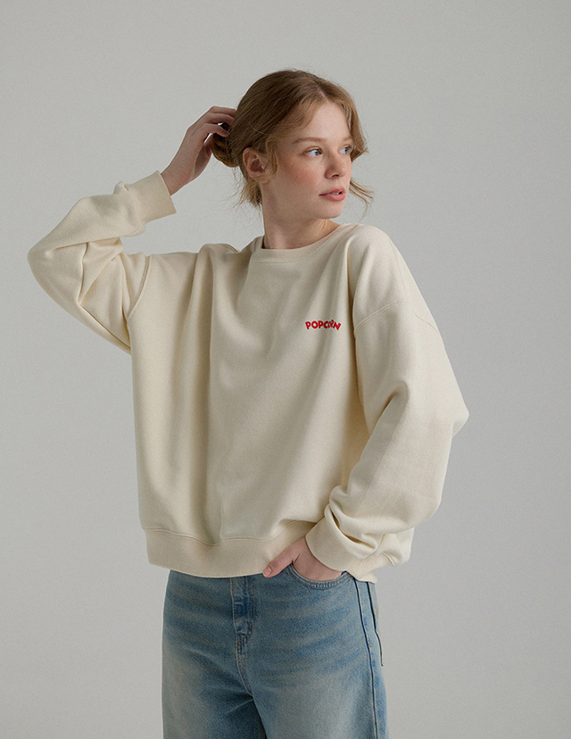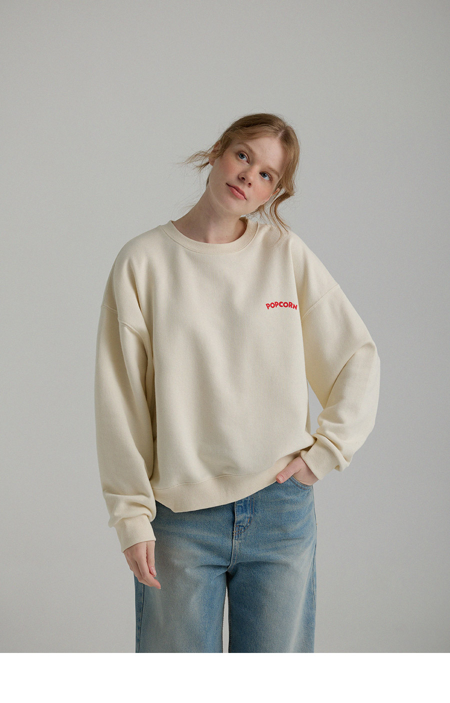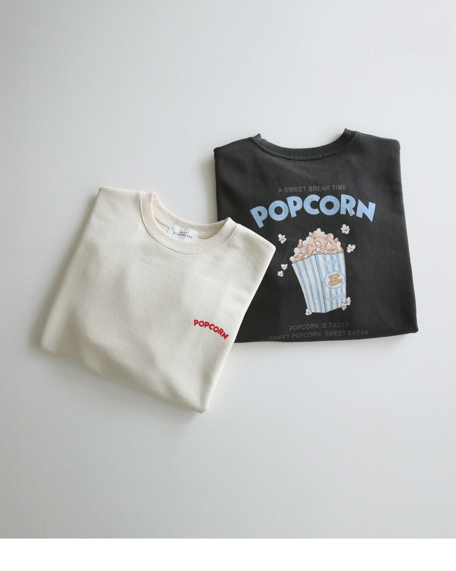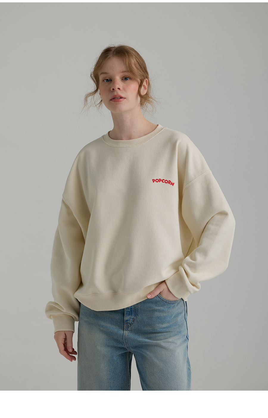 - 앞면은 미니멀하게 연출하고 뒷면에 팝콘그래픽으로 포인트를 준 맨투맨
