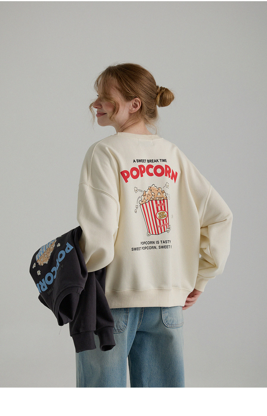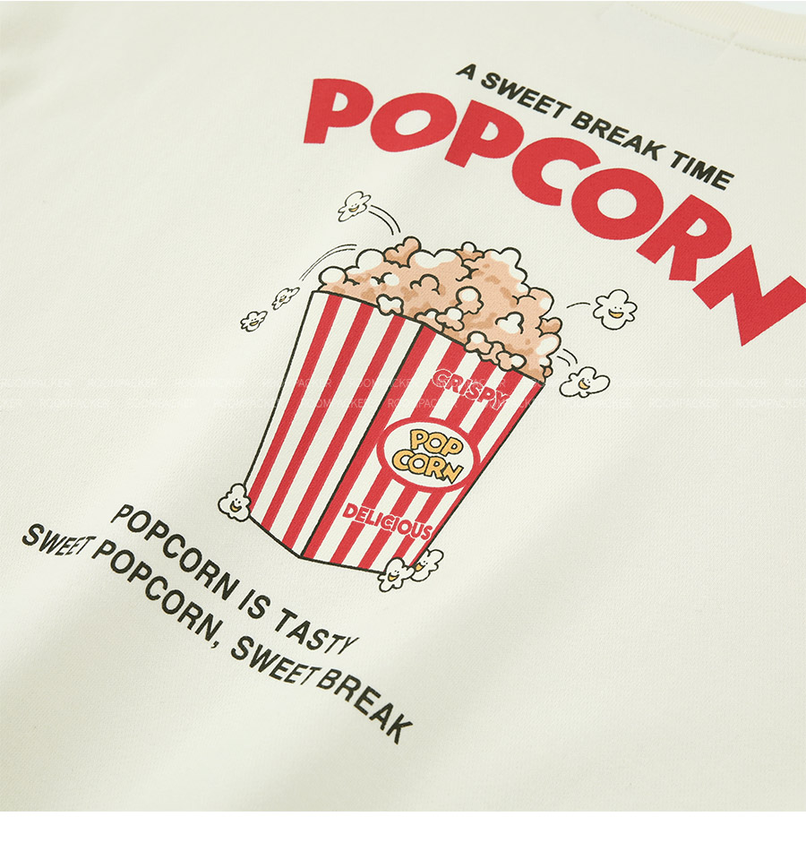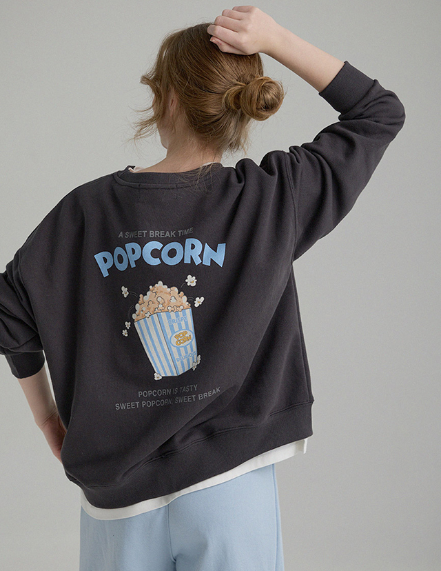 - 위트 있는 팝콘 그래픽이 캐주얼한 무드를 더해 뒷모습까지 스타일 완성