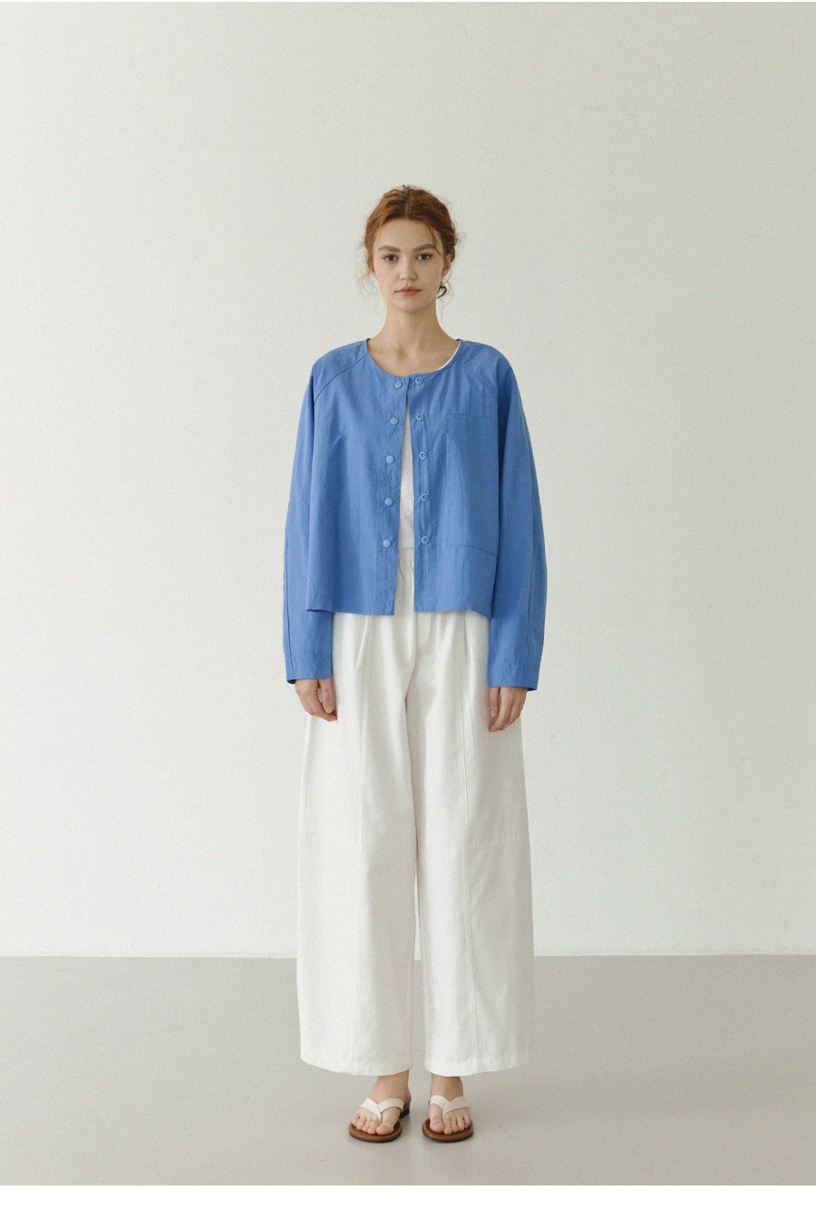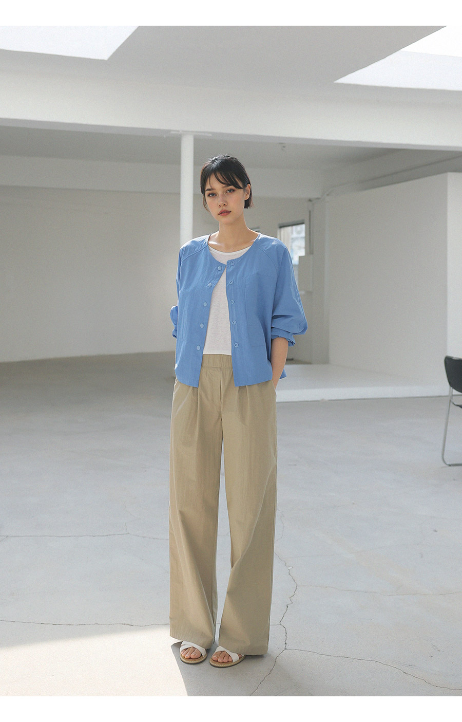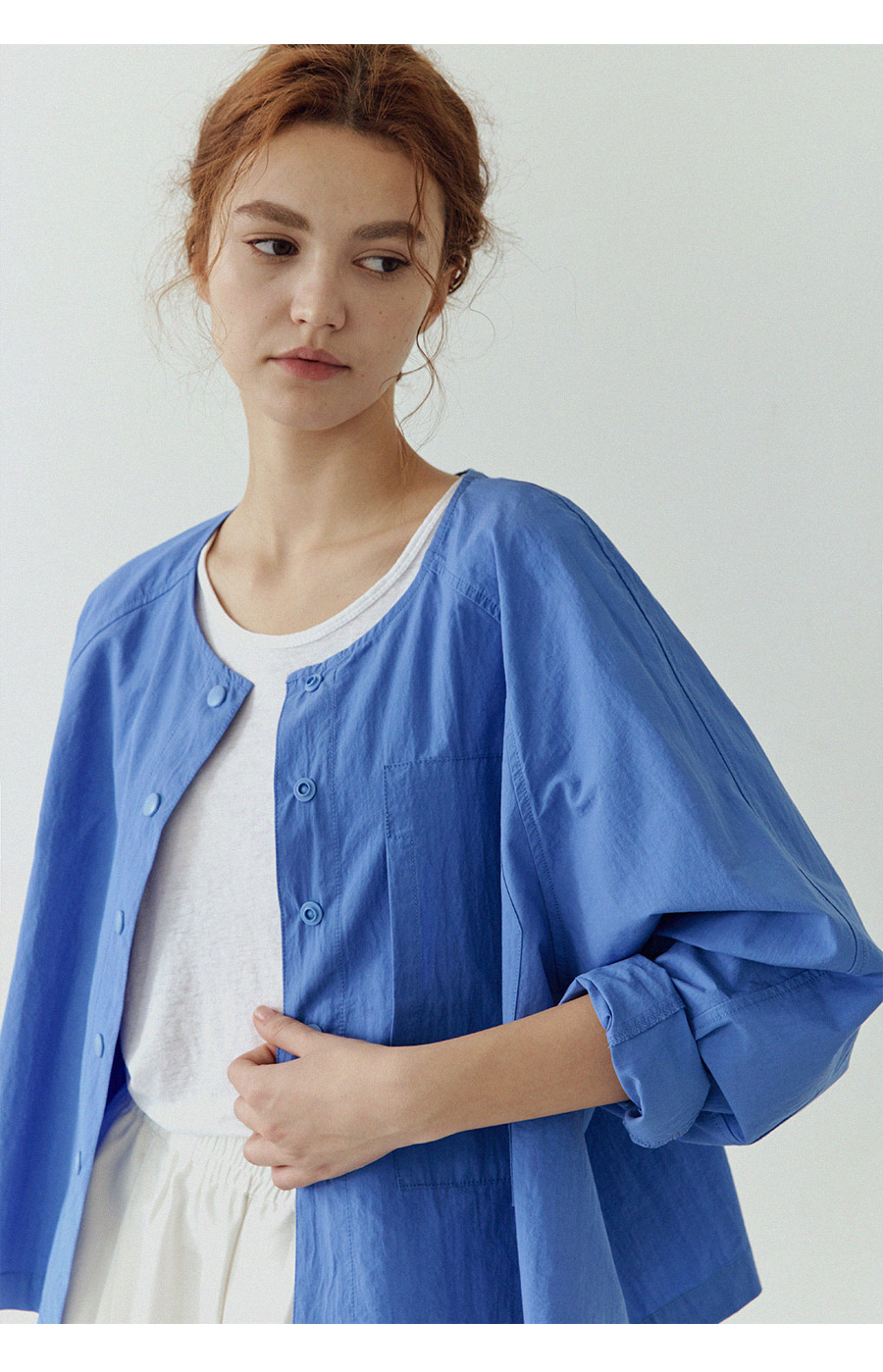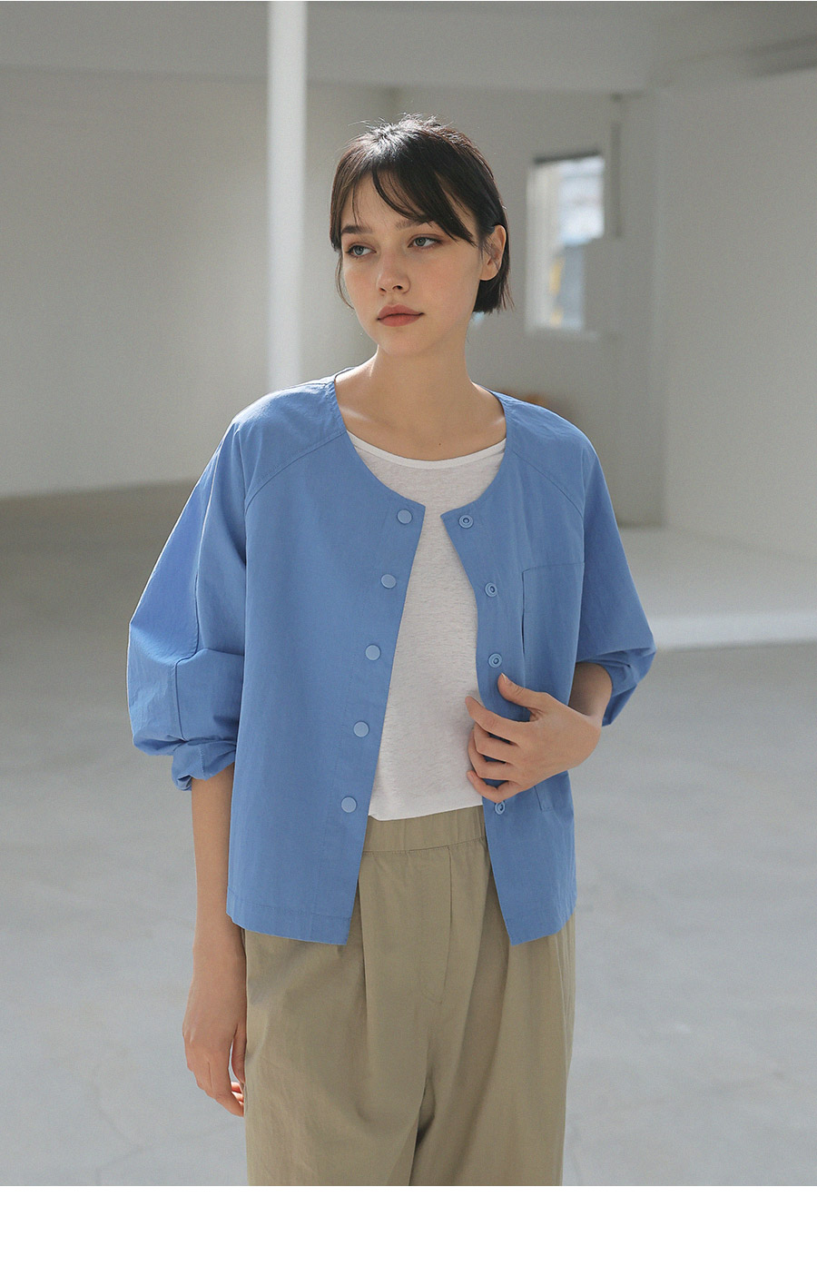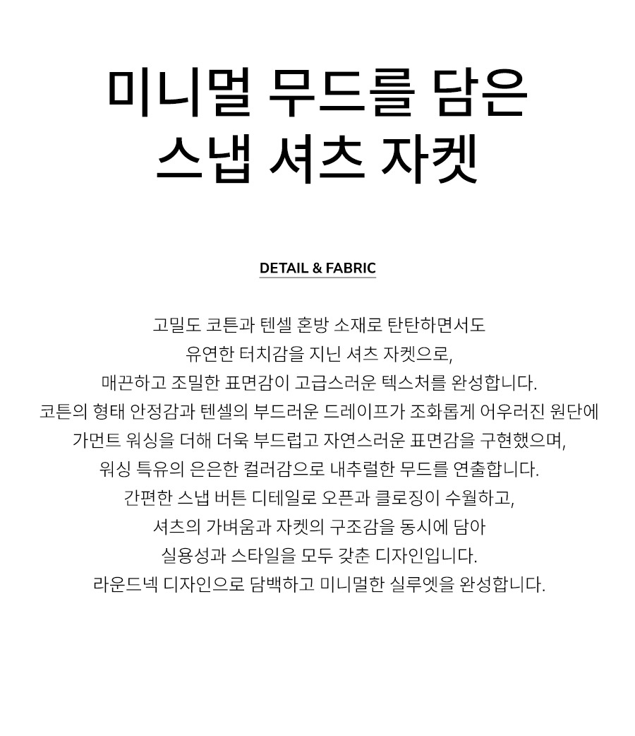 "미니멀 무드를 담은 스냅 셔츠 자켓"