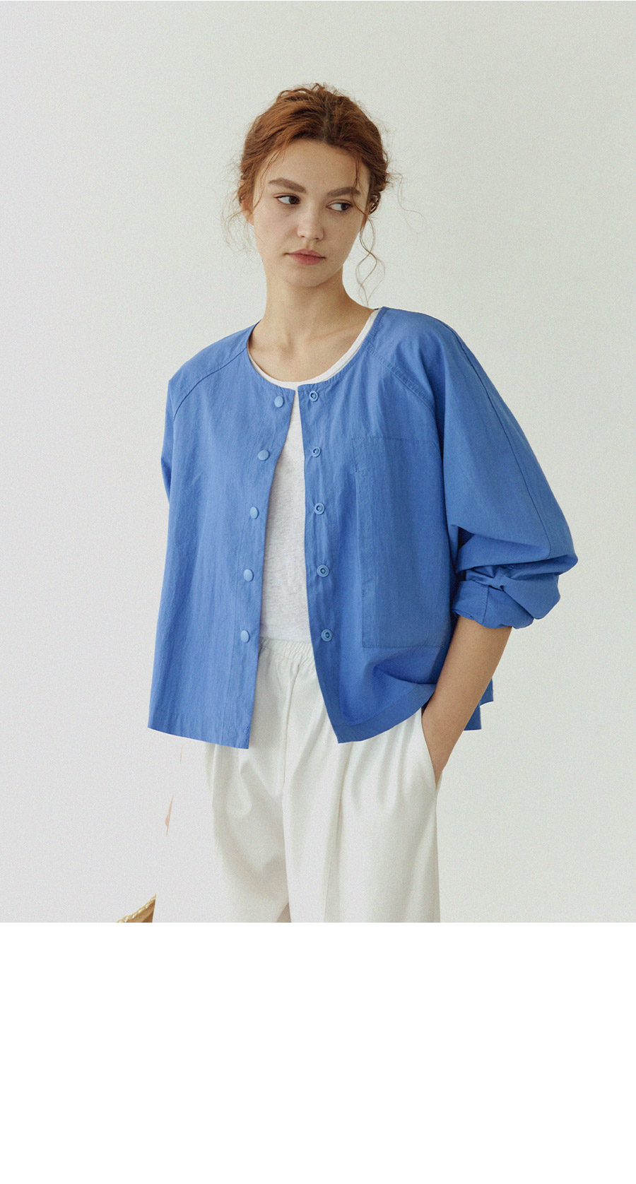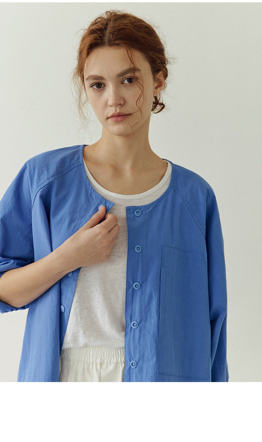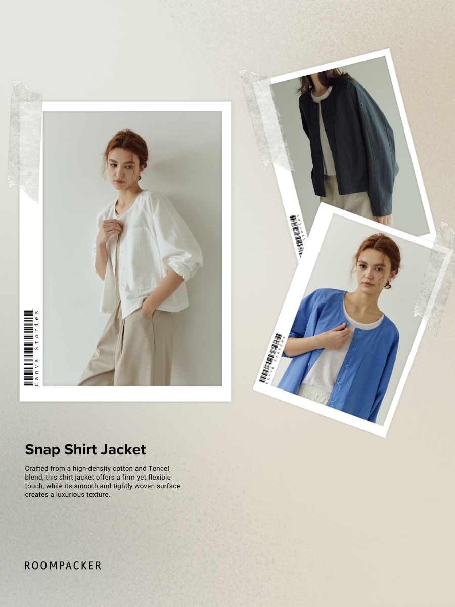 - 셔츠의 가벼움과 자켓의 구조감을 동시에 담은 디자인