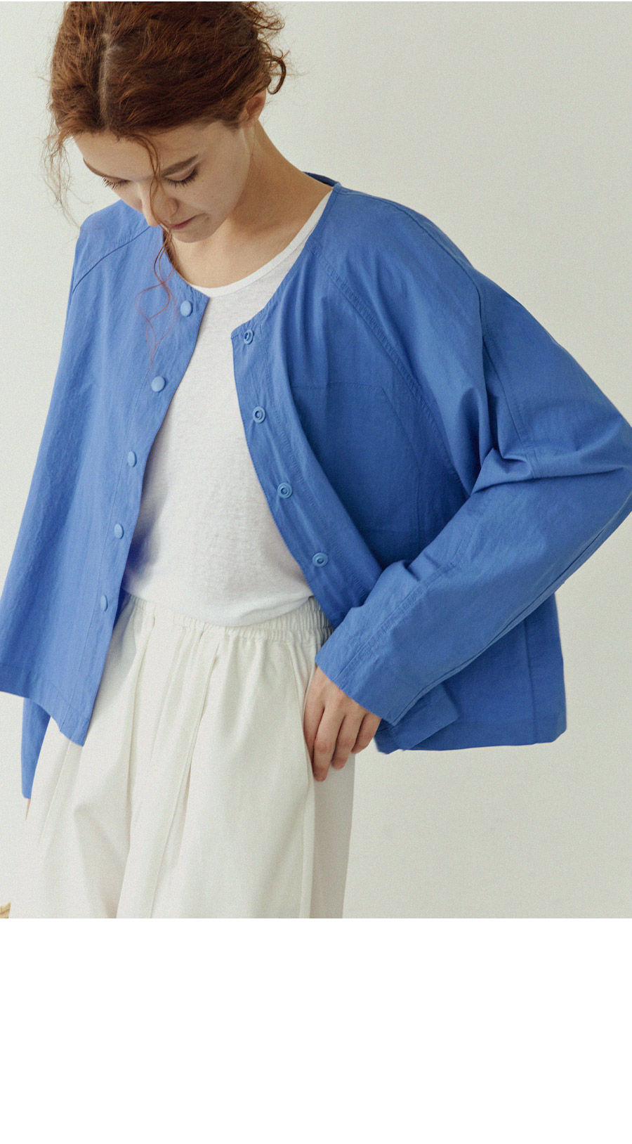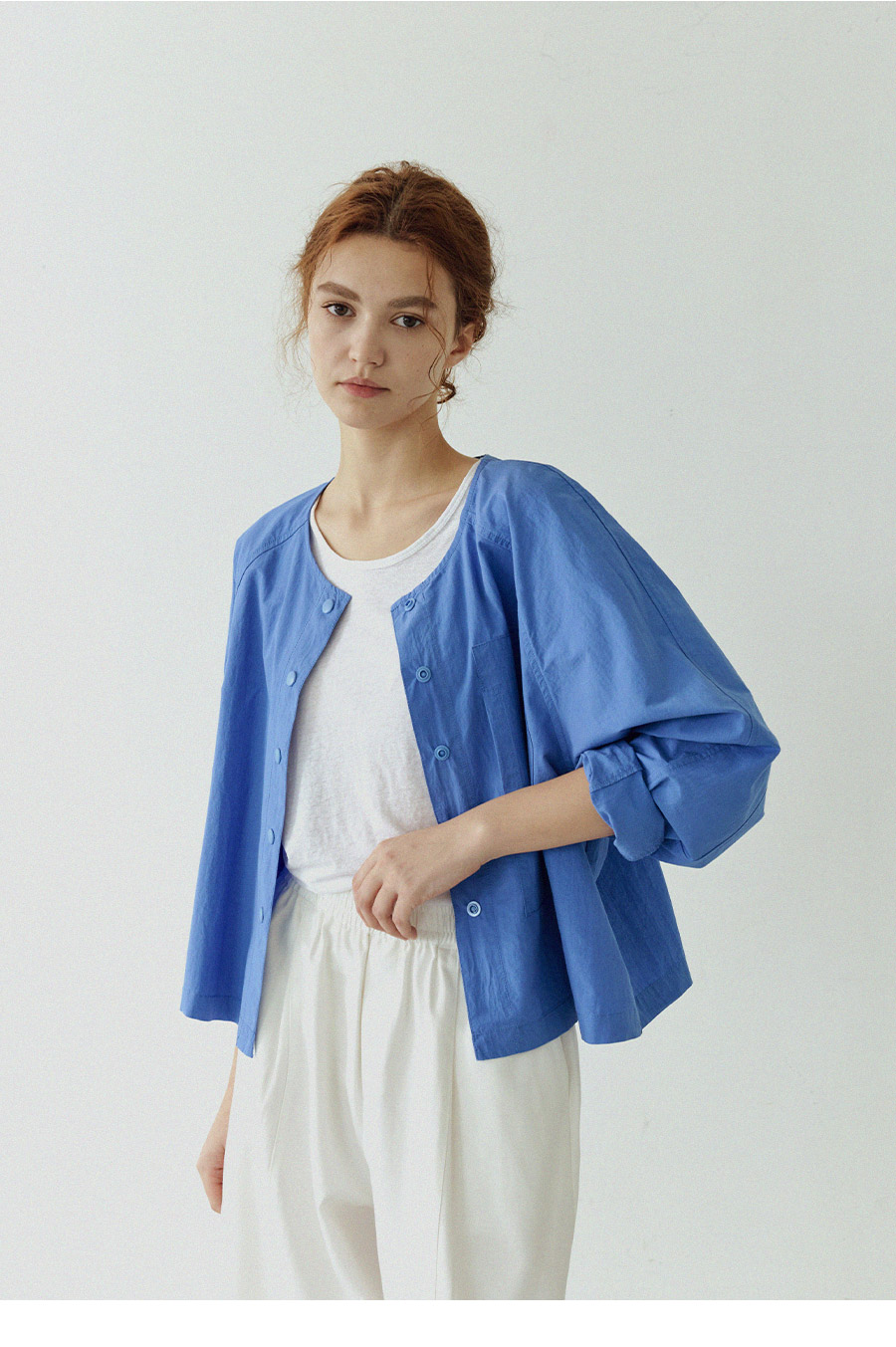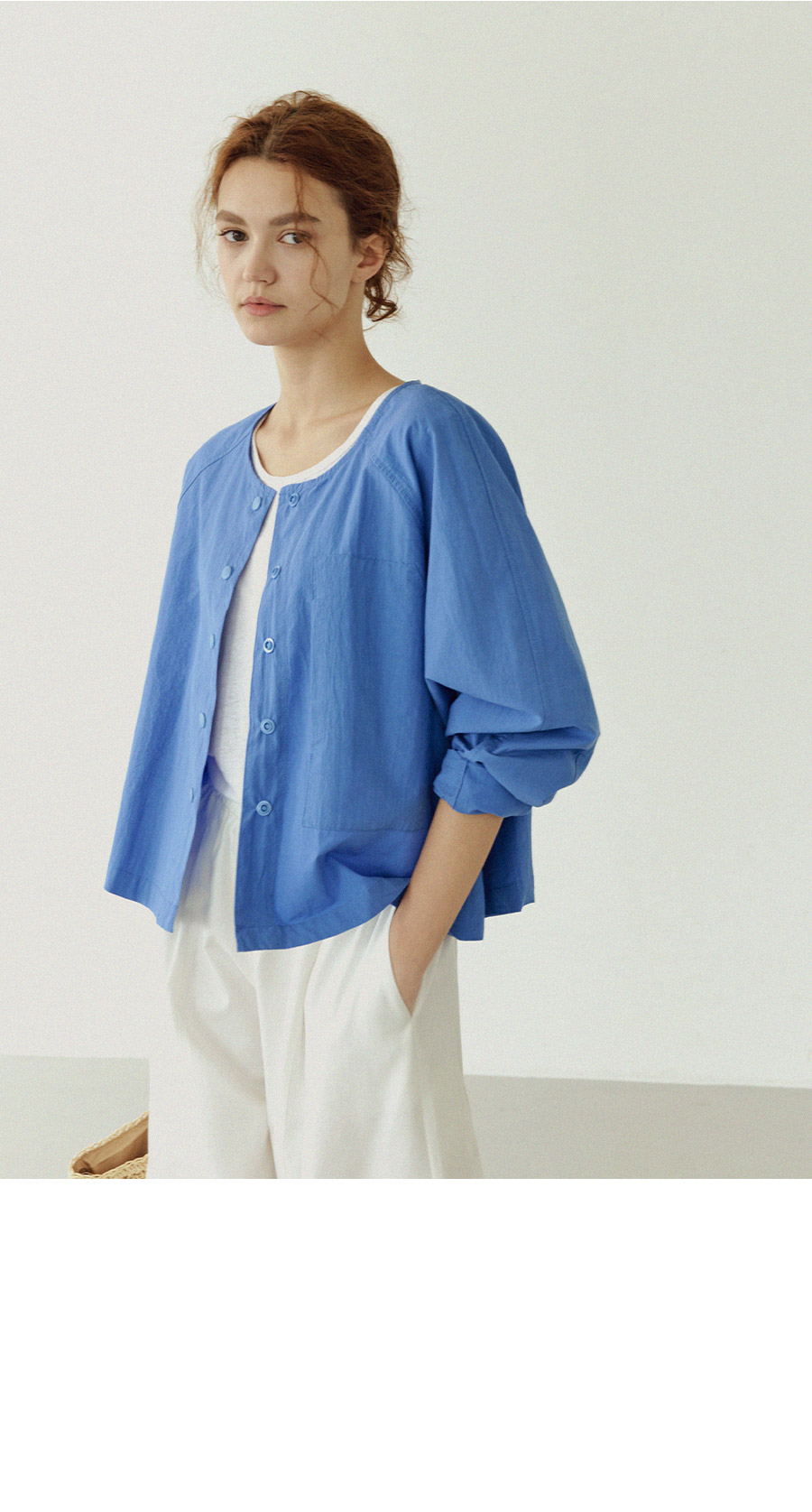 - 셔츠의 가벼움과 자켓의 구조감을 동시에 담은 디자인