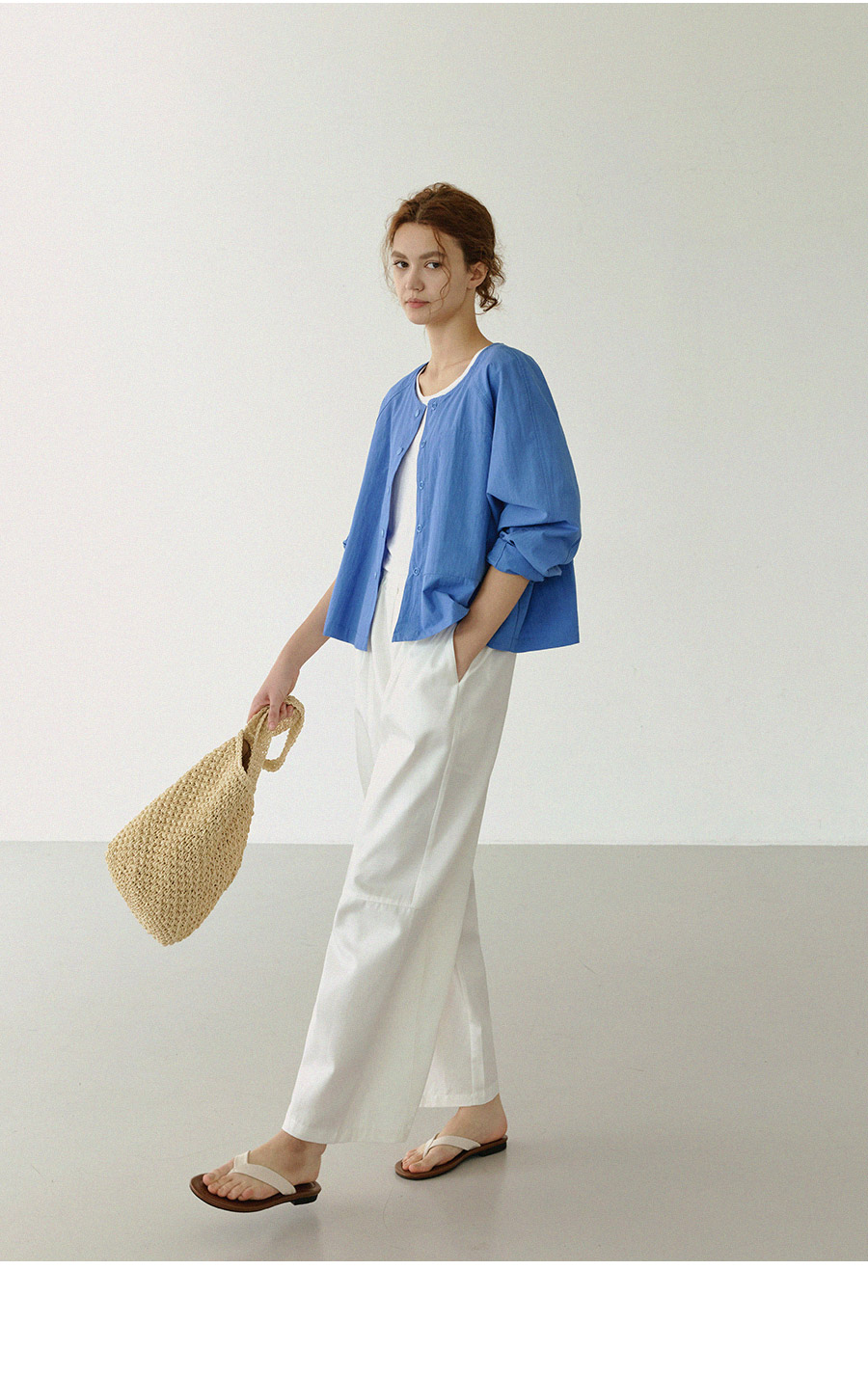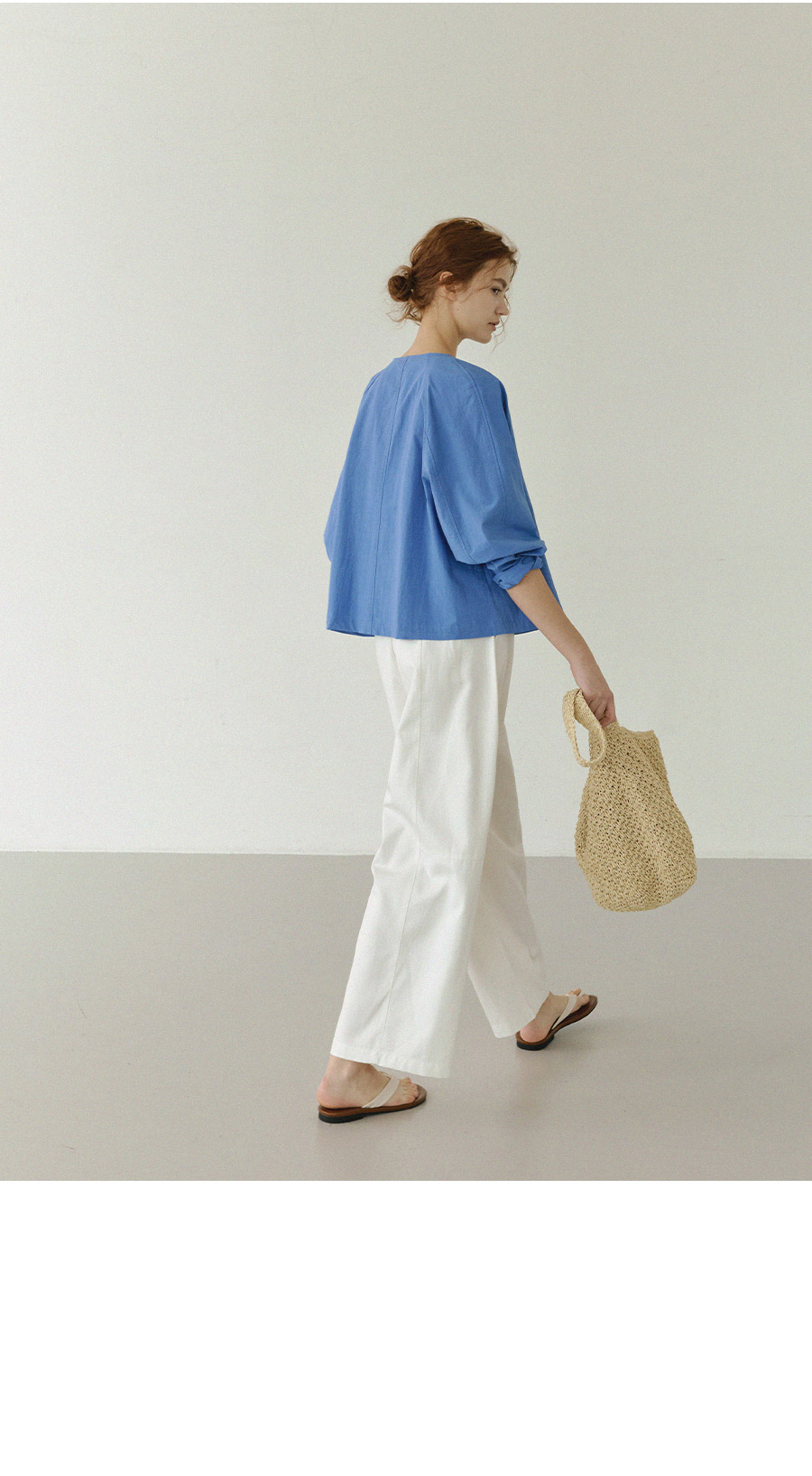 - 라운드넥 디자인으로 담백하고 미니멀한 실루엣 연출