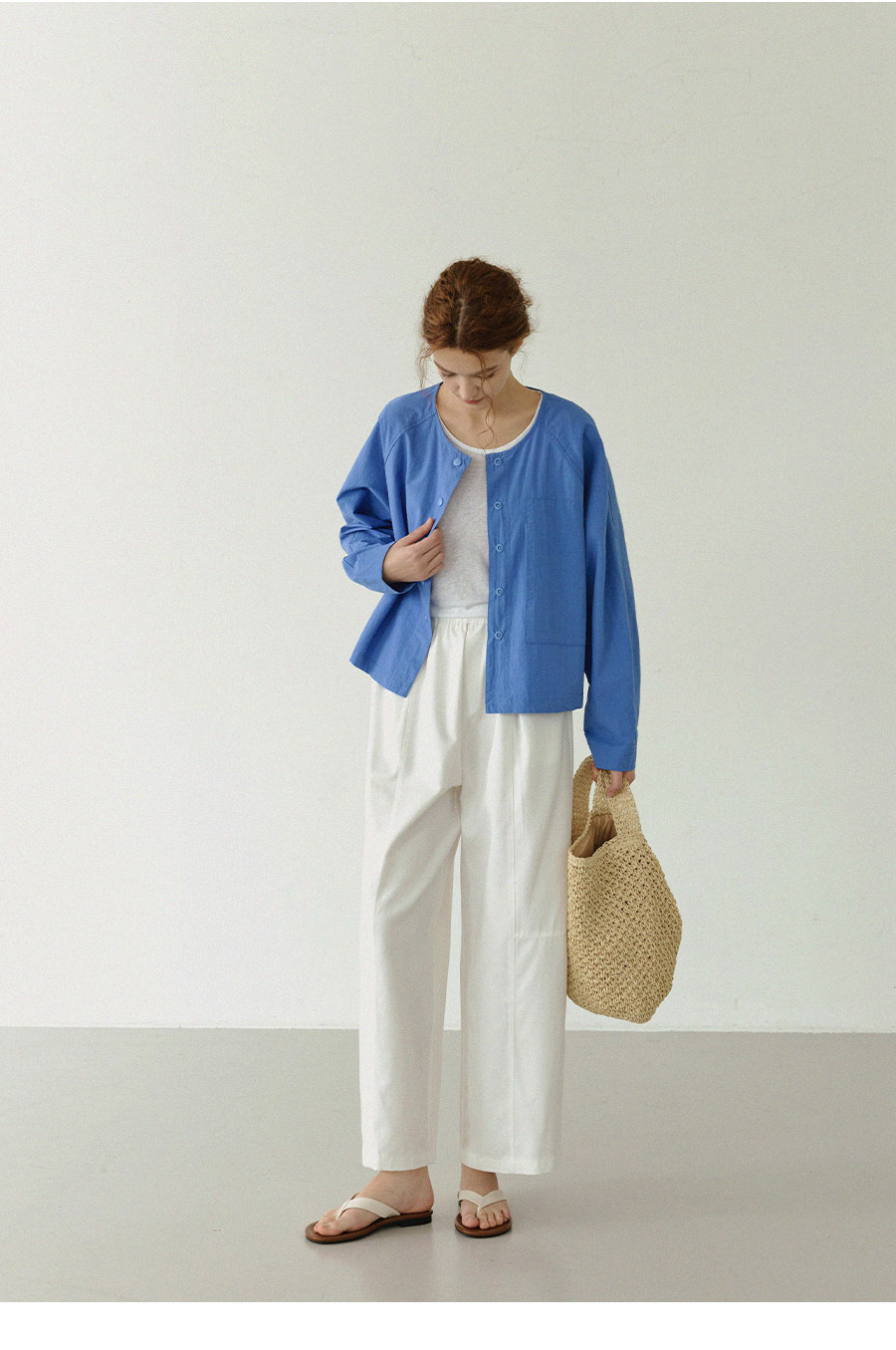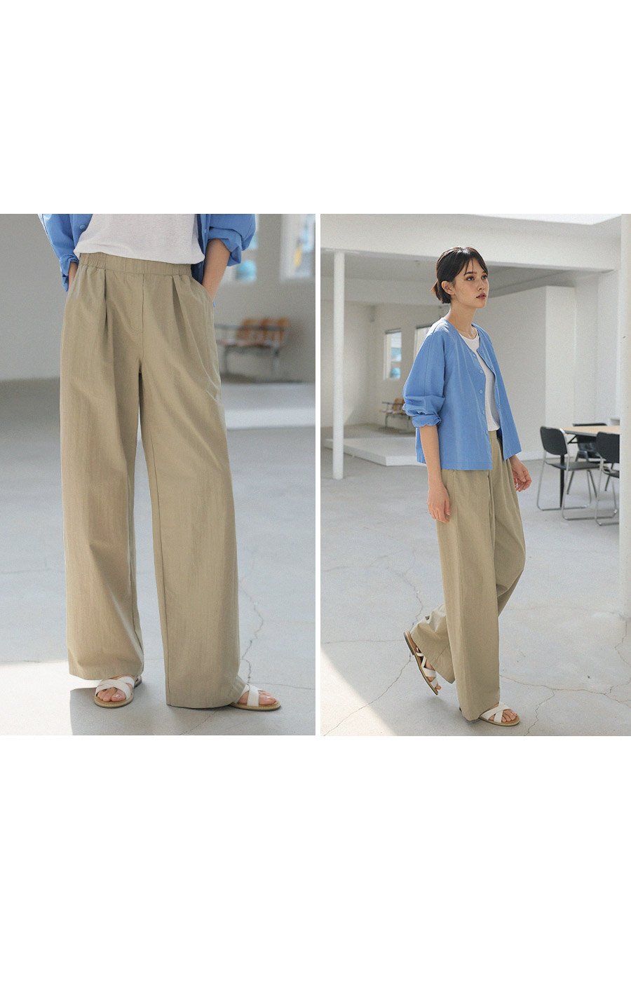 - 고밀도 코튼,텐셀 혼방 소재로 탄탄하면서도 유연한 터치감