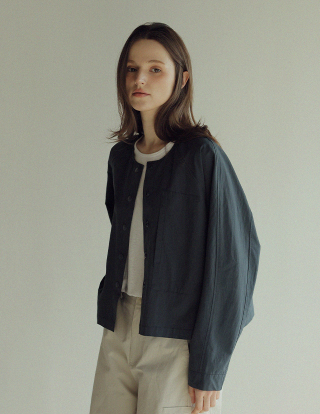 - 스냅 버튼 디테일로 간편한 오픈,클로징이 가능한 셔츠 자켓