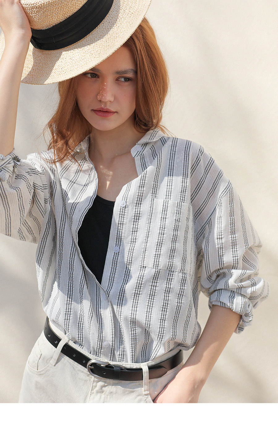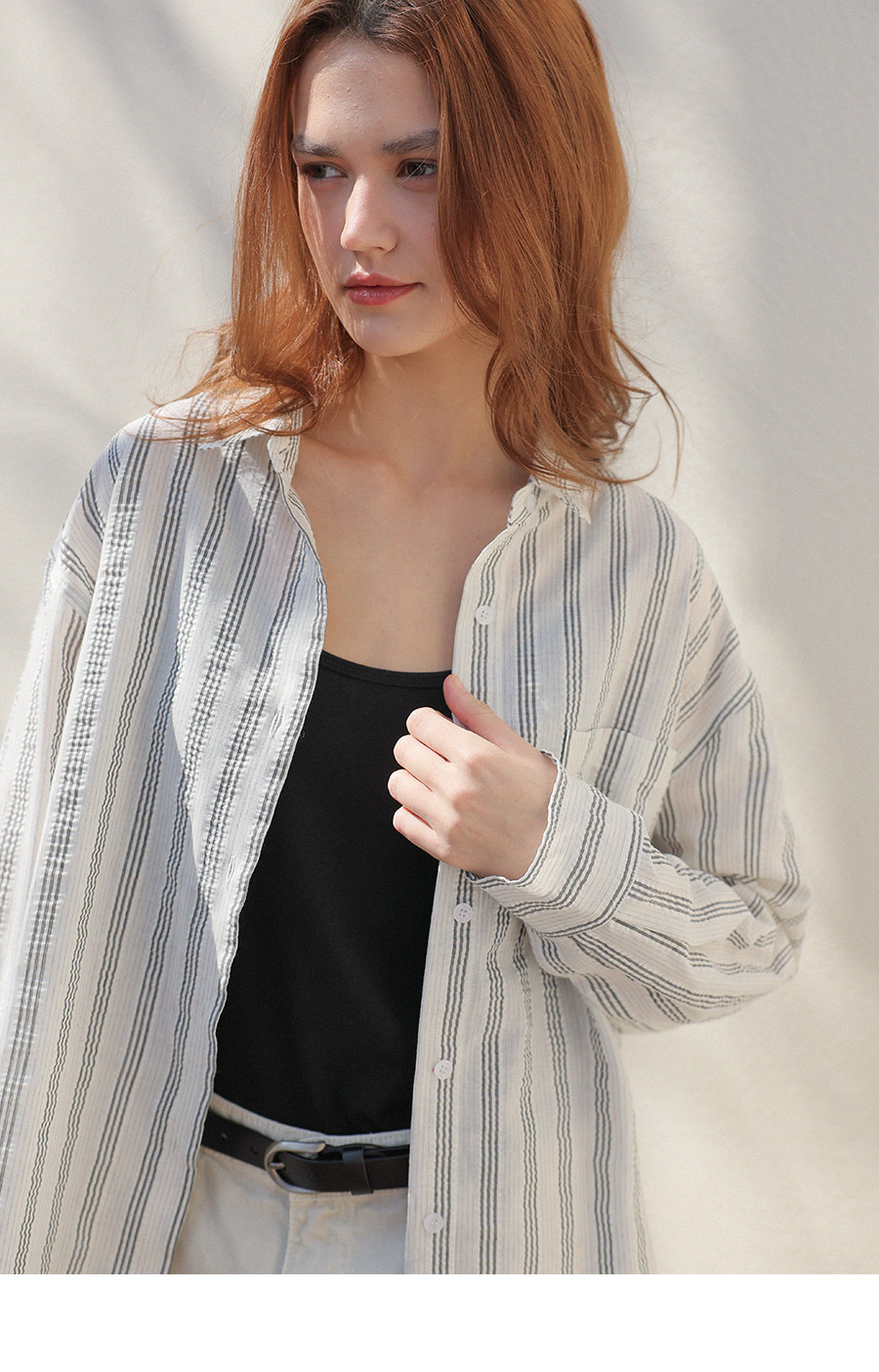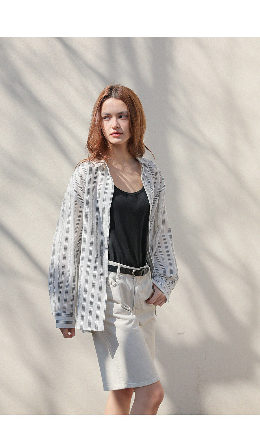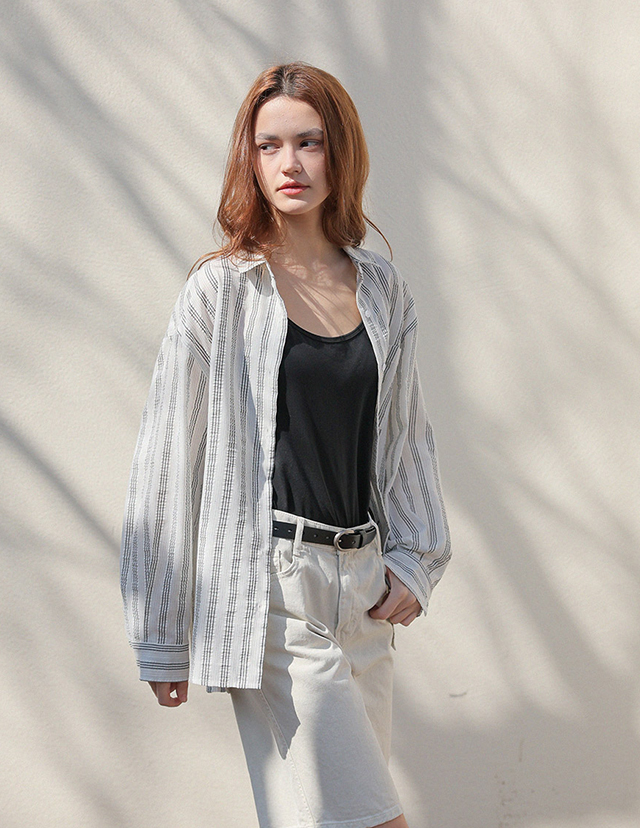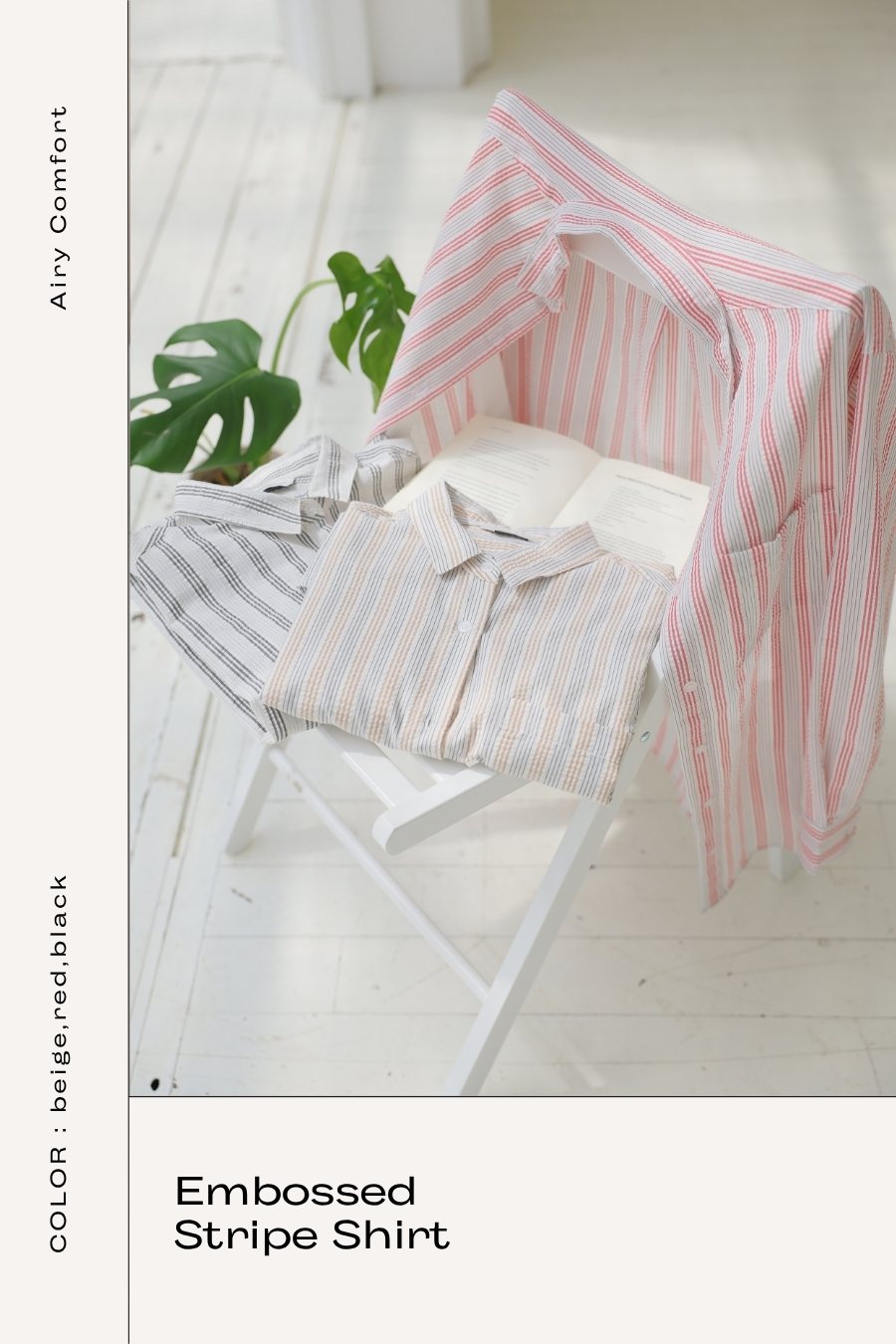 "입체적인 결이 돋보이는 엠보 스트라이프 셔츠"