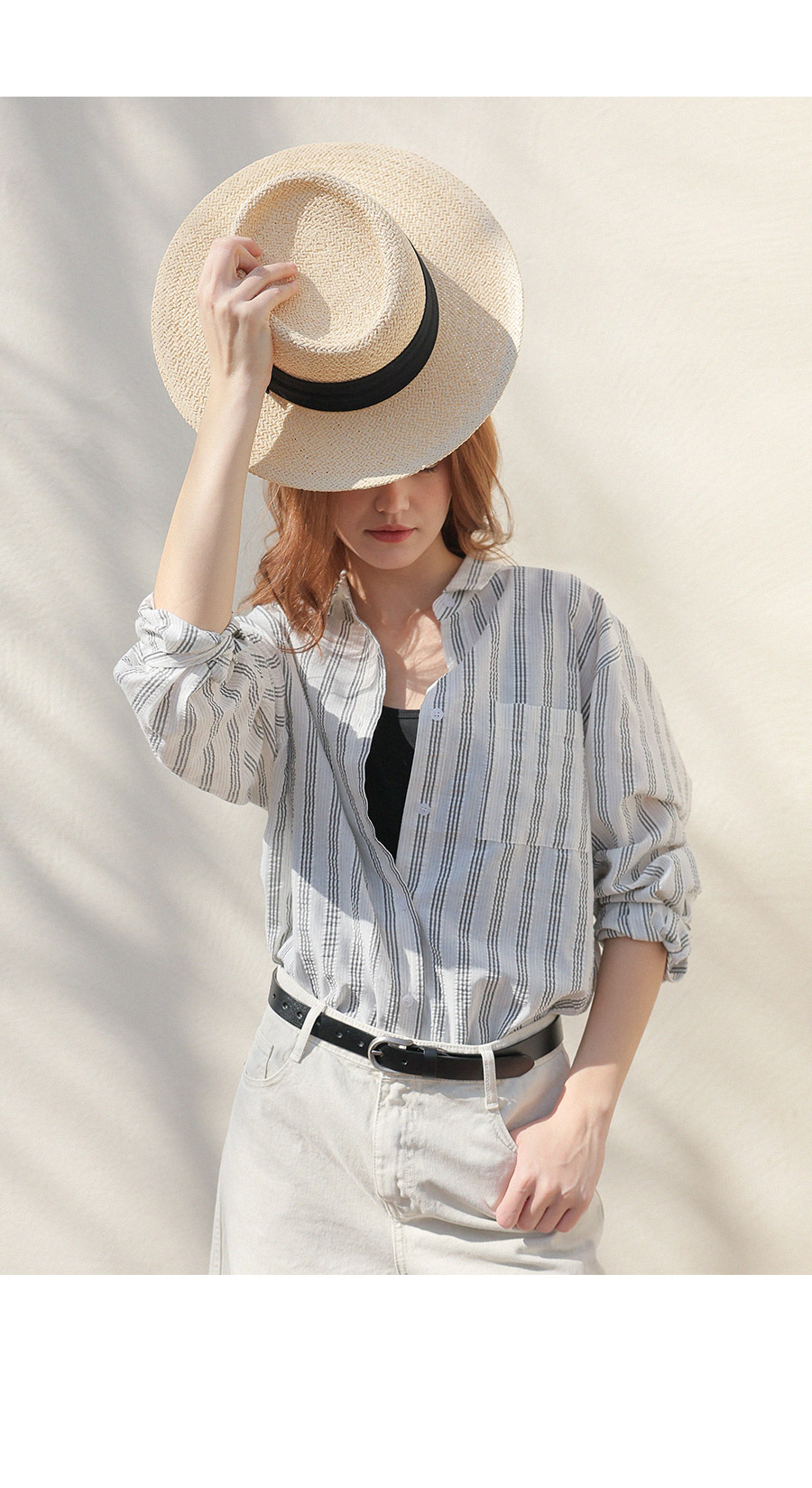 - 엠보 텍스처가 더해진 스트라이프 원단으로 은은한 입체감 연출