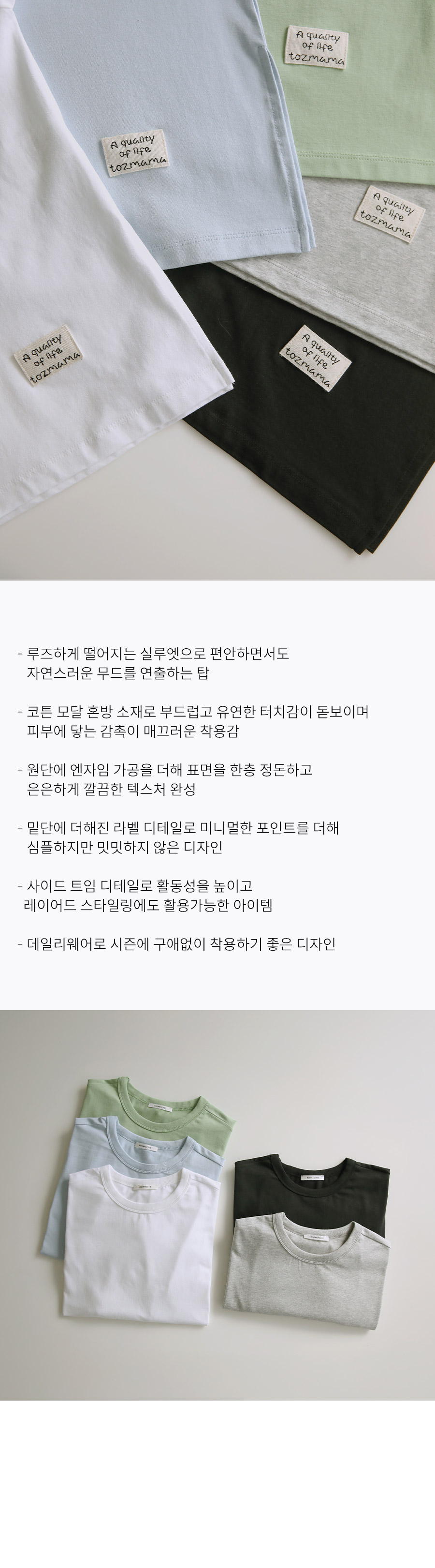 - 코튼 모달 혼방 소재로 부드럽고 유연한 터치감이 돋보이며 피부에 닿는 감촉이 매끄러운 착용감