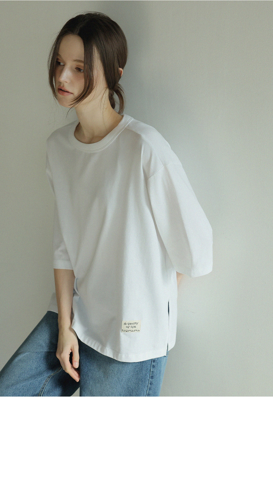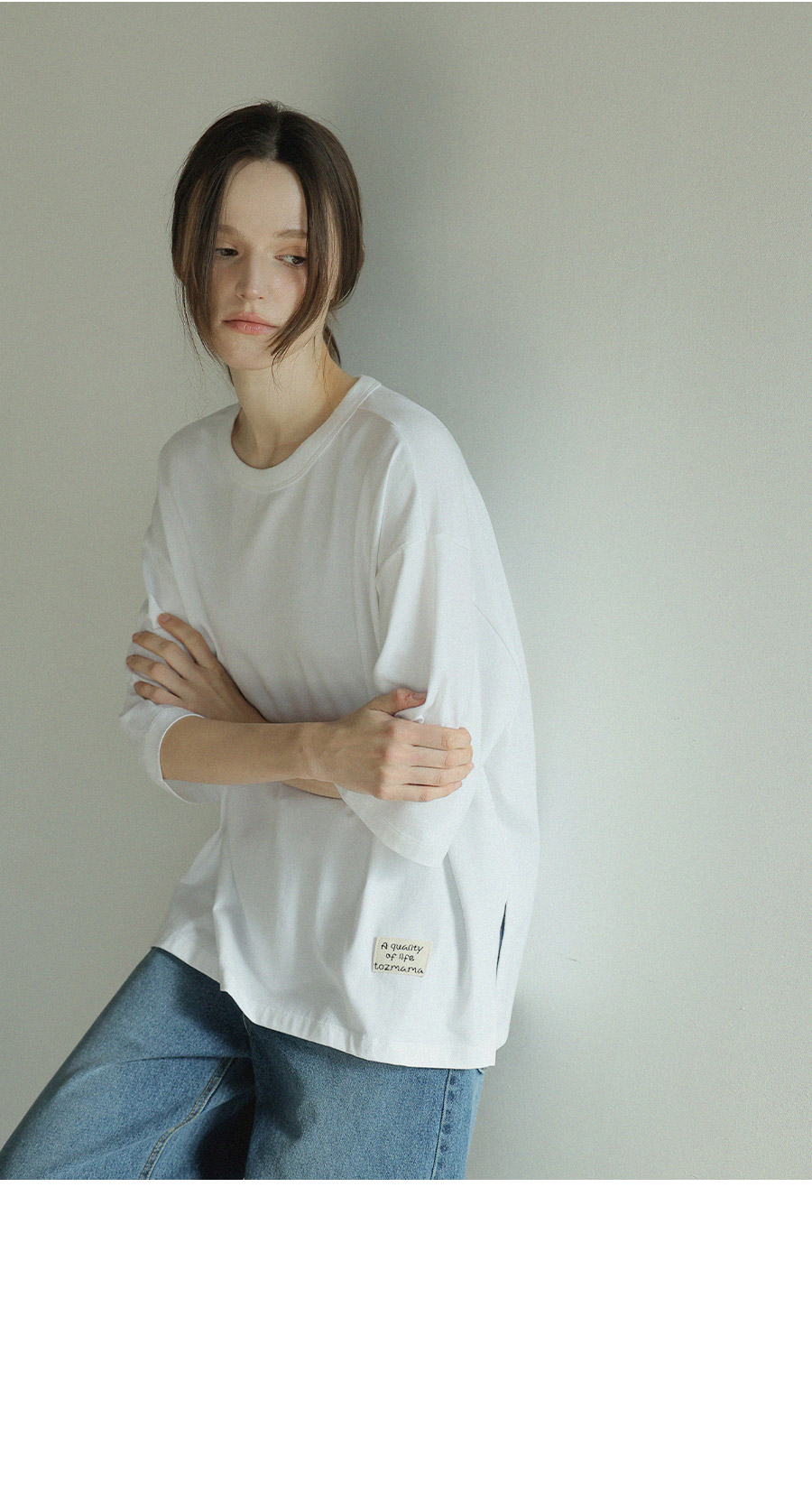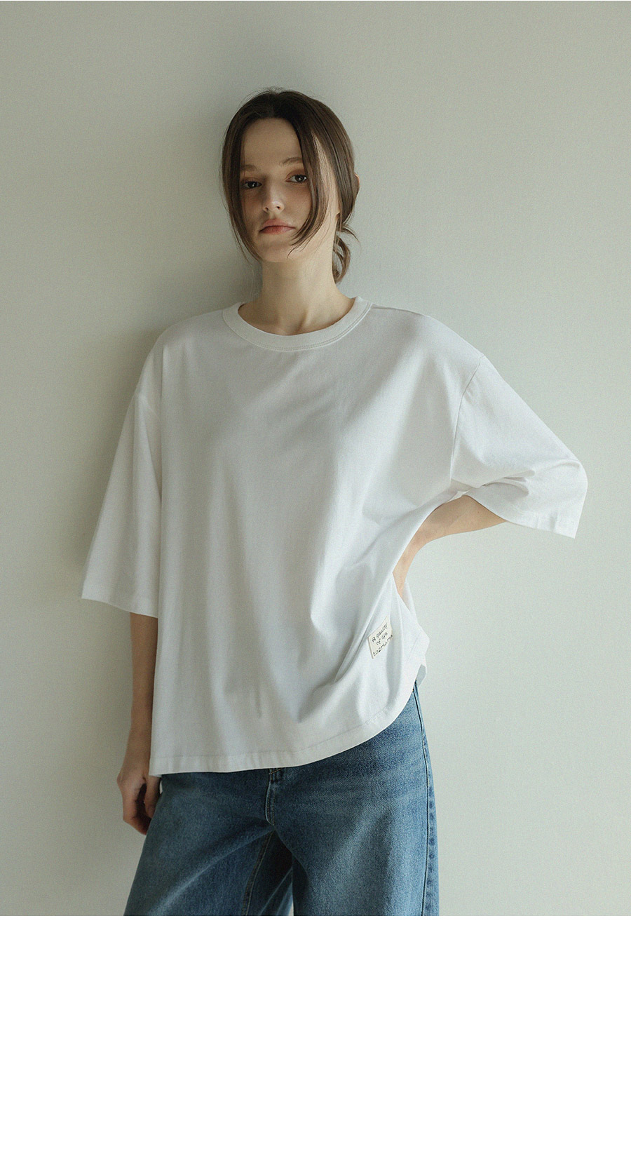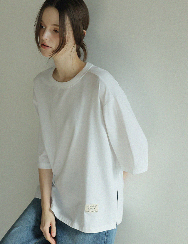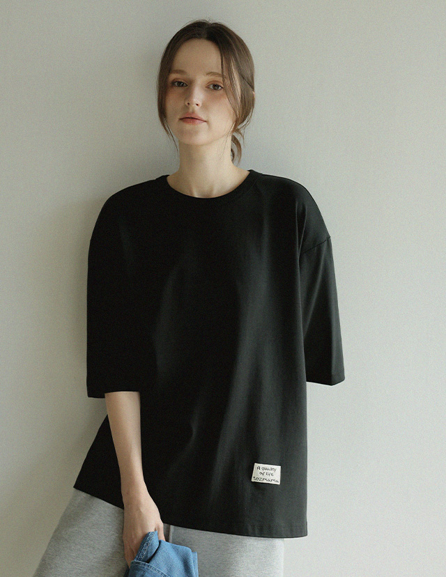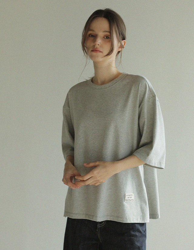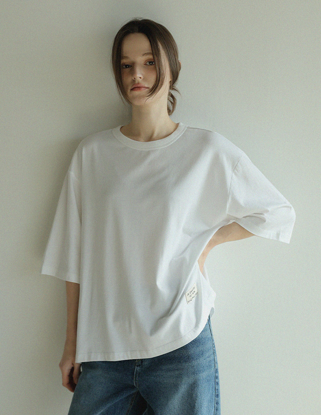 "담백한 포인트로 완성한 데일리 루즈핏 탑"