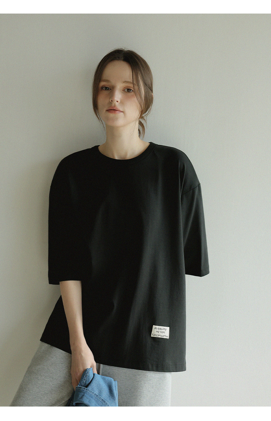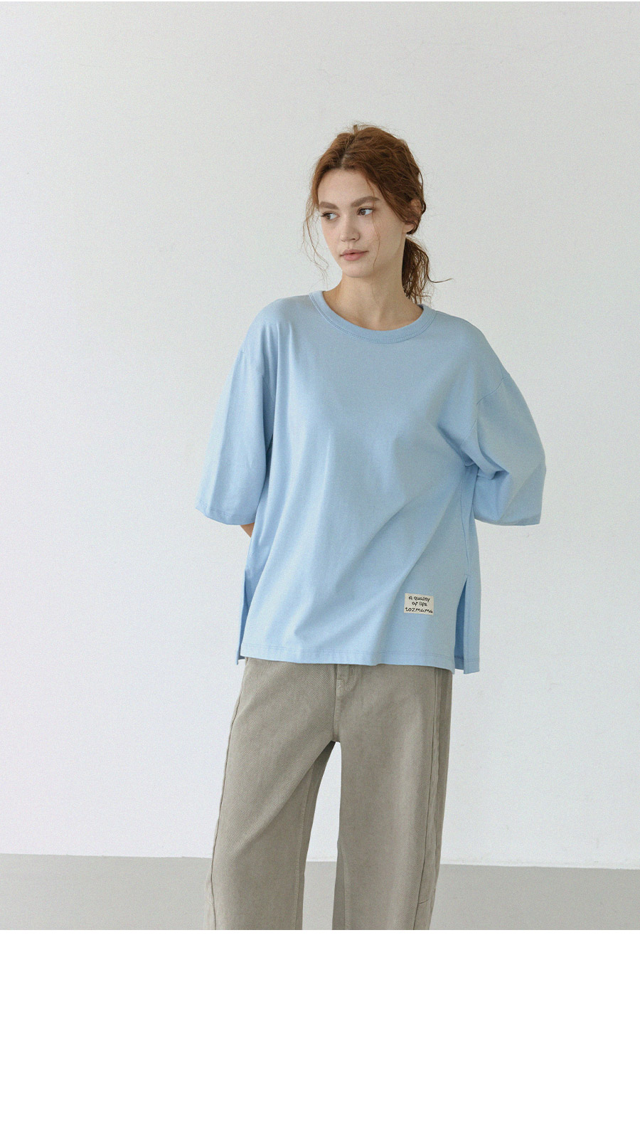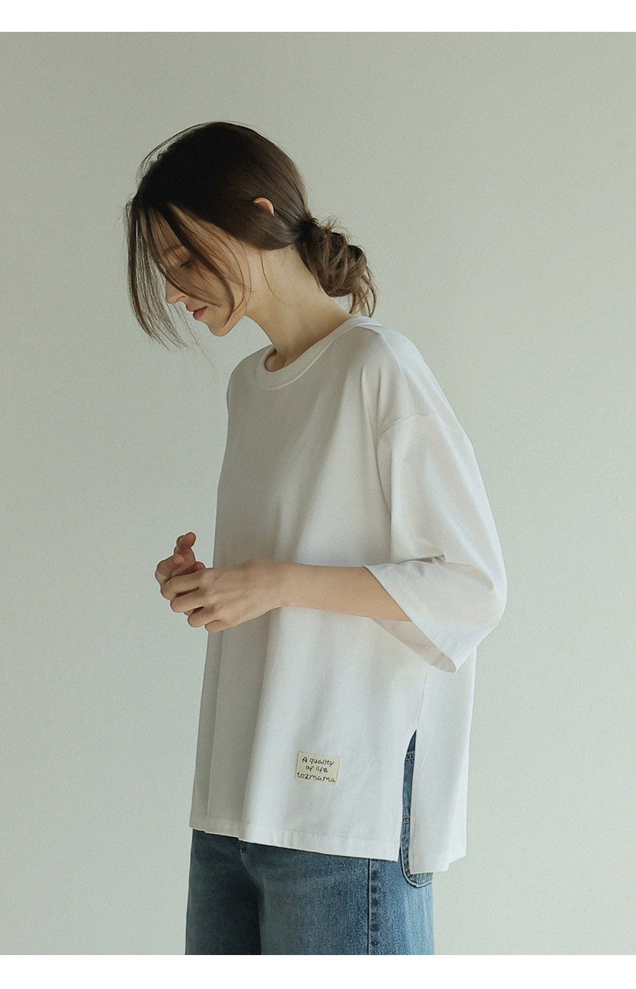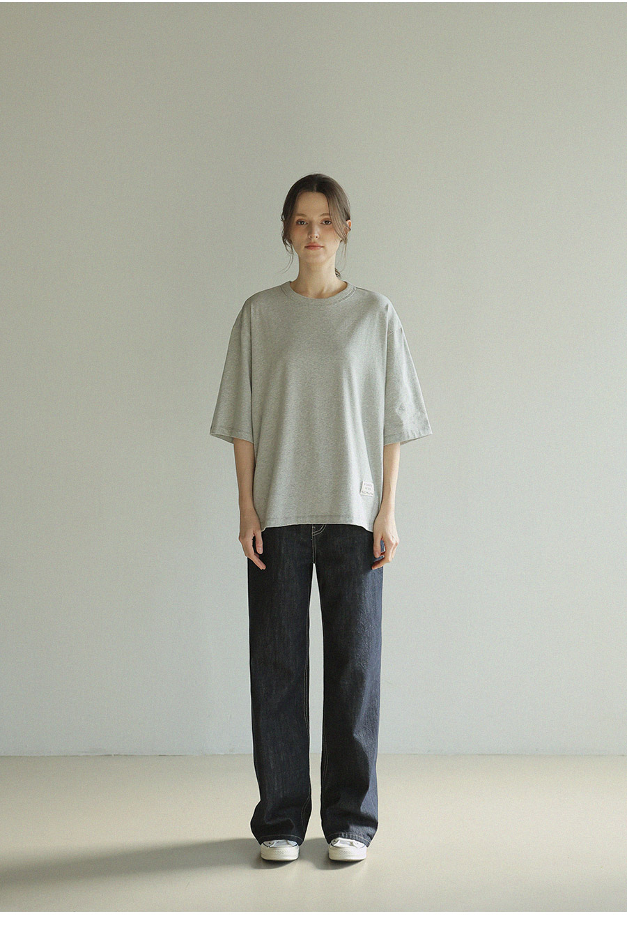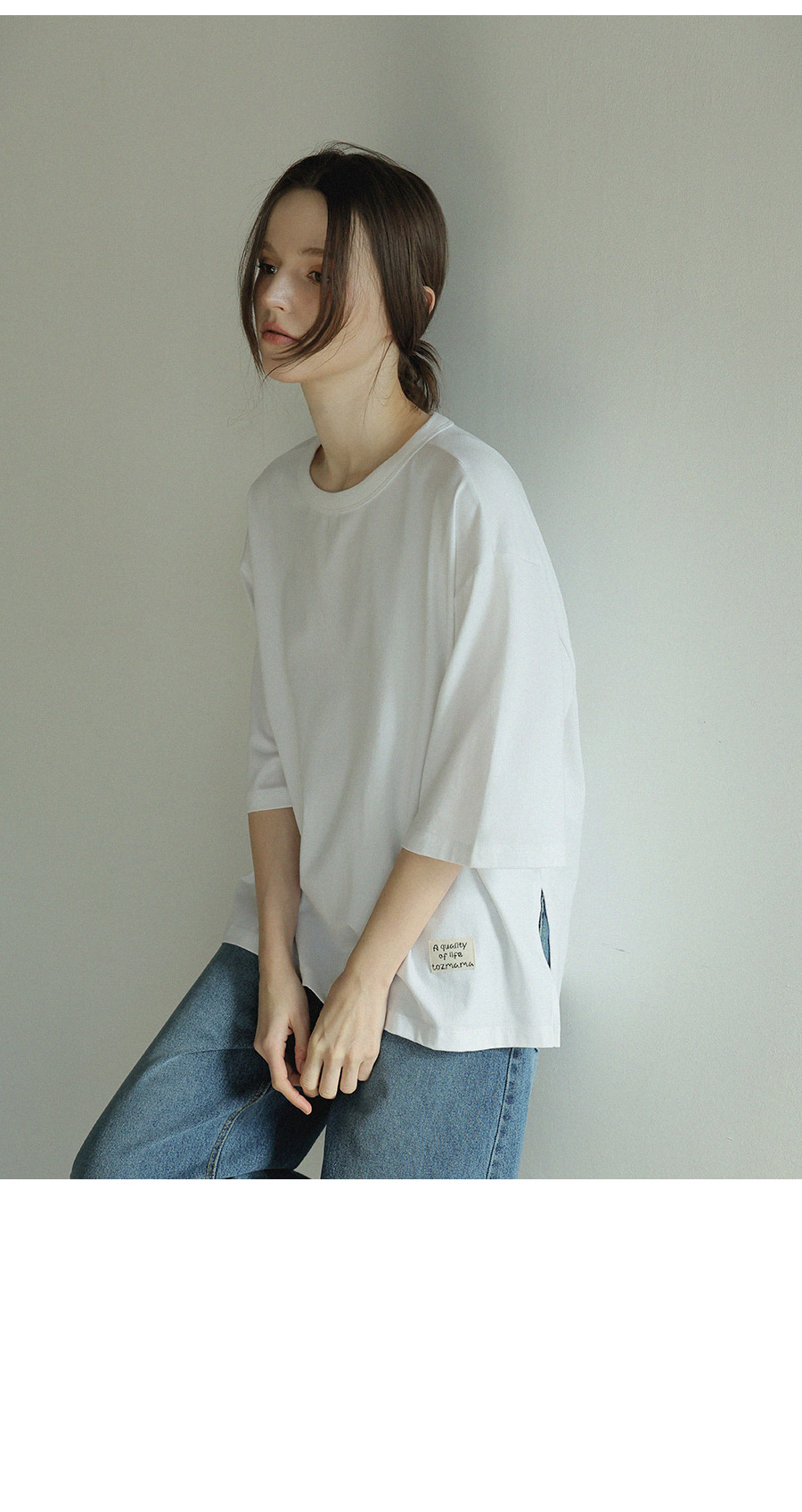 "담백한 포인트로 완성한 데일리 루즈핏 탑"