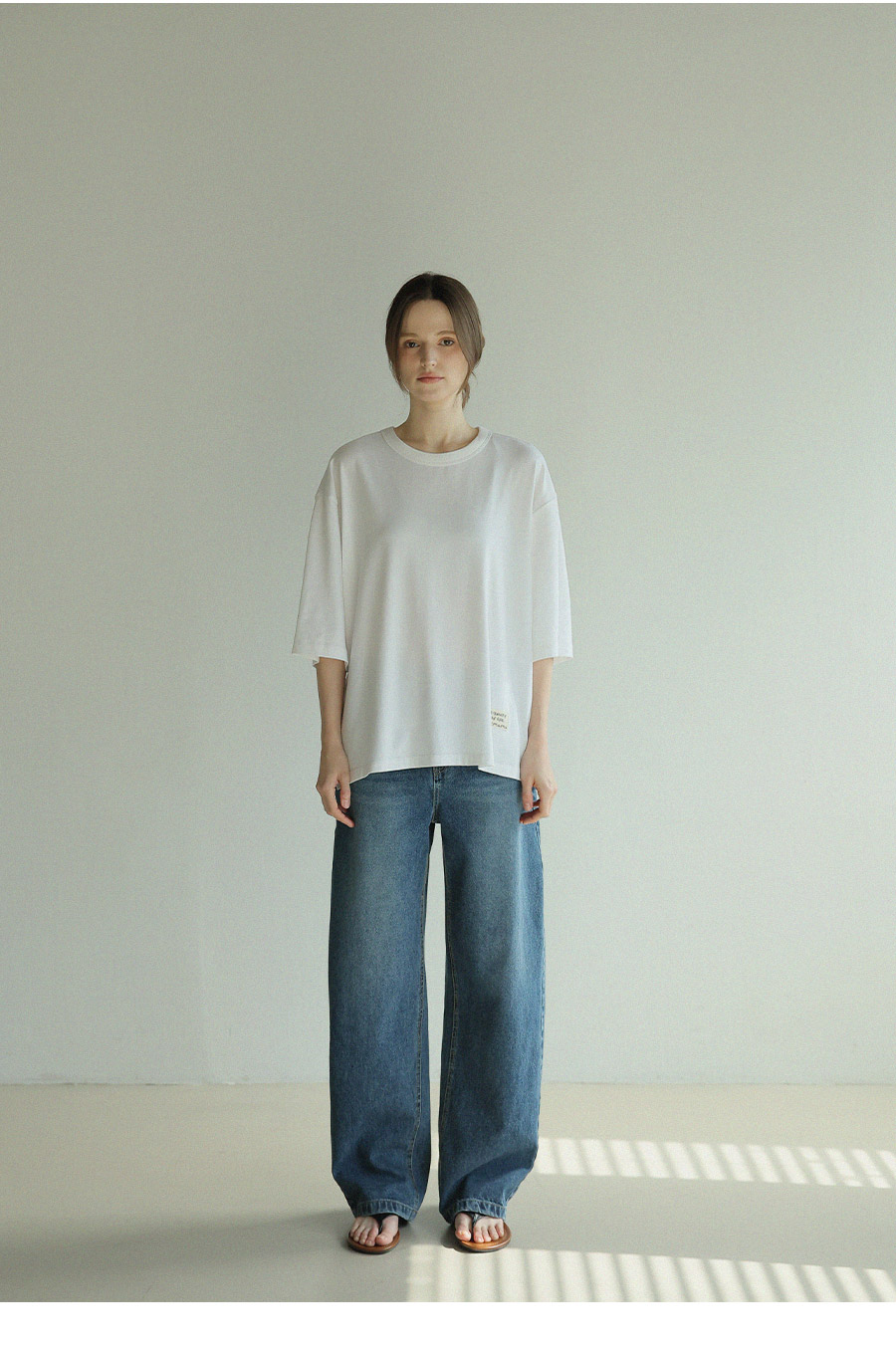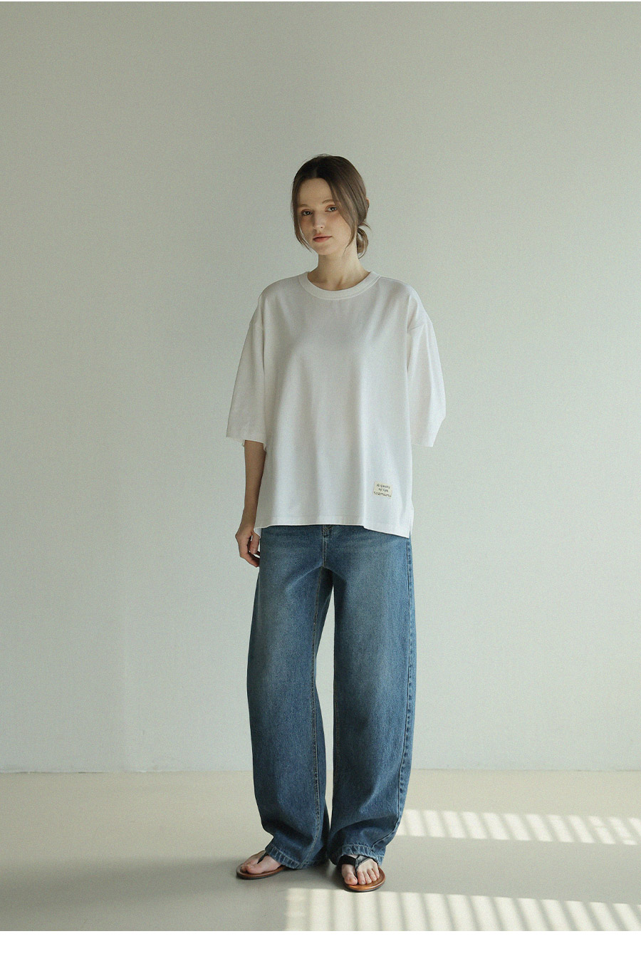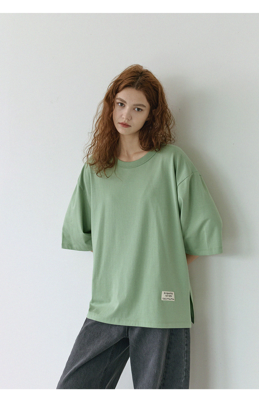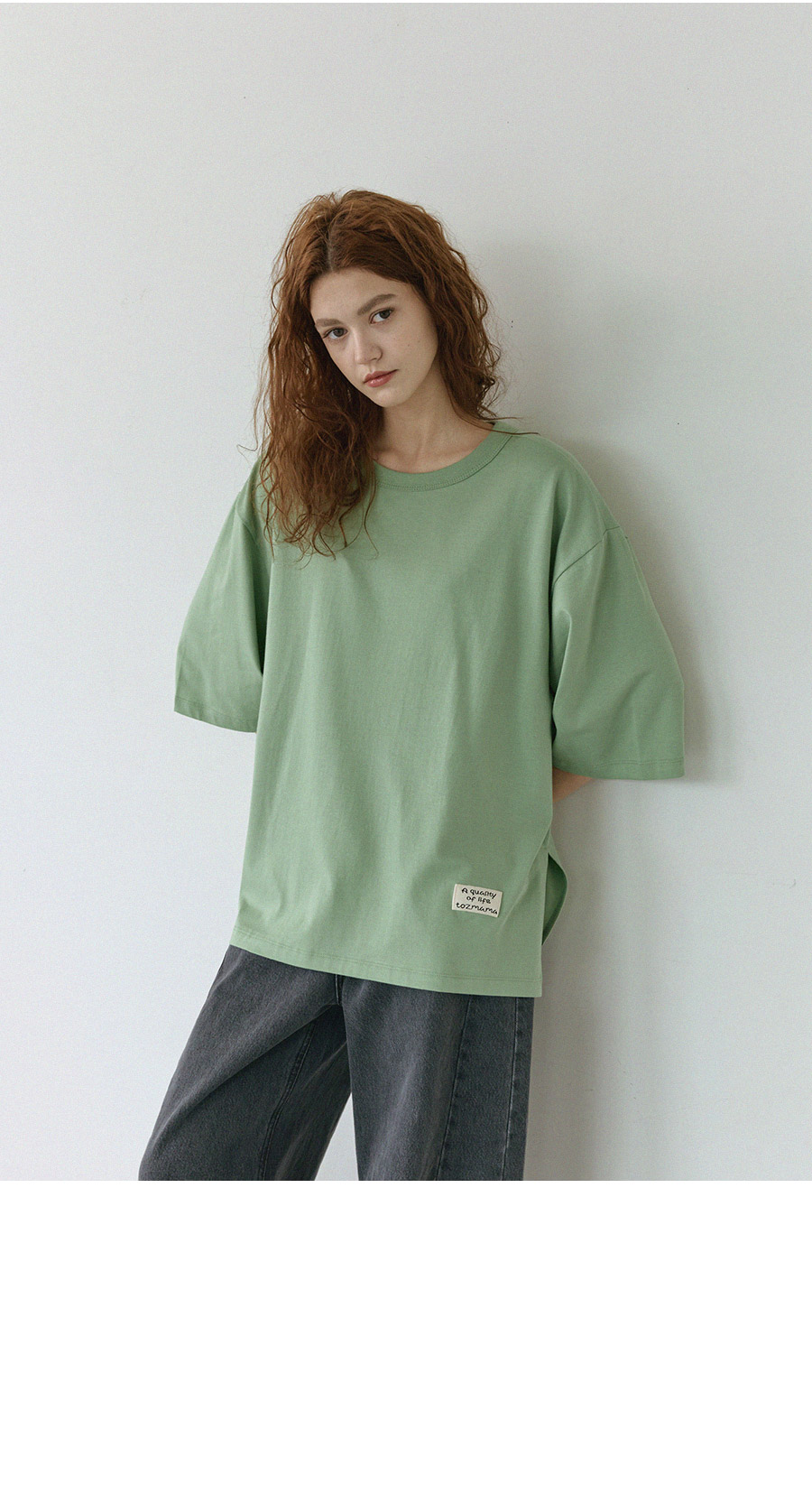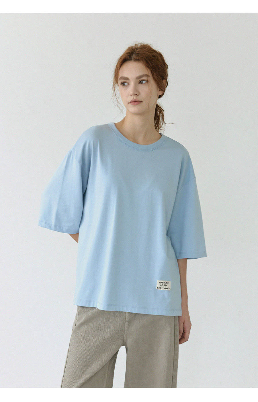 "담백한 포인트로 완성한 데일리 루즈핏 탑"