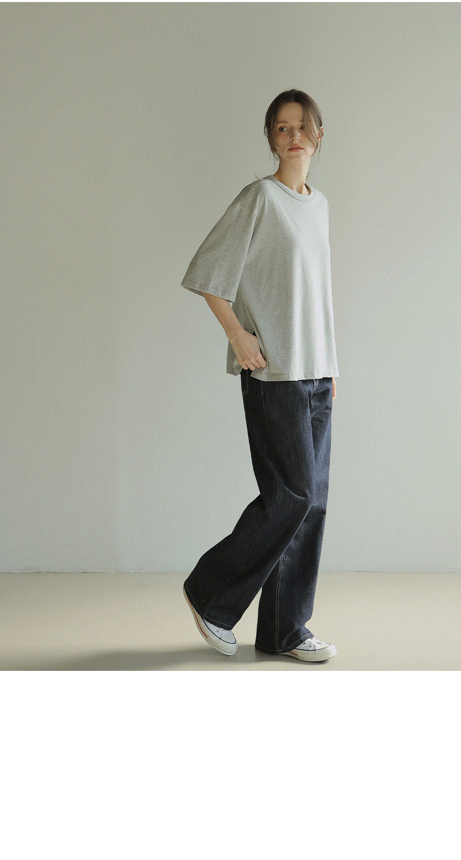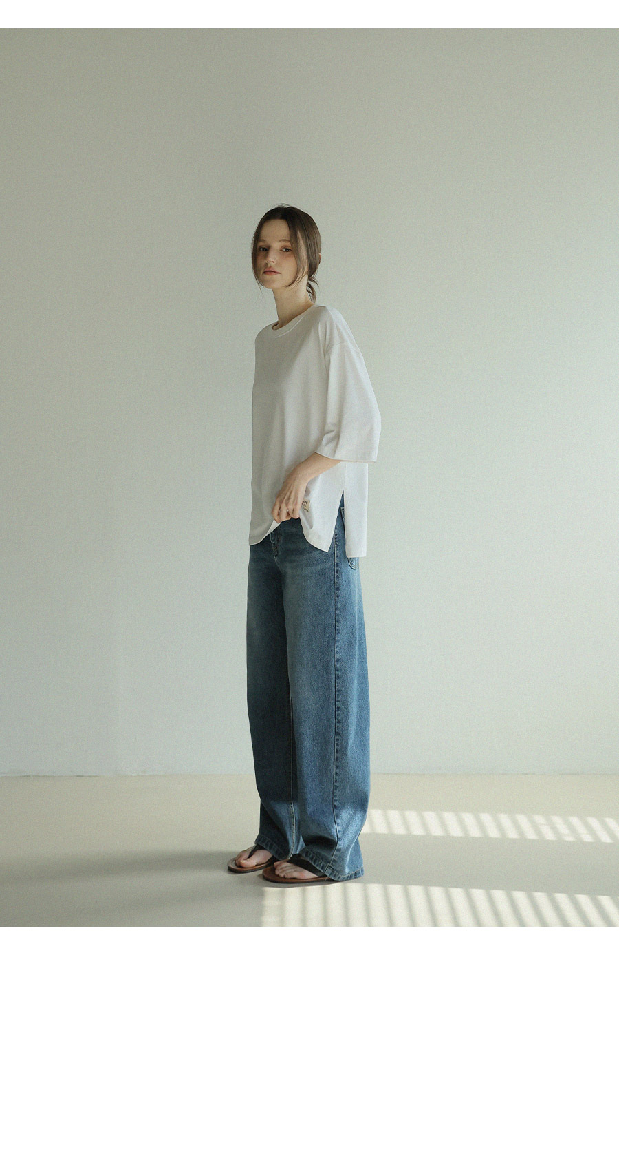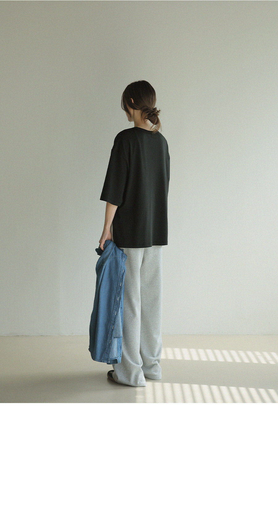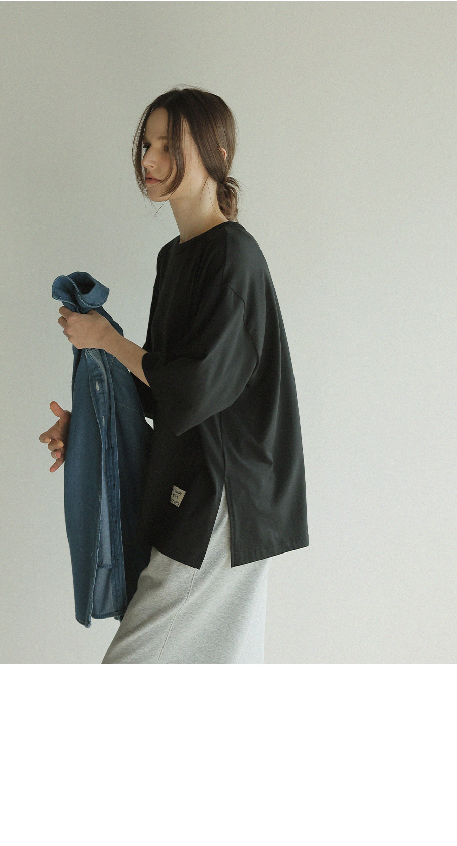 - 원단에 엔자임 가공을 더해 표면을 한층 정돈하고 은은하게 깔끔한 텍스처완성