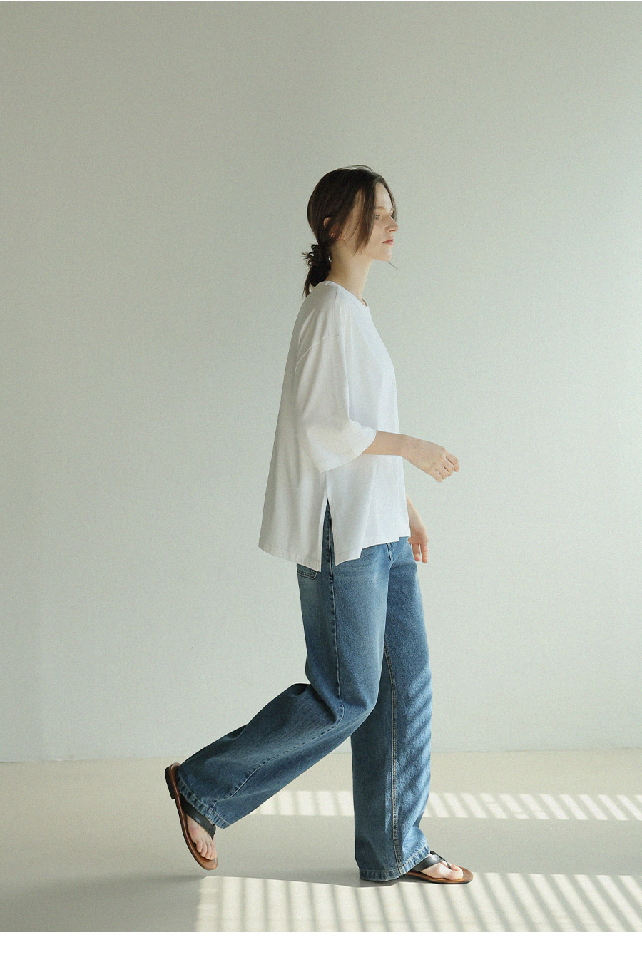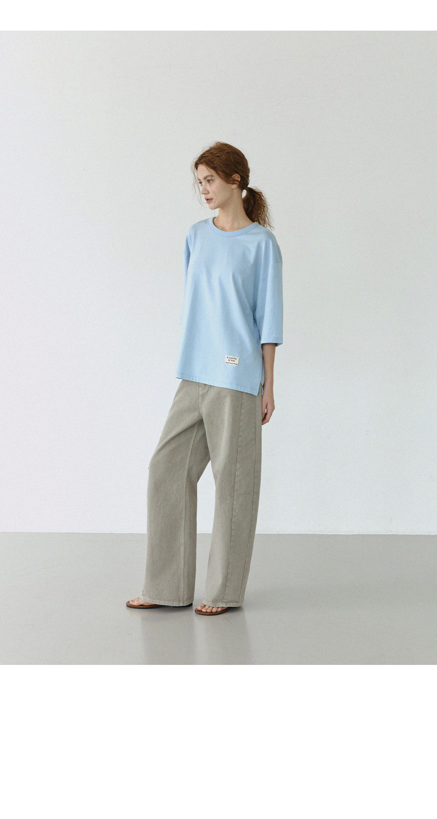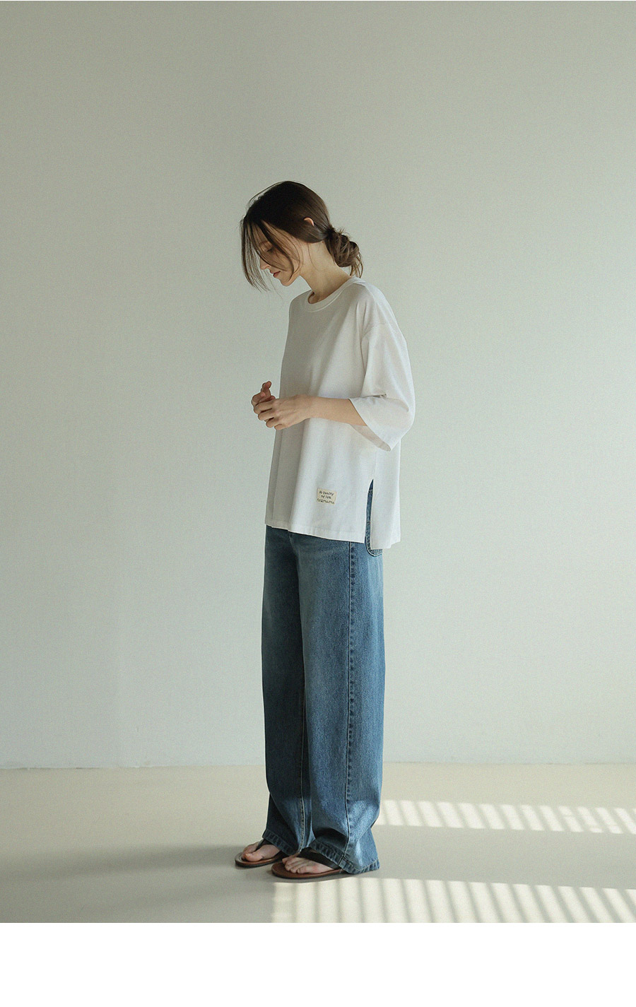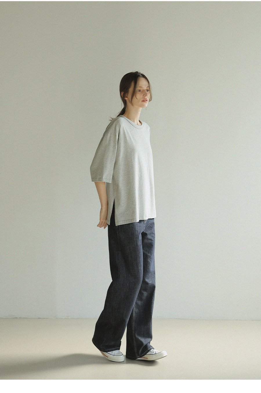 - 원단에 엔자임 가공을 더해 표면을 한층 정돈하고 은은하게 깔끔한 텍스처완성