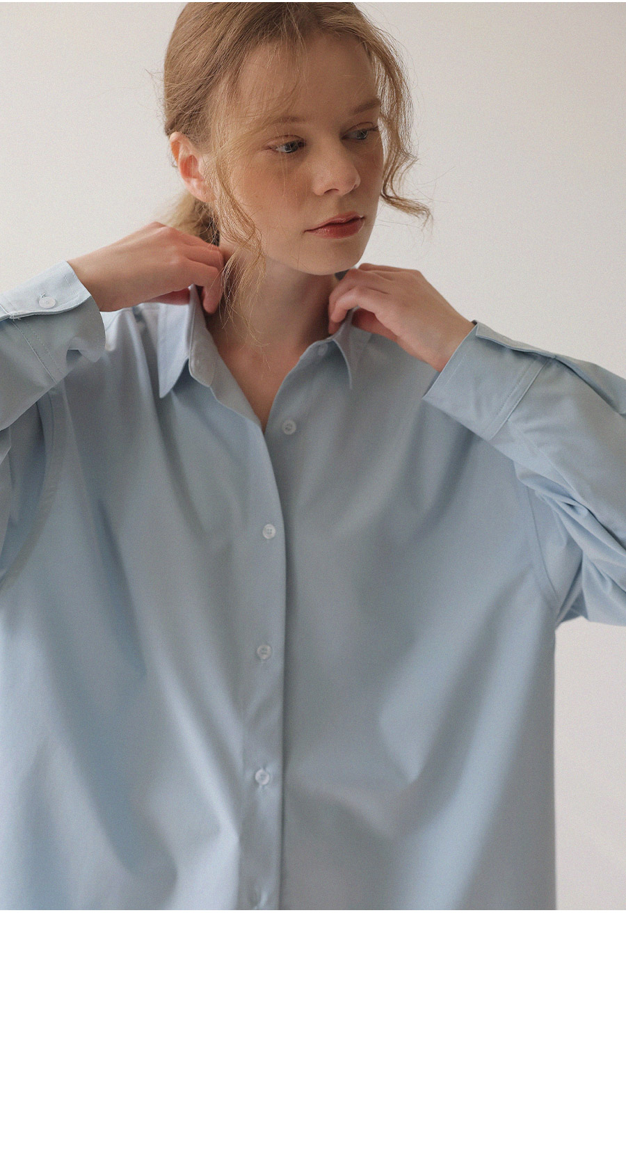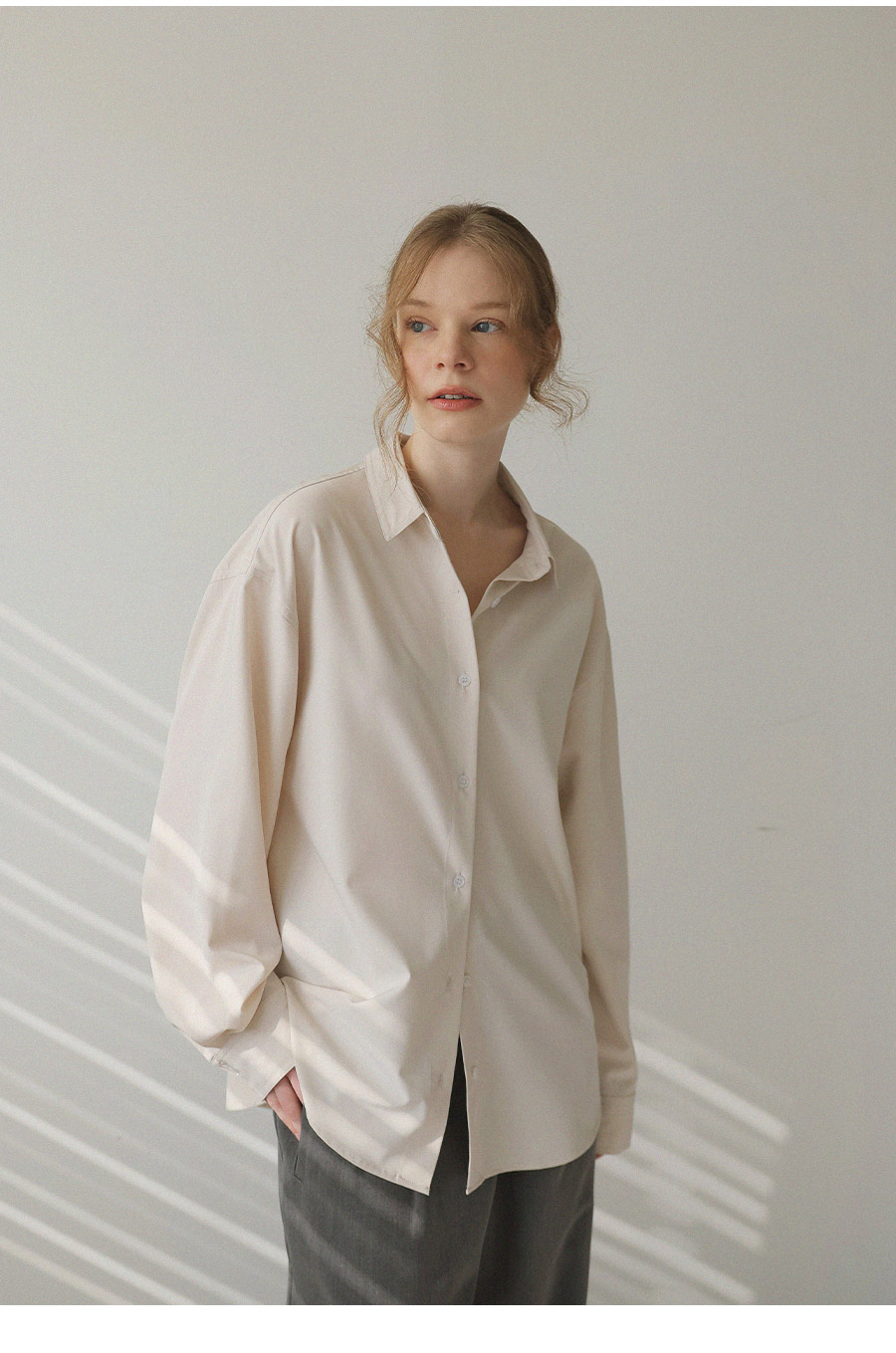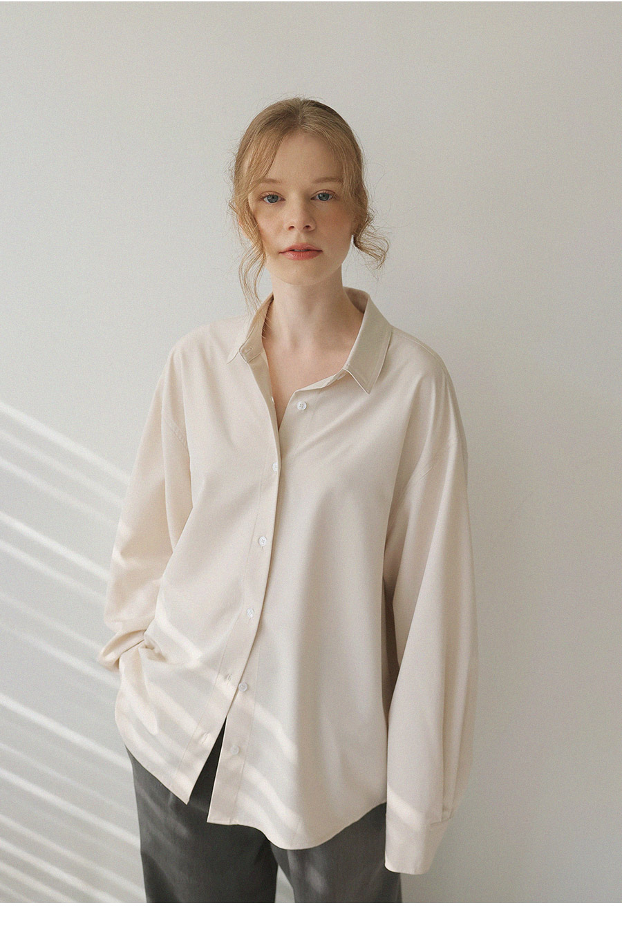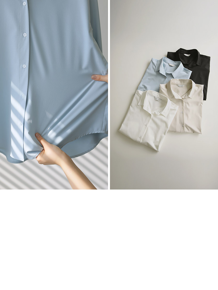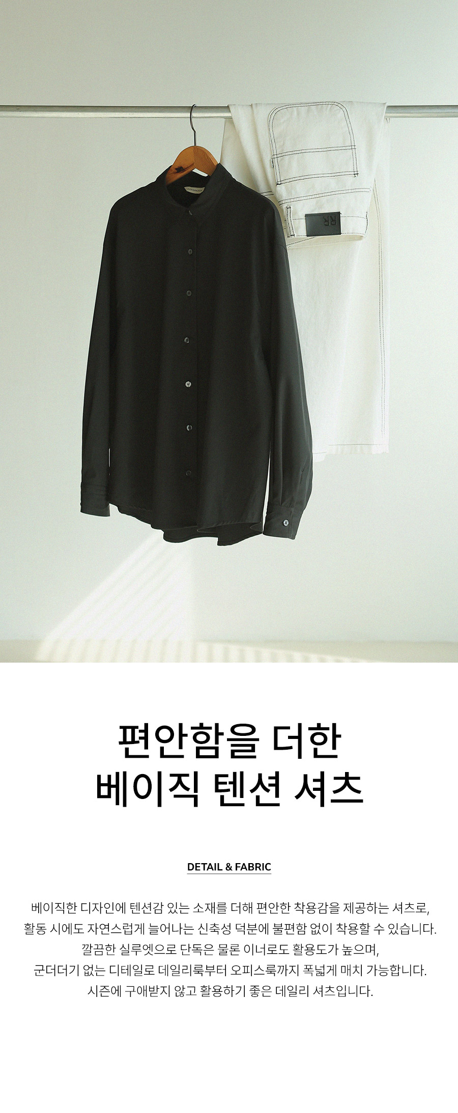 - 베이직한 디자인에 텐셤감 있는 소재를 더해 편안한 착용감을 제공하는 셔츠